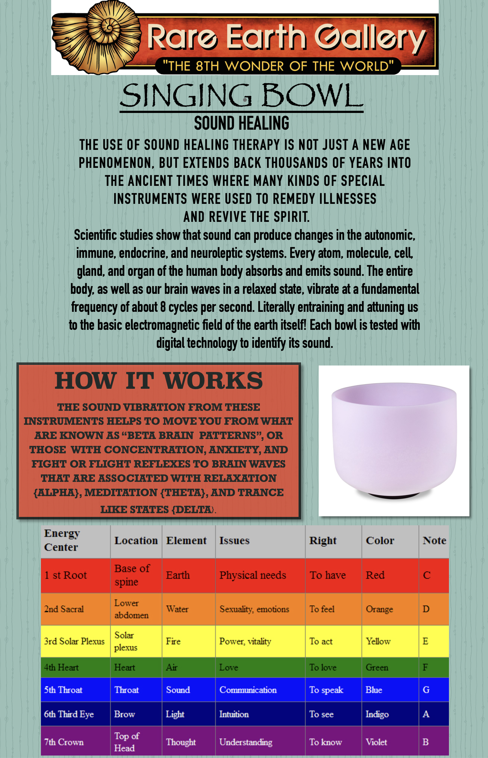 Its perfect pitch creates an incredibly calming and beautiful experience that allows you to create a smooth path to healing and spiritual growth. Its amethyst and quartz infused material amplifies its healing and spiritual vibrations and gives the singing bowl an ethereal glow.