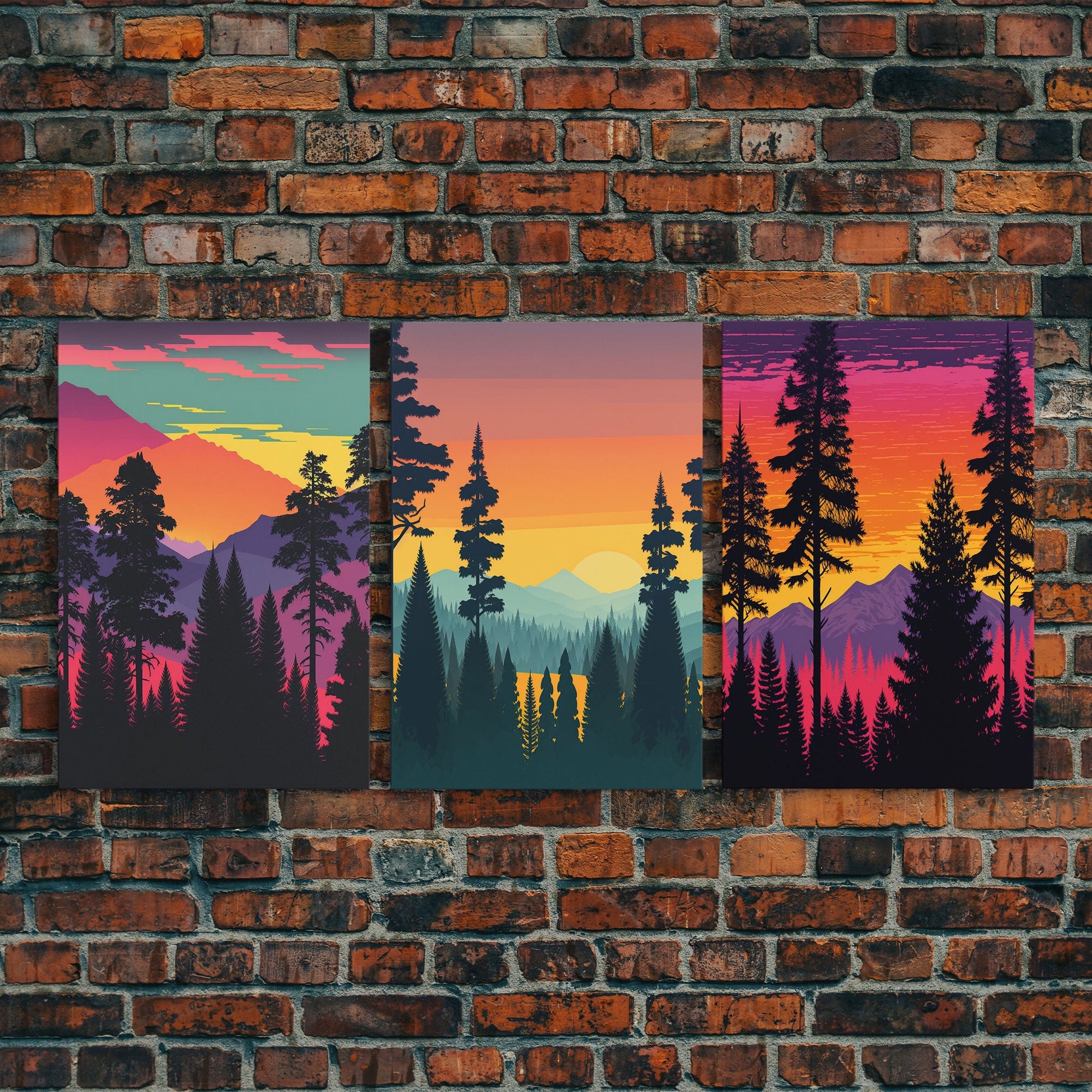 3 Piece Retro Style Forest Wall Art Canvas Print, Set of 3 Forest Landscape Art, Green Forest, Nature, Modern Art, Minimalist, Misty, Decor