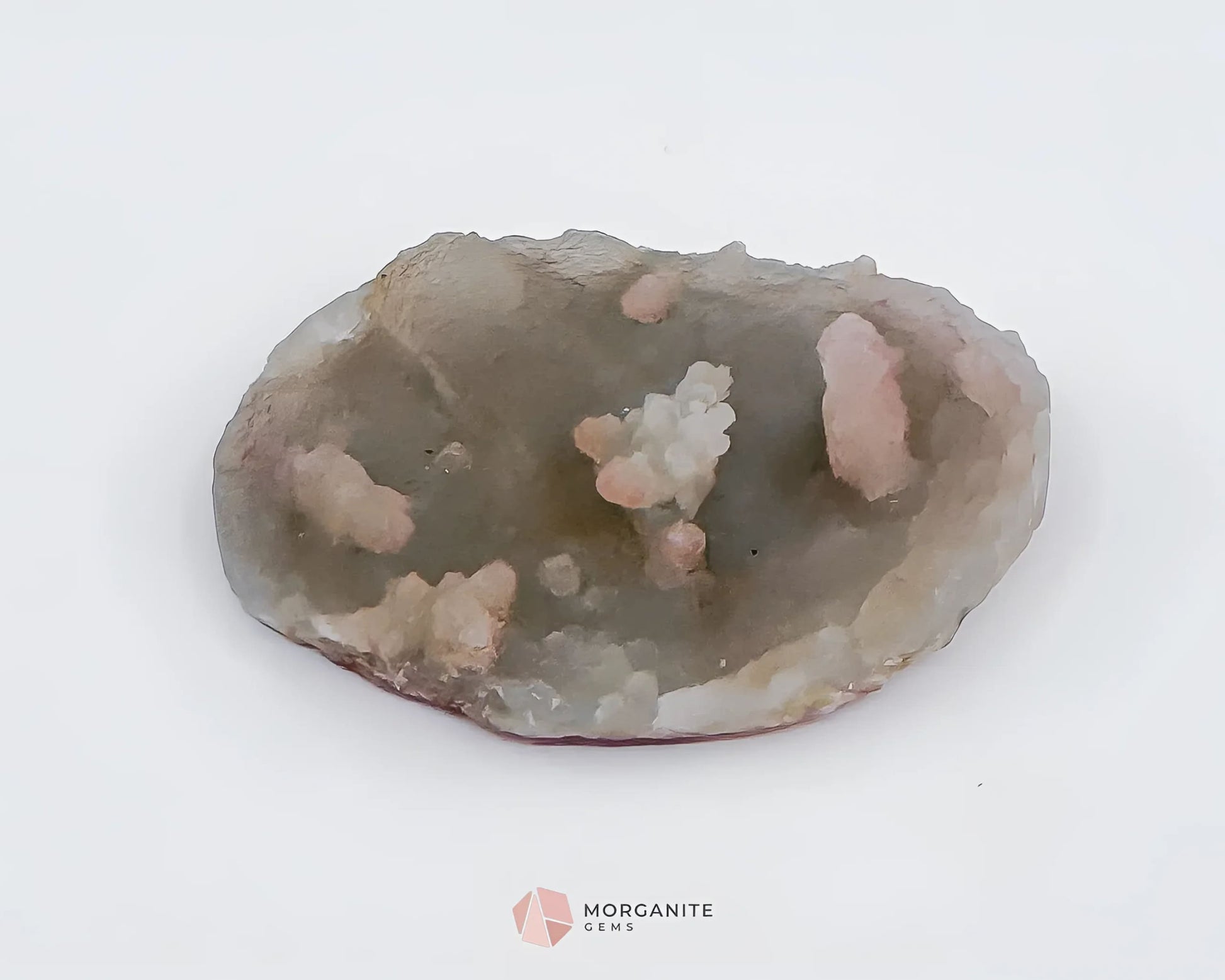 Explore the unique beauty of this 36g Apophyllite Stilbite specimen with a Chalcedony base. This delicate piece features a stunning array of clear Apophyllite crystals, elegantly perched on a subtly hued Chalcedony foundation. The crystals reflect light beautifully, adding a sparkling dimension to this naturally sculpted mineral.