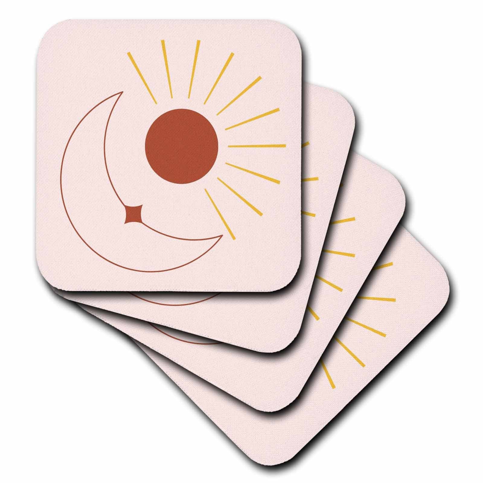Image of a Sun with Moon Coaster is a great complement to any home décor. Soft coasters are 3.5" x 3.5", are absorbent, and can be washed.  Ceramic coasters are 4.25" x 4.25", non absorbent and come with felt corner pads.   Available in sets of 4 and 8.