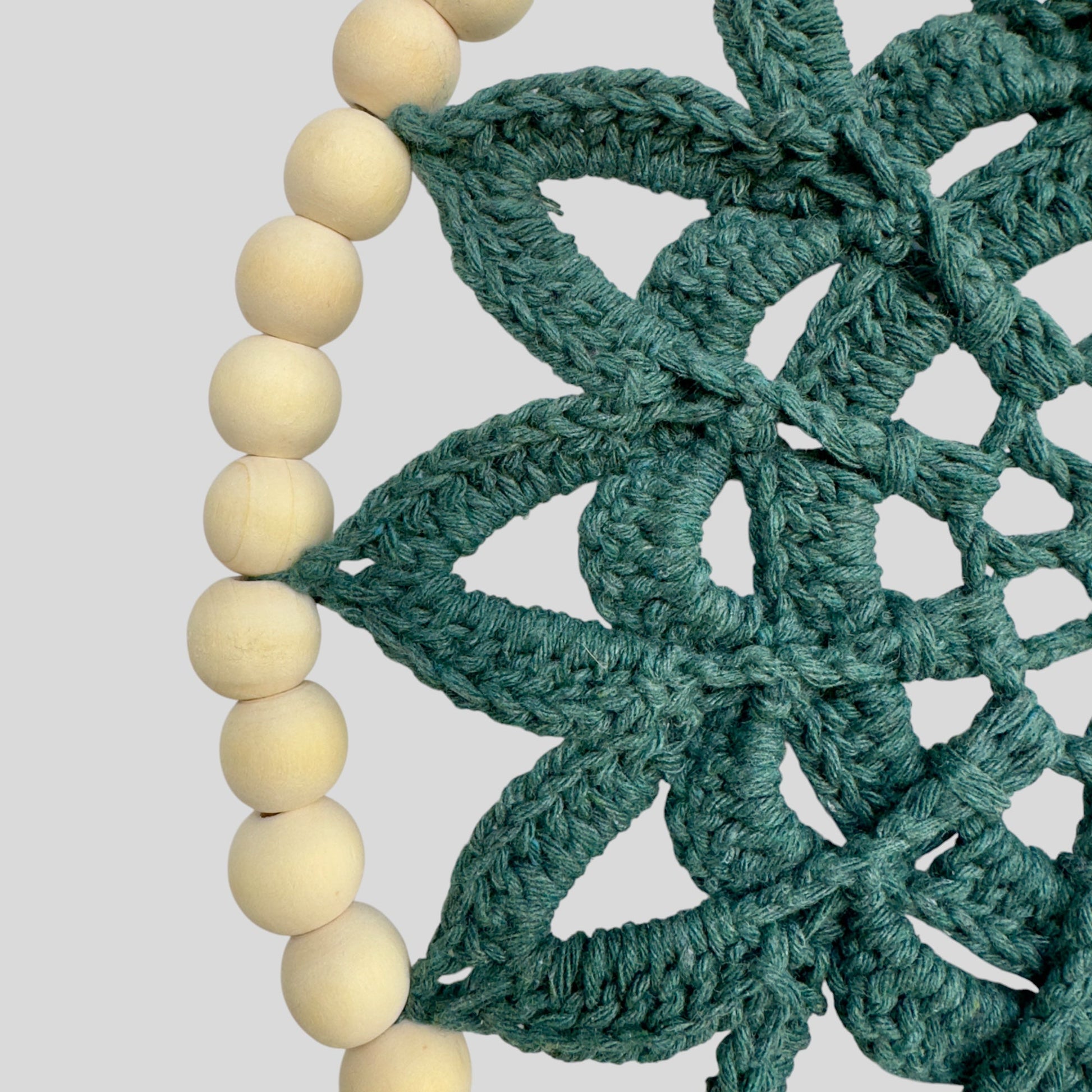 This unique handmade dreamcatcher makes a great decoration or gift and is truly what you have been looking for! The quality and feel of this item is unmatched. 100% hand crocheted macrame dream catcher with wooden beads.