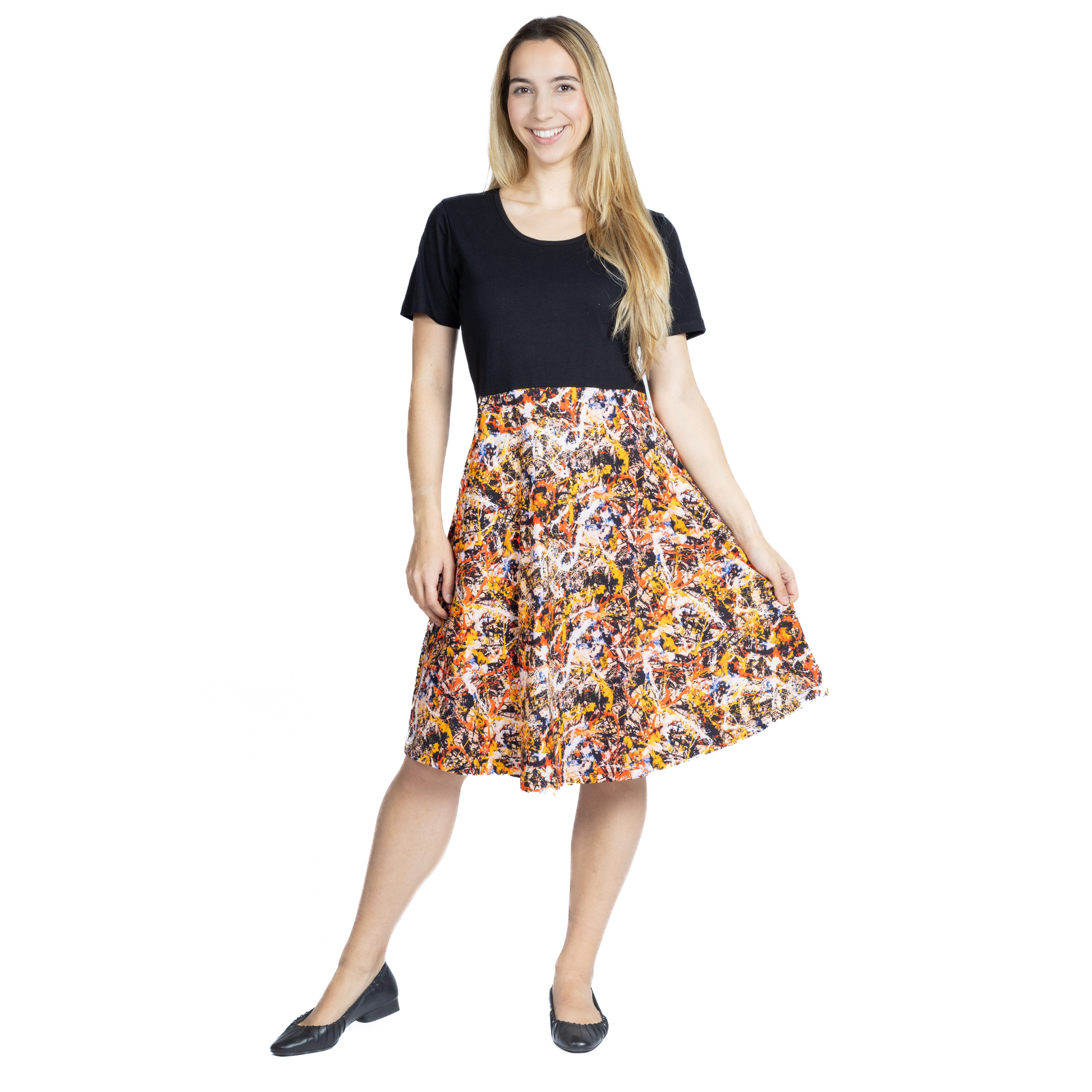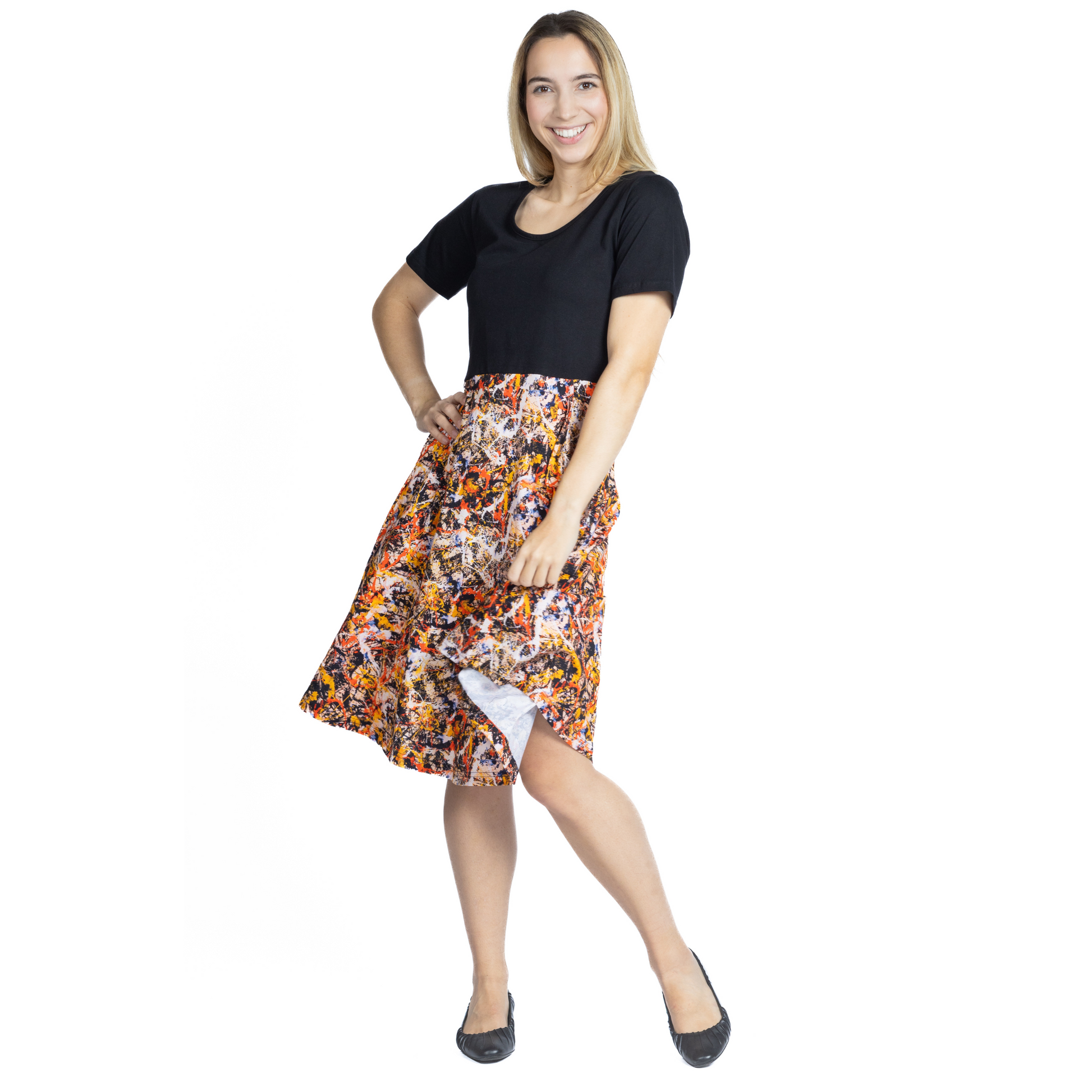 Inspired by Jackson Pollock's legendary painting Convergence, this dress transforms abstract expressionism into a wearable statement of creativity and confidence. Every inch of this design captures the vibrant energy of Pollock’s brushstrokes, with its bold splashes of color and dynamic composition. The intricate layering of reds, yellows, blacks, and whites creates a mesmerizing pattern that exudes movement and life. With the Abstract Convergence Dress, you’re not just wearing fashion—you’re wearing a piece of history!