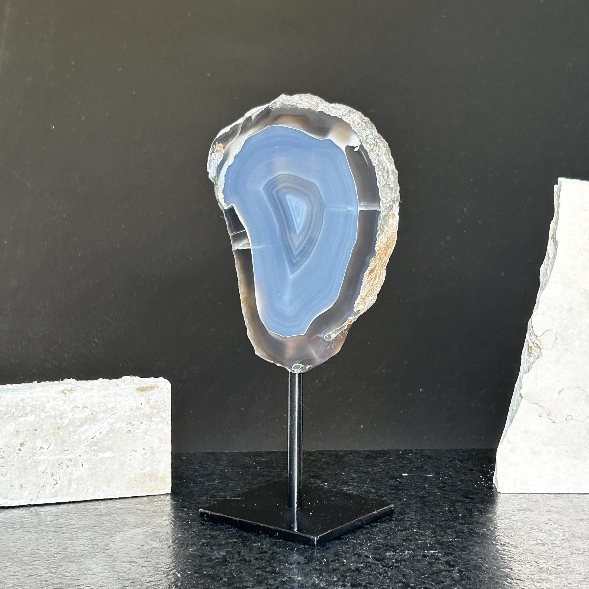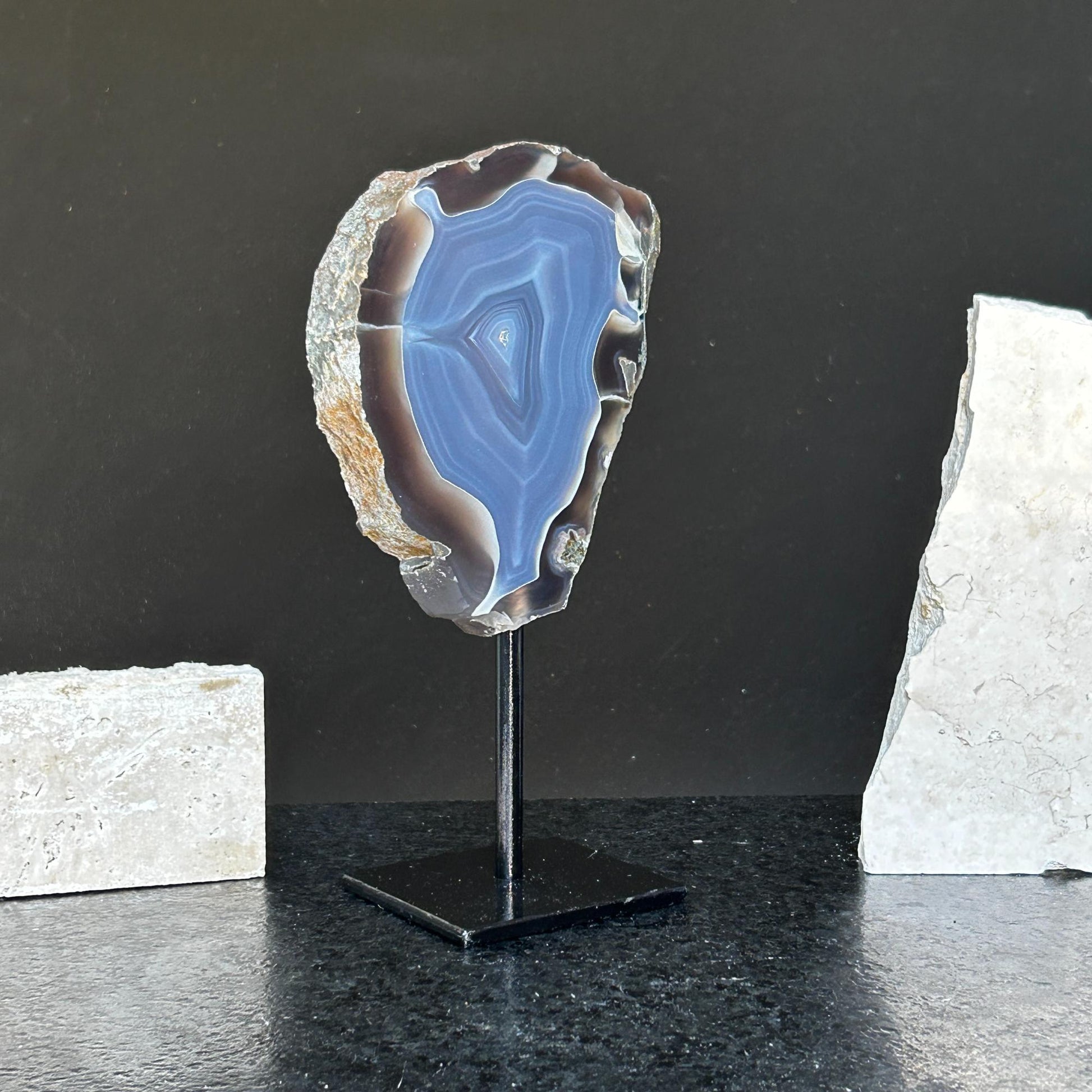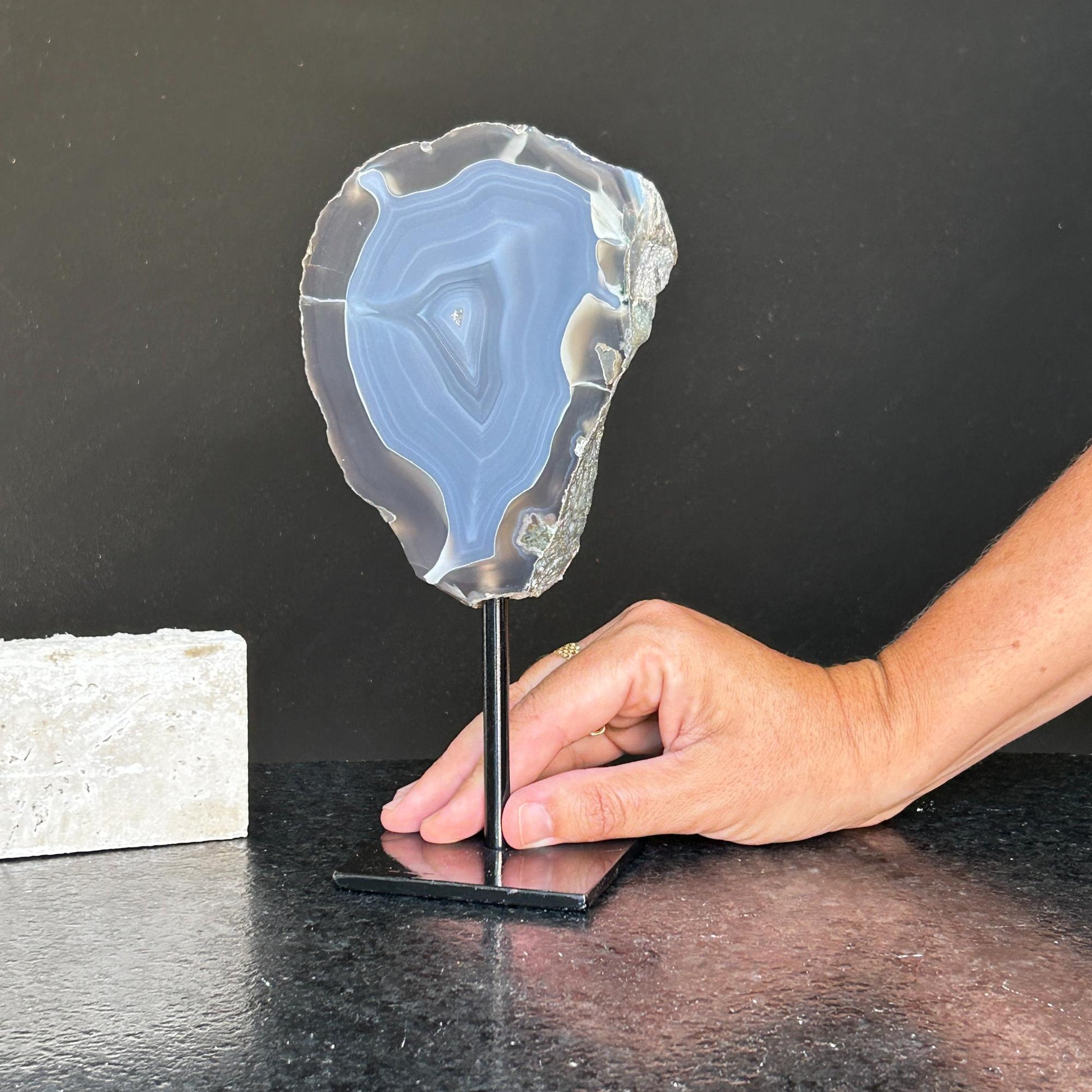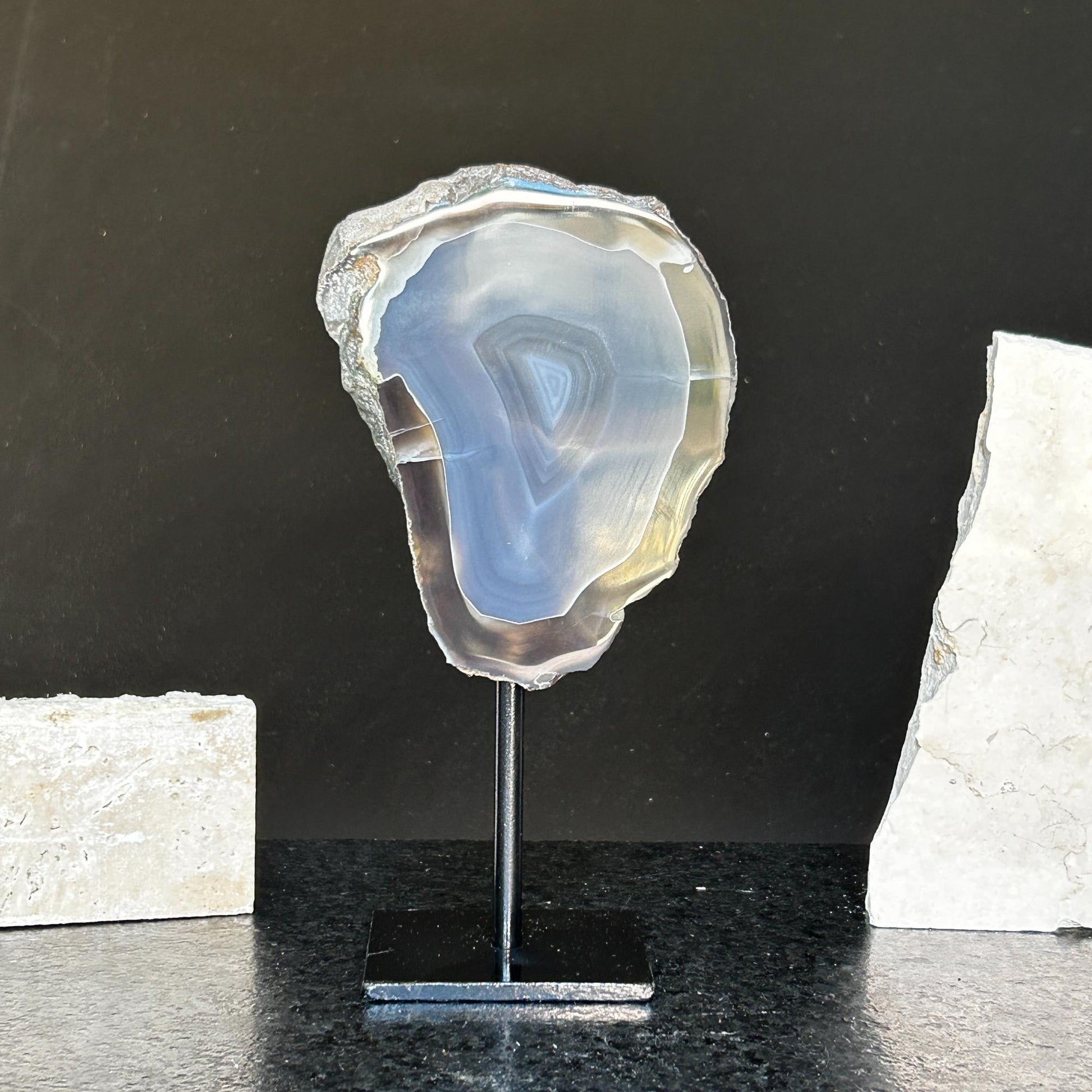 This Agate with metal stand has the highest quality of the semi precious stones. Its colors are 100% natural.