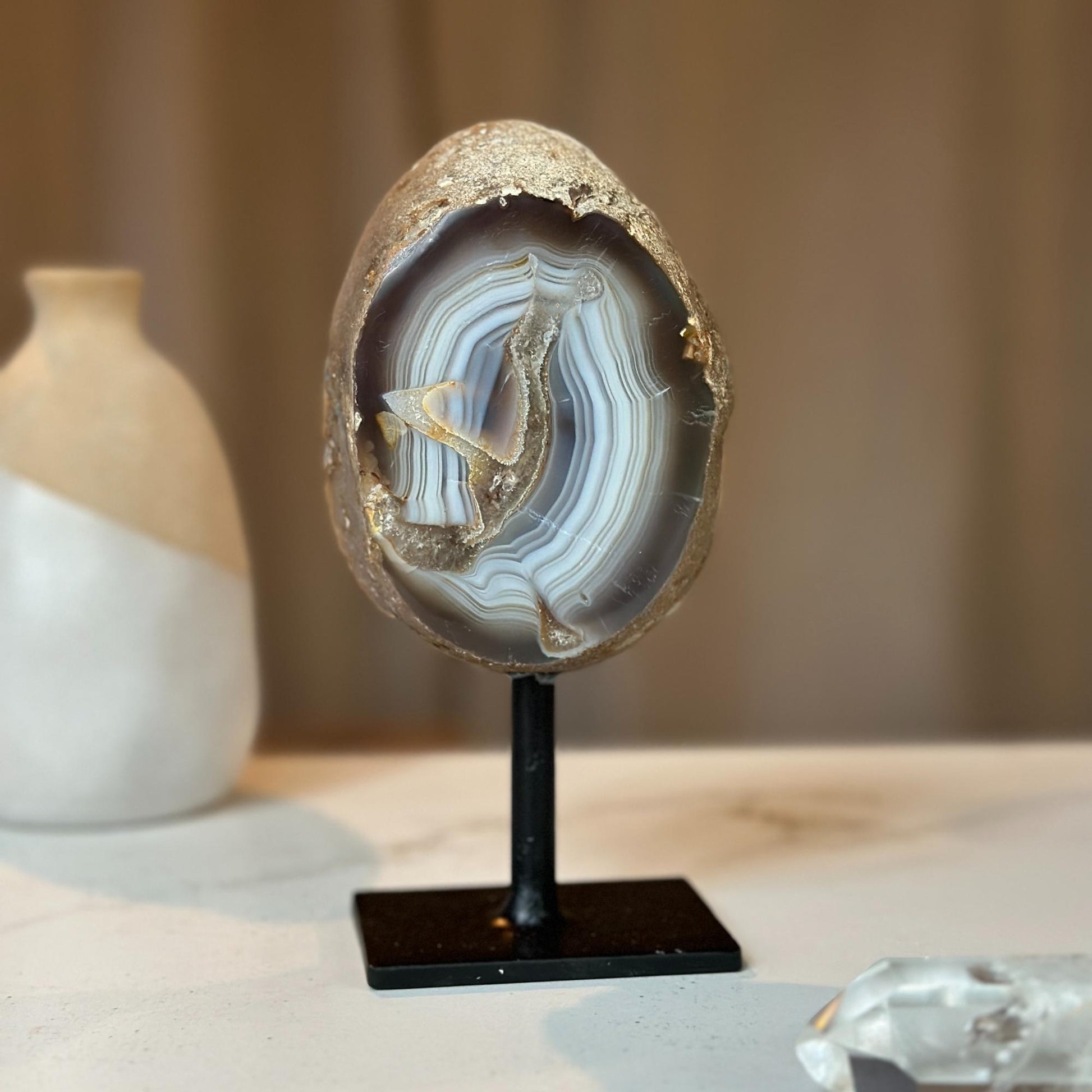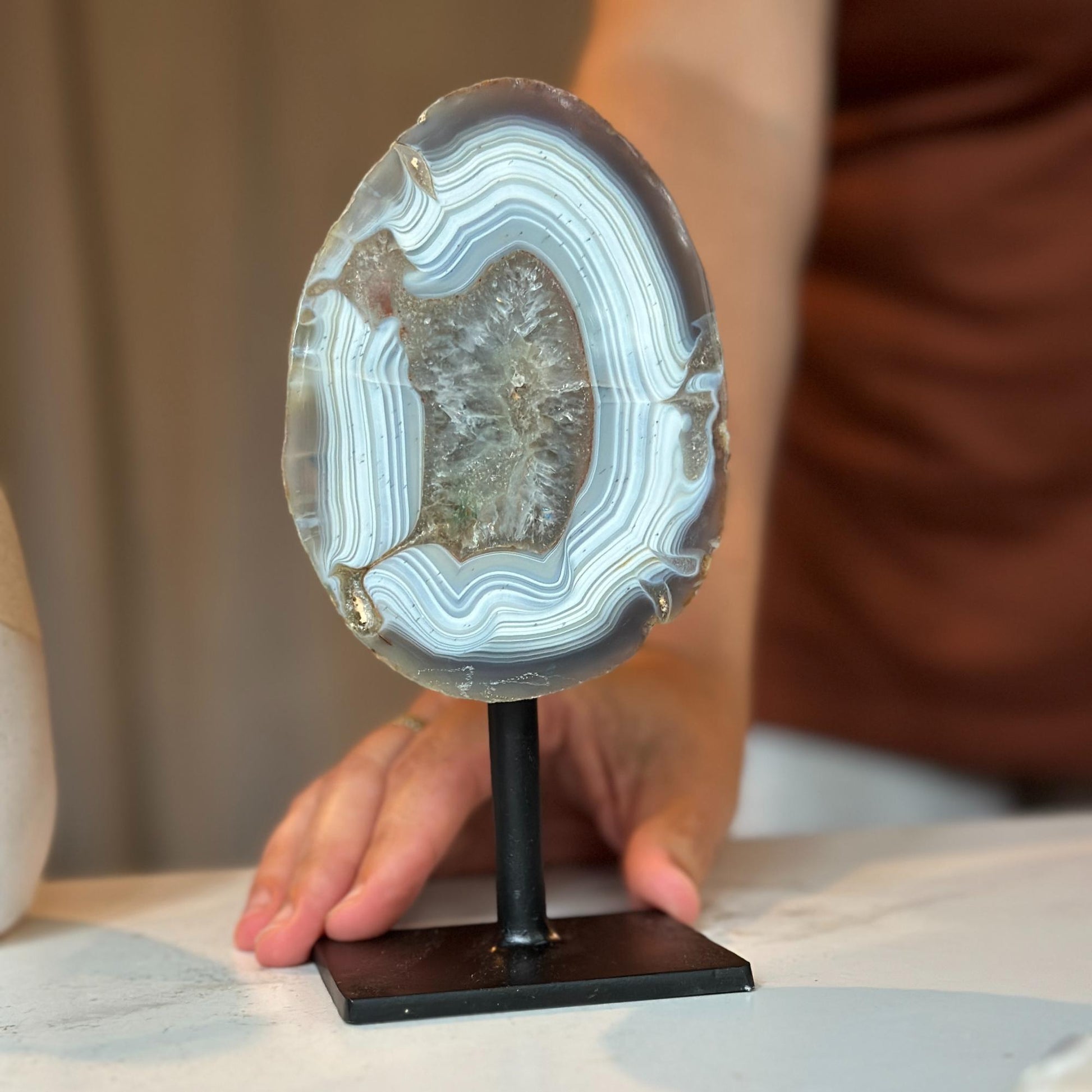Agate Stone, metal stand included - (Uruguay) Ethically Sourced