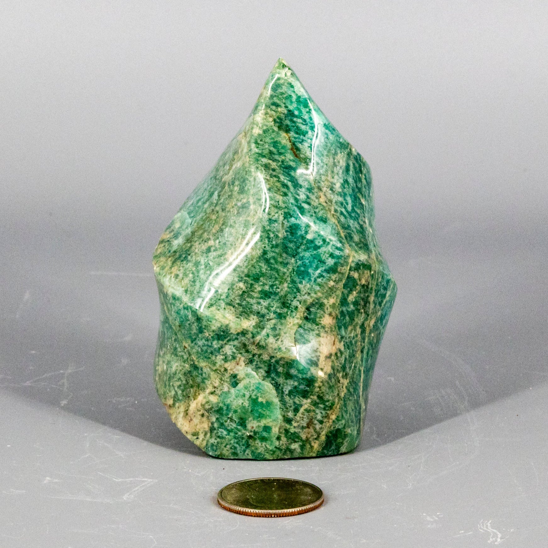 Amazonite Flame Freeform showcases the calming beauty of amazonite carved into a dynamic flame-shaped form. This piece enhances spaces with its soothing blue-green hues, known for promoting clarity and balance. Ideal for collectors or practitioners, its unique shape allows versatile display options, blending natural elegance with metaphysical harmony.
