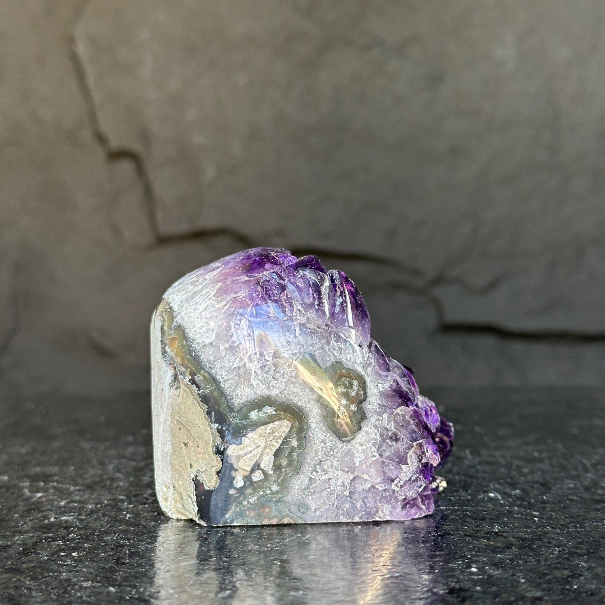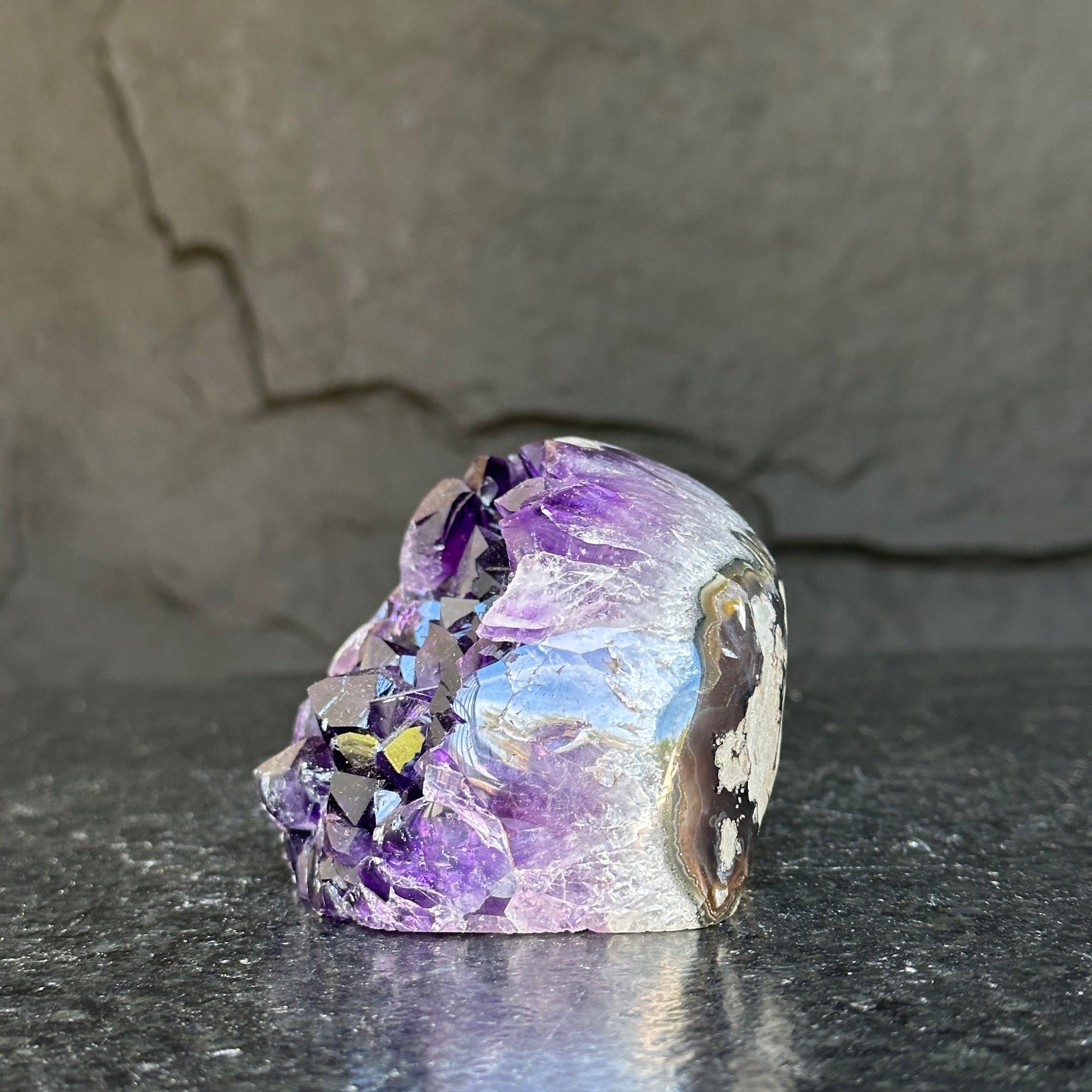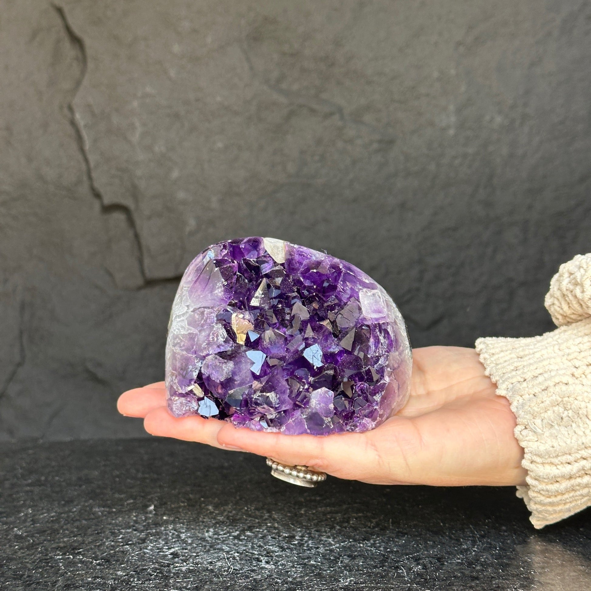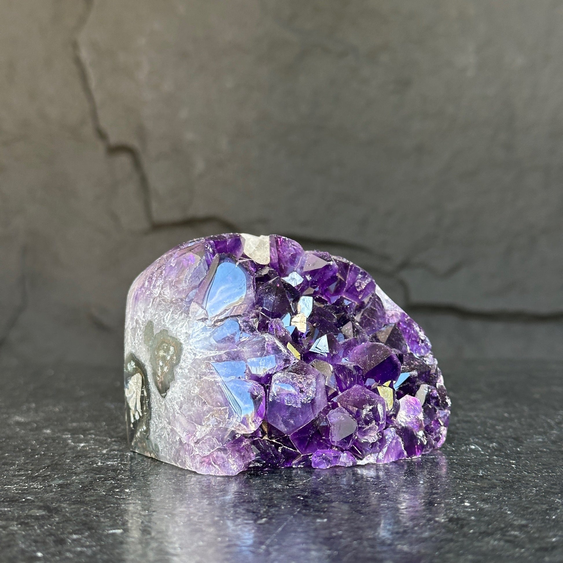 This amethyst geode is ideal for those who are looking for a self-standing stone to place on the coffee table and fill the room with good vibes.