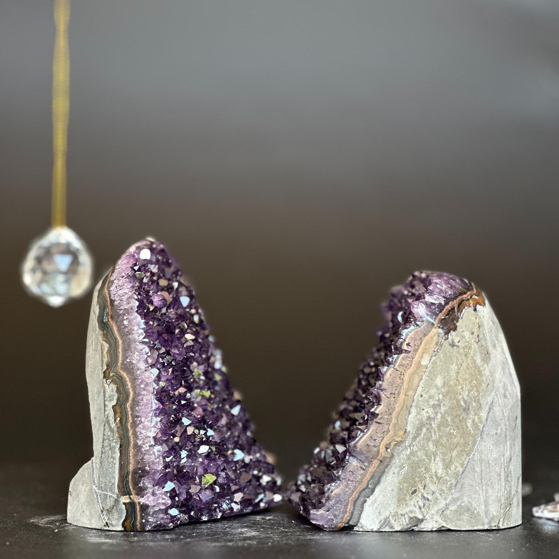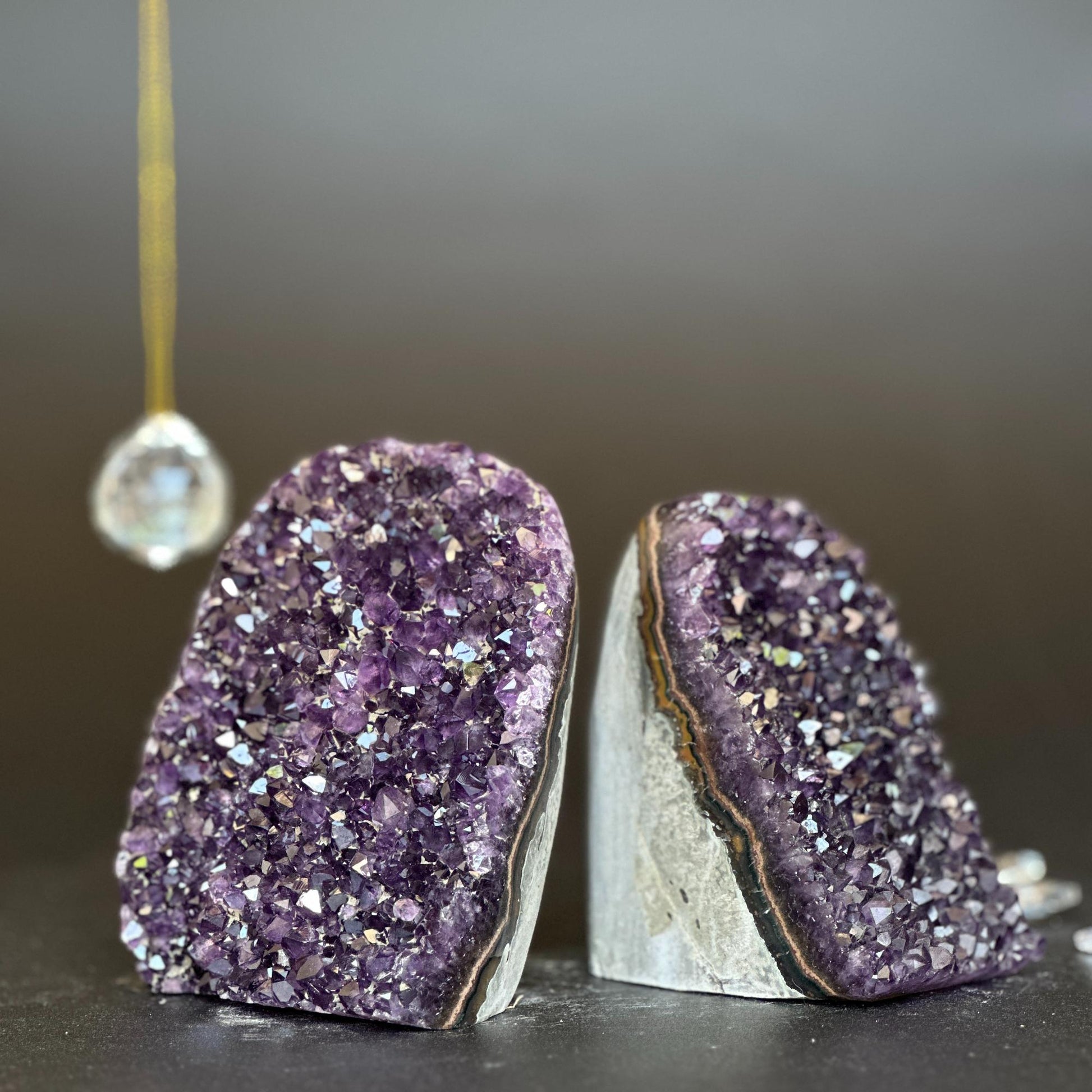 This set of 2 amethyst clusters has the highest quality of the semi precious stones.