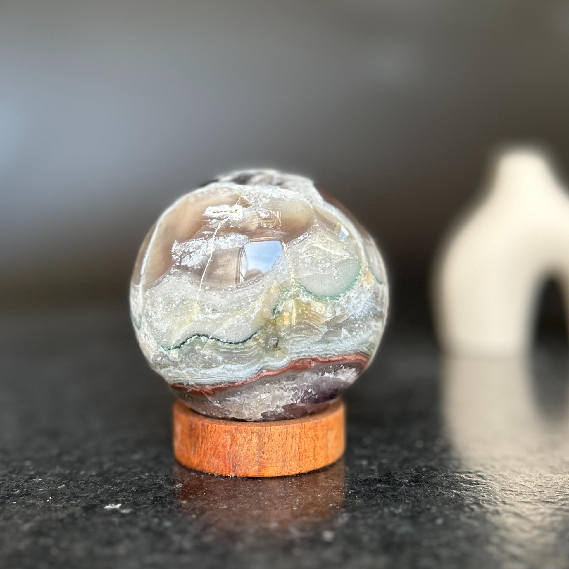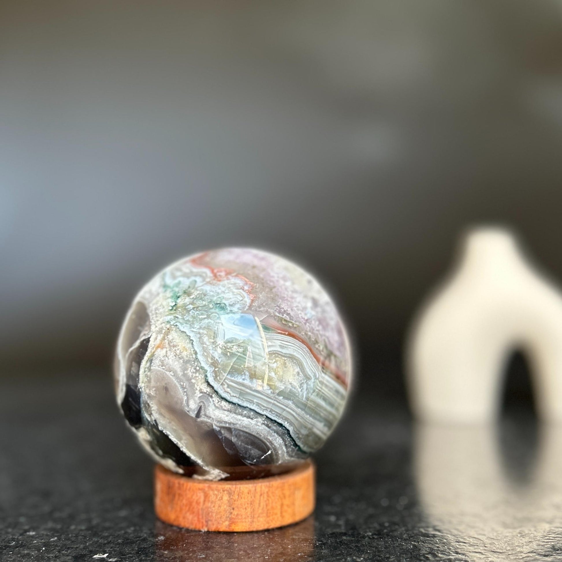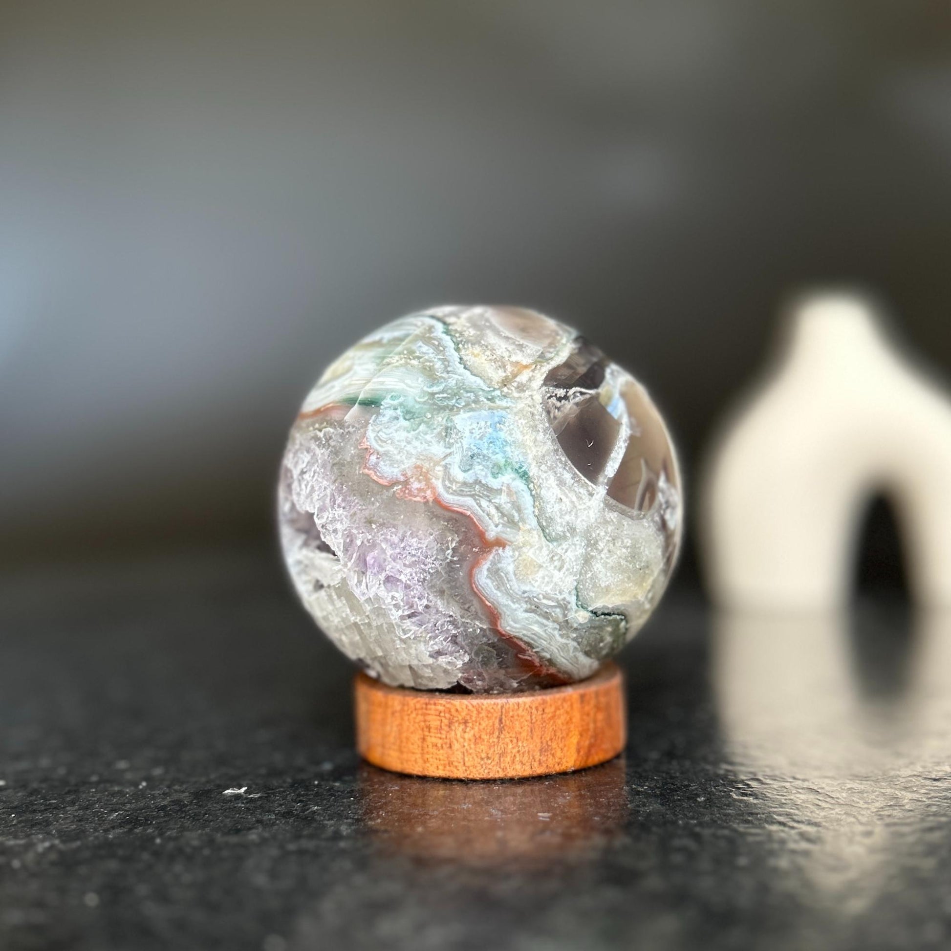 This piece of natural wood designed especially to hold the sphere completes a great product, making it more aesthetic and safe (protects it from falls).
