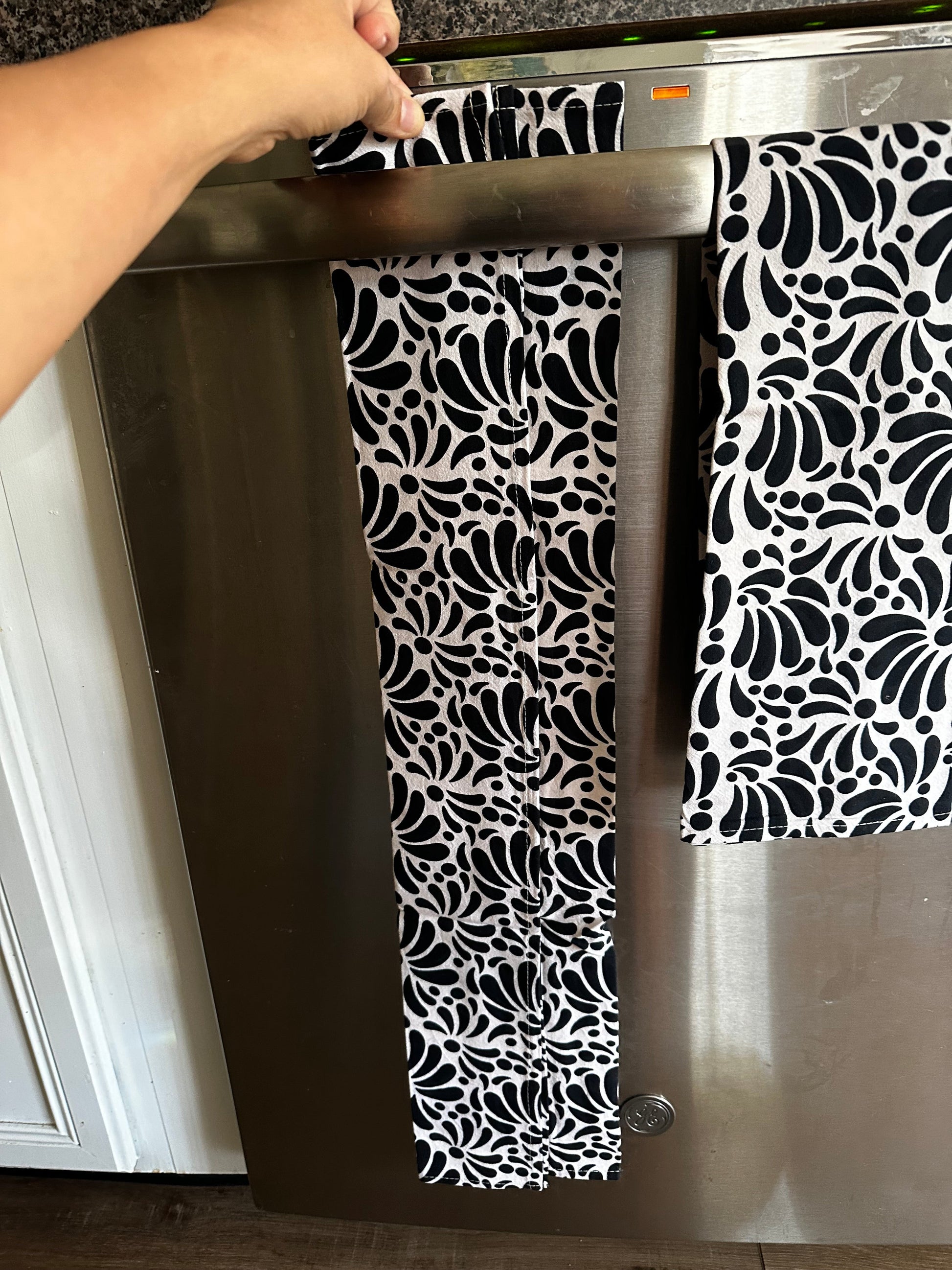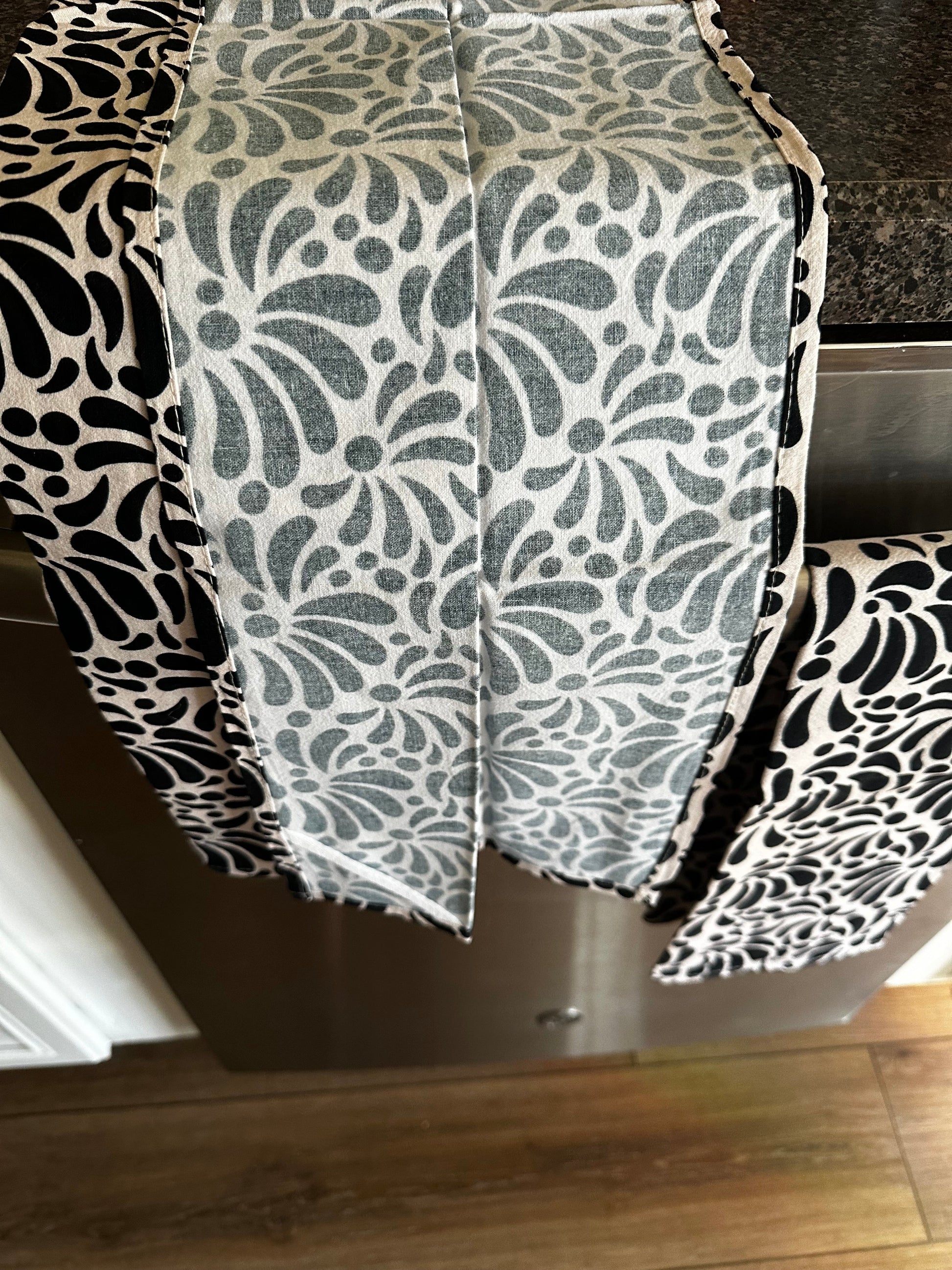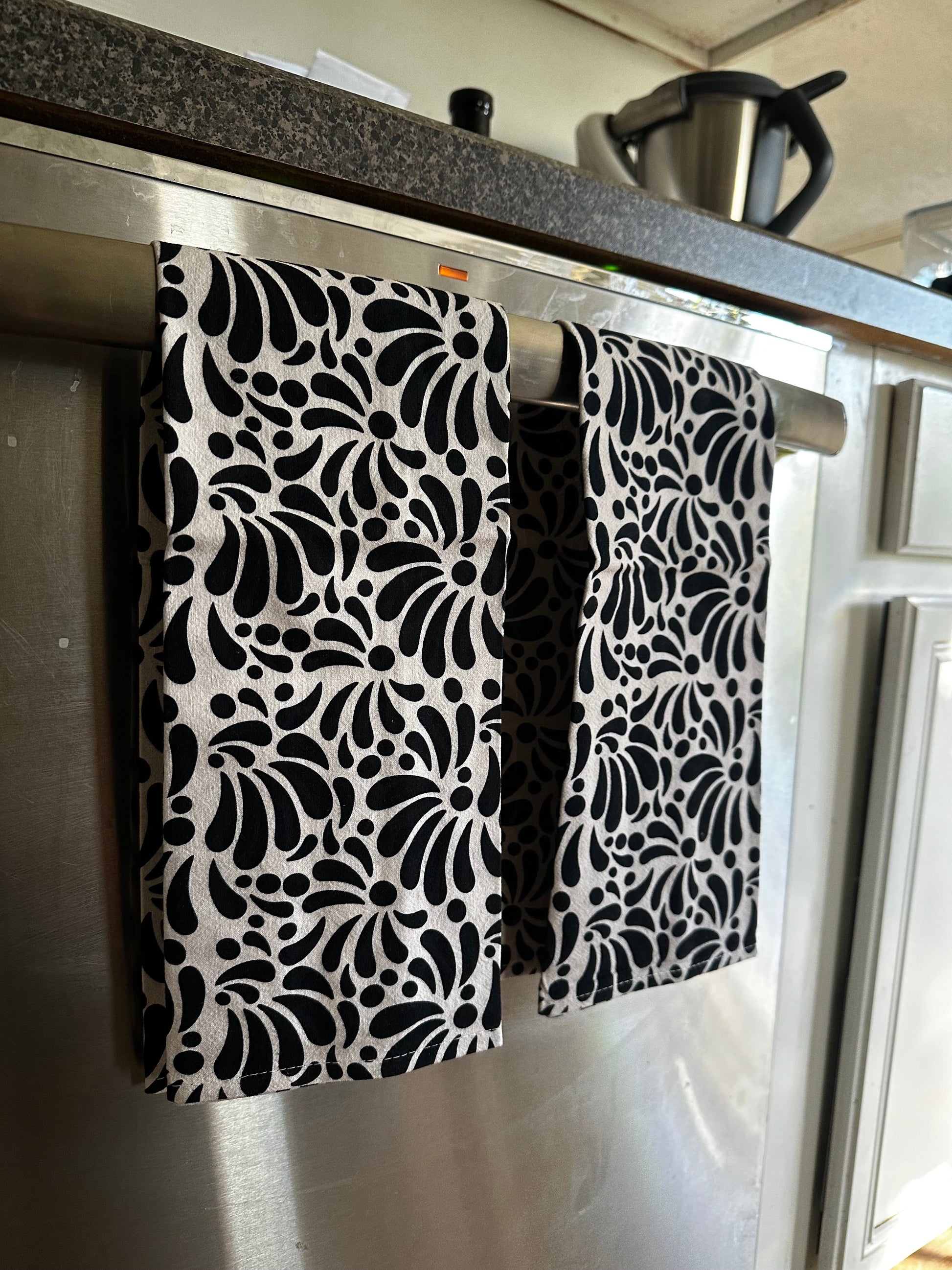 Black and beige Talavera kitchen towels. Mexican tea towel for Mexican kitchen decor. Set of 2 hand kitchen towel with Talavera desing