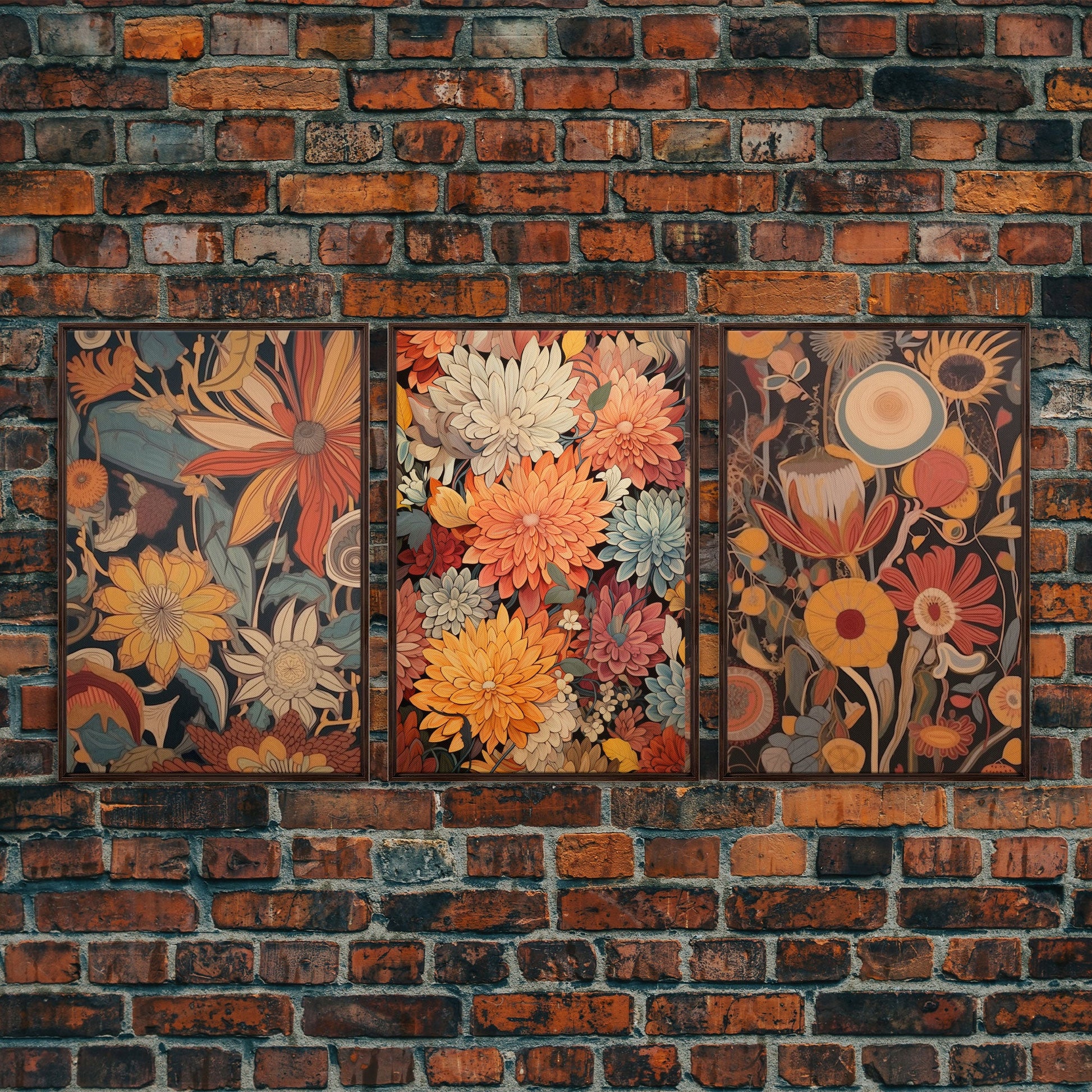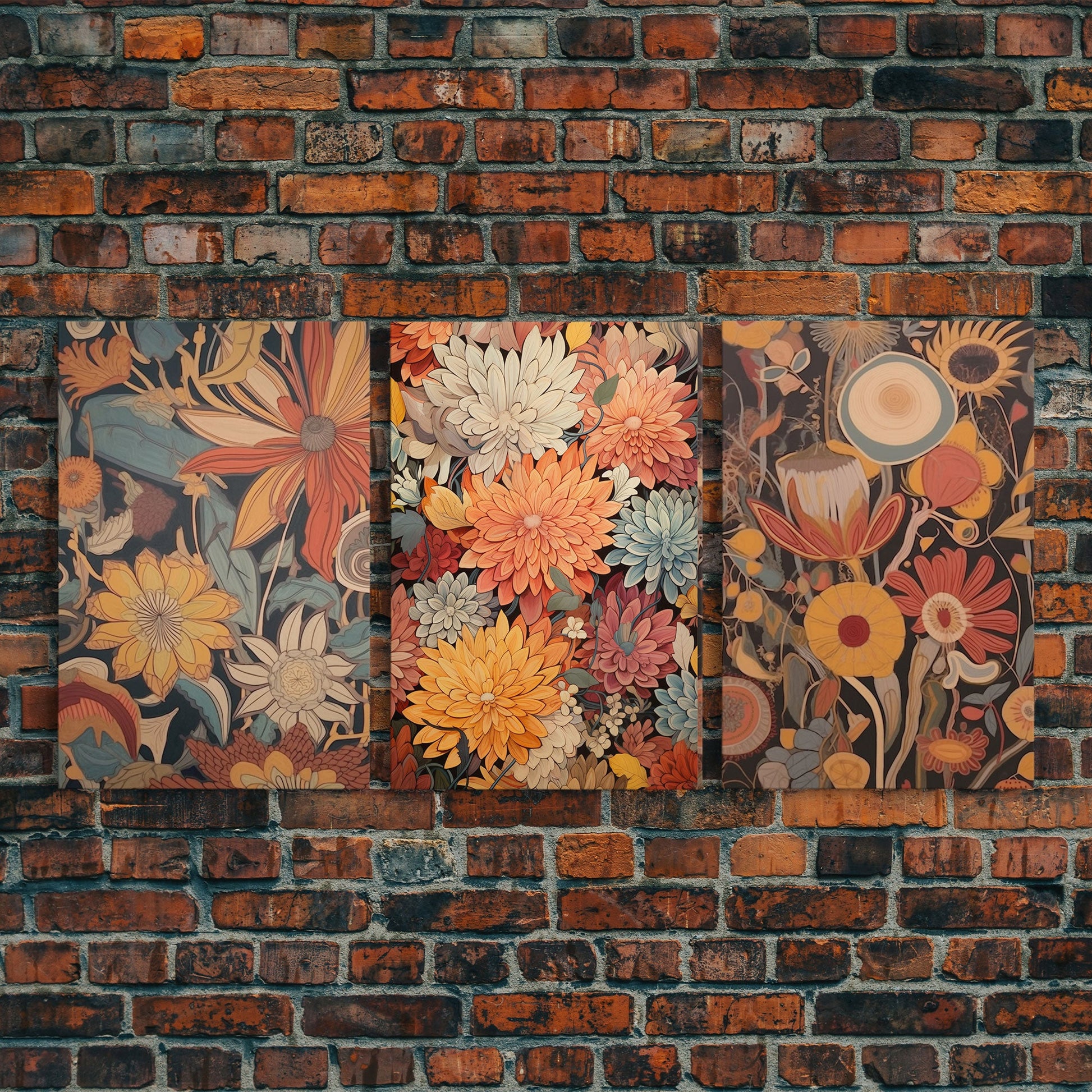 Boho Style Wall Art, Framed Canvas Print 3 Piece Set, Boho Chic, Gifts For Girlfriend, Boho Home Decor, Botanical Floral Art, Botanical Art