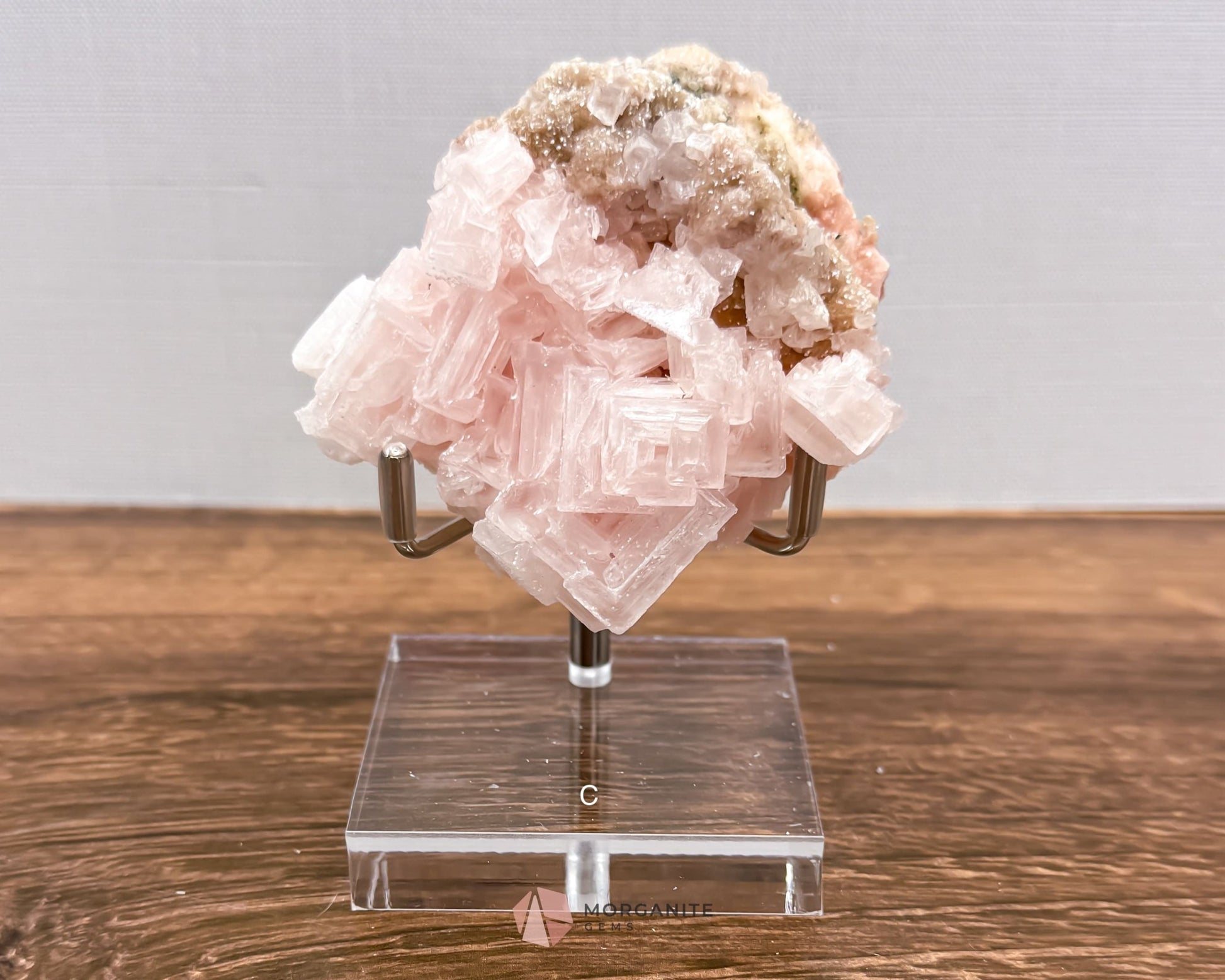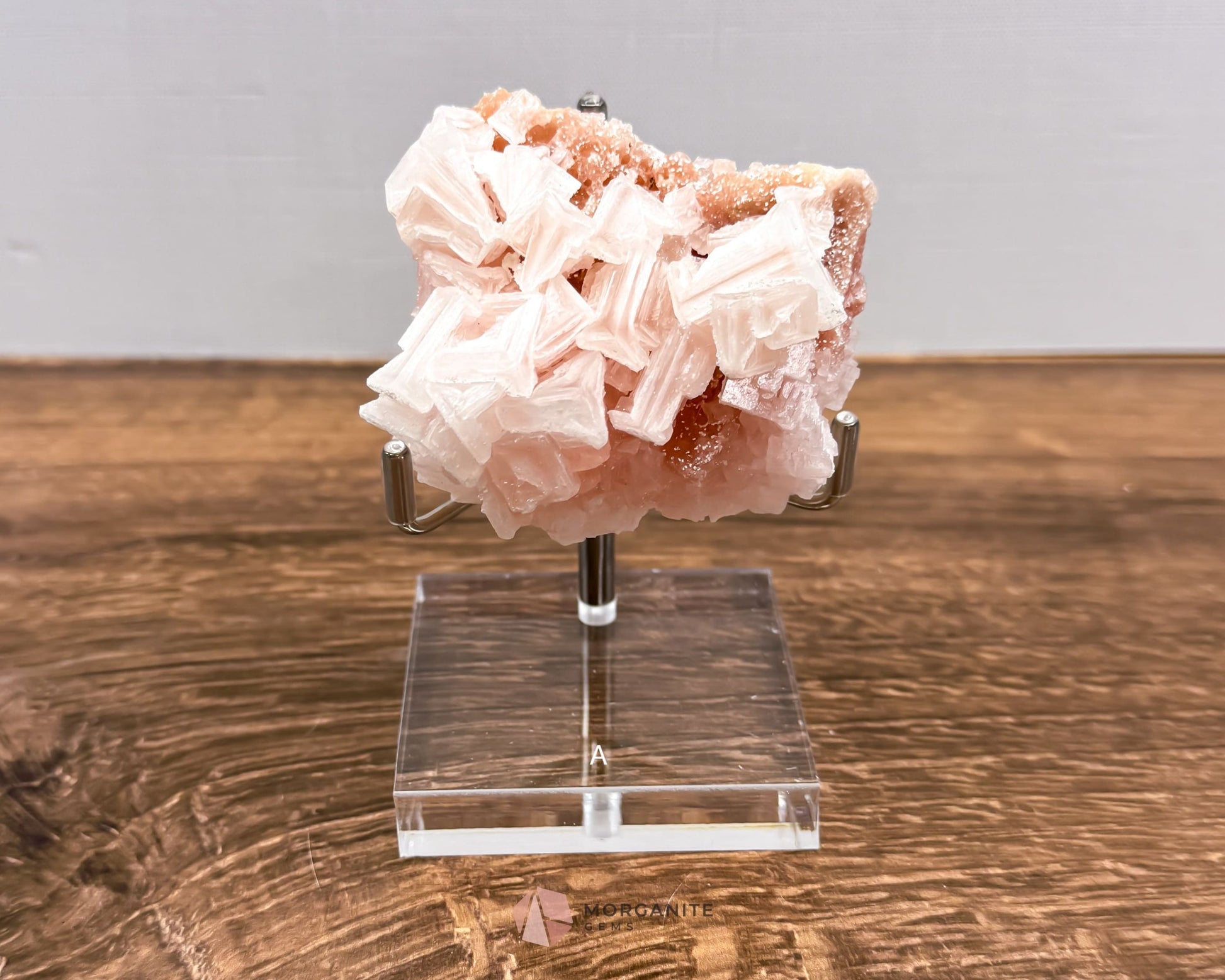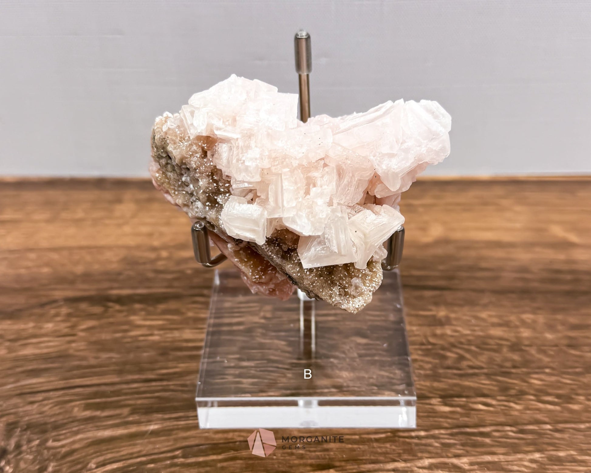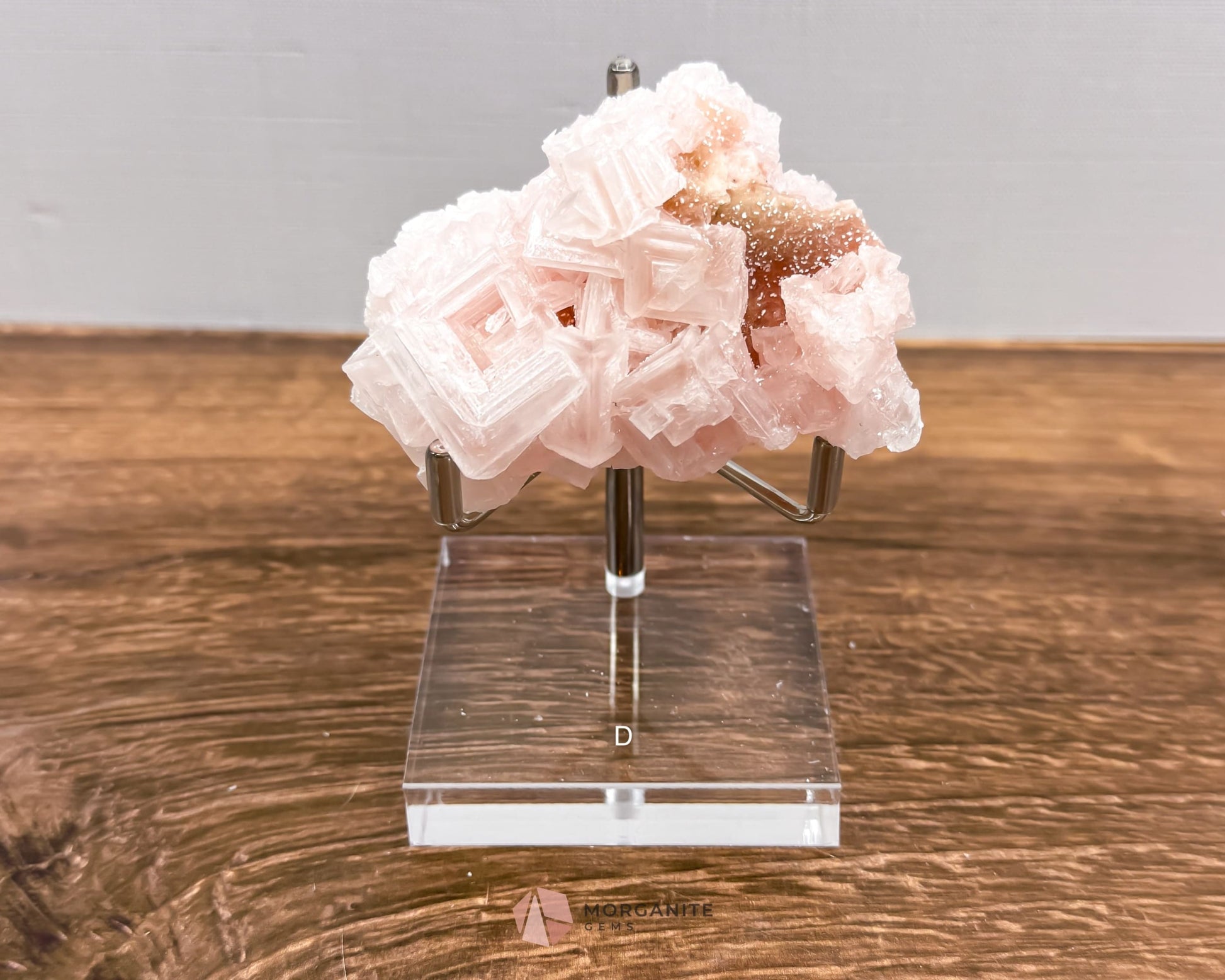 Each Specimen is Listed by Letter. Each has a few photos and will have weights. The specimens are displayed in a adjustable arm stand or a medium acrylic stand. Option to add a display to your order is available. The complete description of the stands are here: https://shop.morganitegems.com/products/specimen-displays