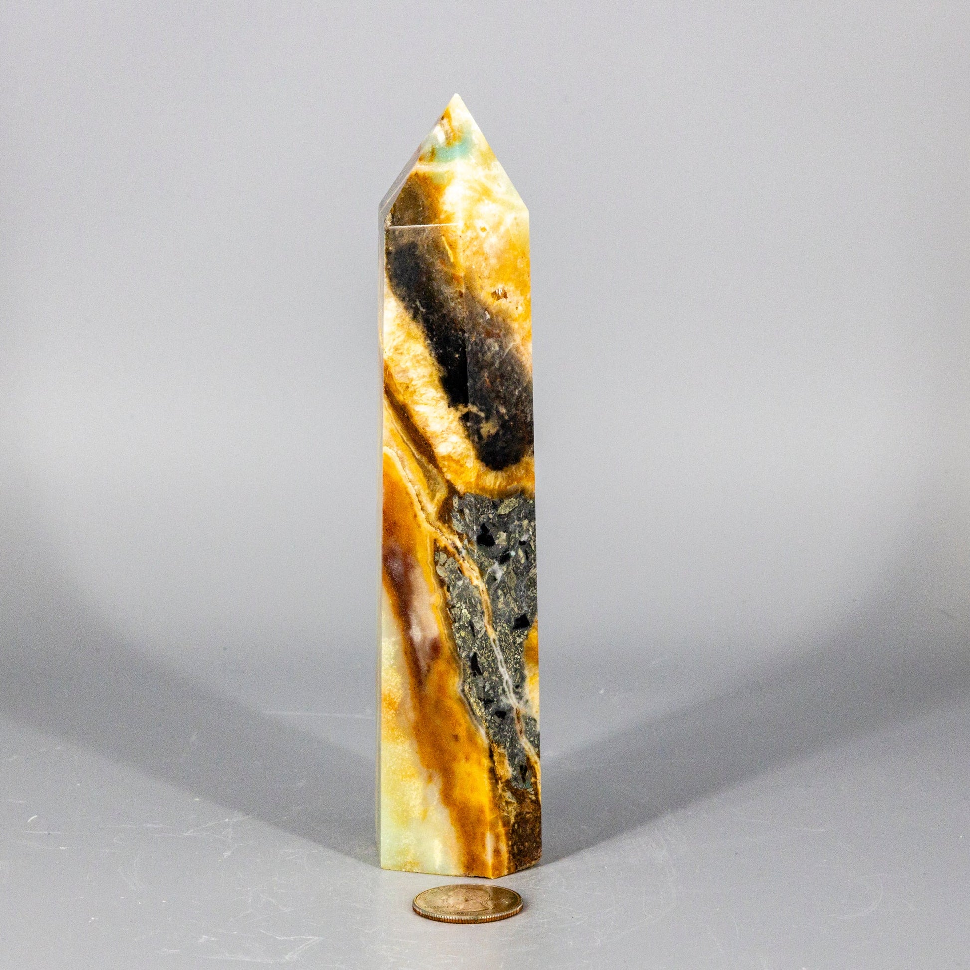 Metaphysically, Caribbean Calcite is known for its remarkable ability to clear negative energy and foster emotional healing. It facilitates balance and harmony by gently enhancing spiritual growth and inner peace. This particular variety is often linked to the sacral and solar plexus chakras, promoting creativity, confidence, and motivation. Beyond their aesthetic appeal, these XXL towers act as powerful tools for meditation, energy clearing, and manifesting goals by amplifying intentions and enhancing mental clarity. Ideal for crystal enthusiasts and healers alike, these towers bring a radiant presence that supports emotional resilience and spiritual awakening.