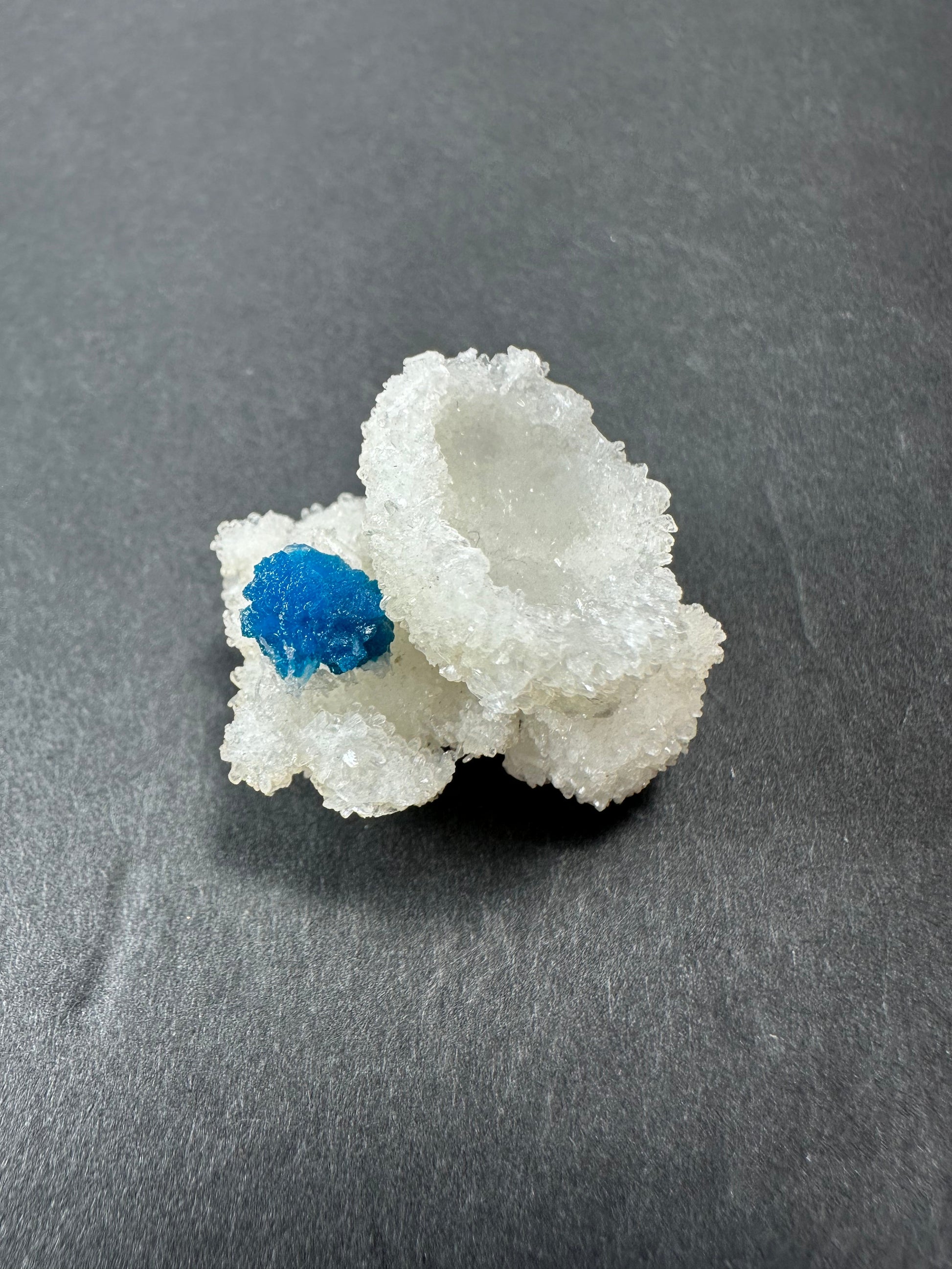 Cavansite balls on Stilbite "floater" cup (md) from Maharashtra, Pune, India