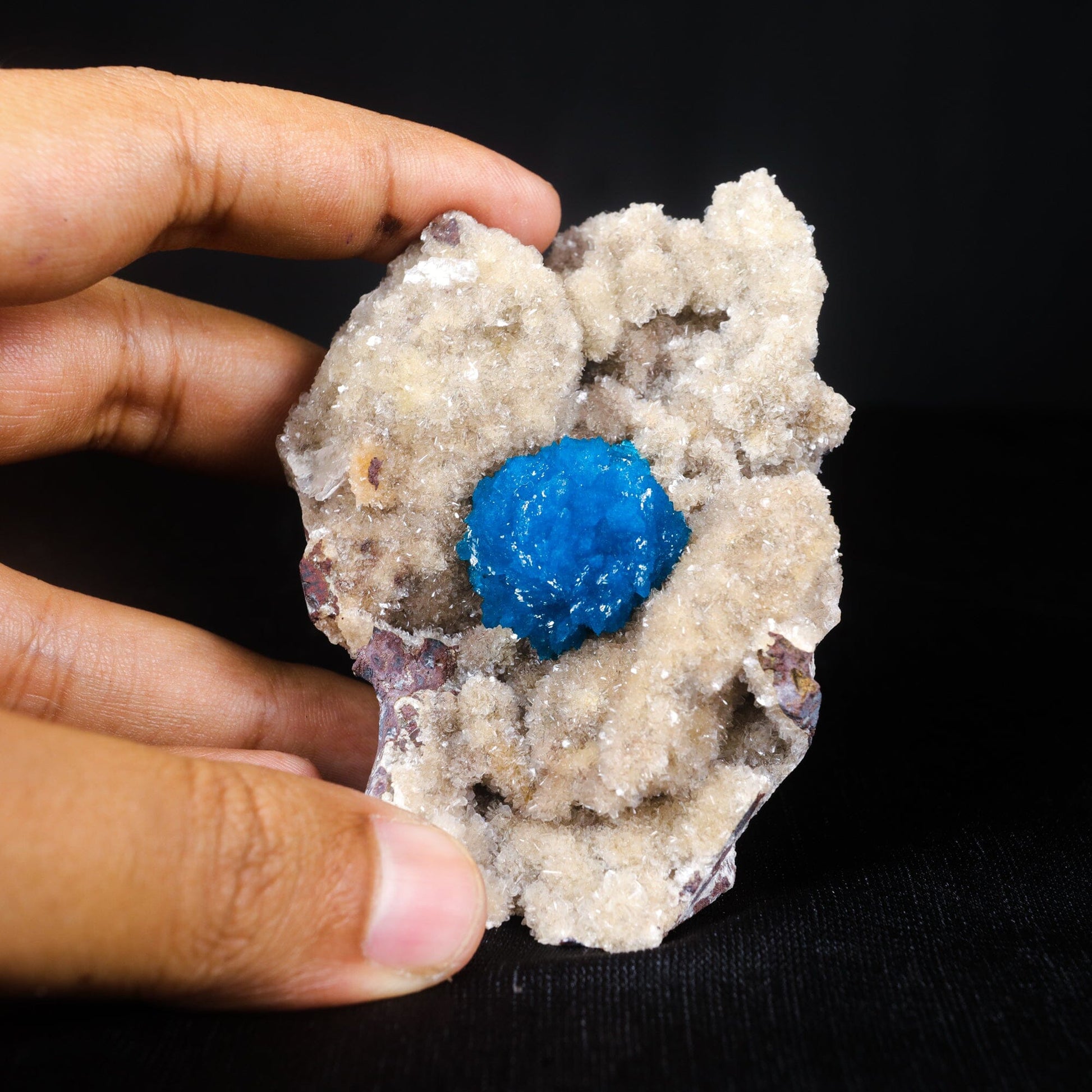 Discover the mesmerizing beauty of Electric Blue Cavansite at its finest, contrasted against a rare and stunning Heulandite matrix. This specimen features top-color Cavansite crystals with large, sharp formations, perfectly perched in a striking cluster. The vivid blue of the Cavansite and the contrasting Heulandite matrix make this piece truly unique. Rarely do such high-quality Cavansite crystals come in such pristine condition and sharp formations. This superior specimen stands out for its exceptional color and style, making it a valuable addition to any collection. Don't miss the chance to own this rare and exquisite natural mineral specimen.