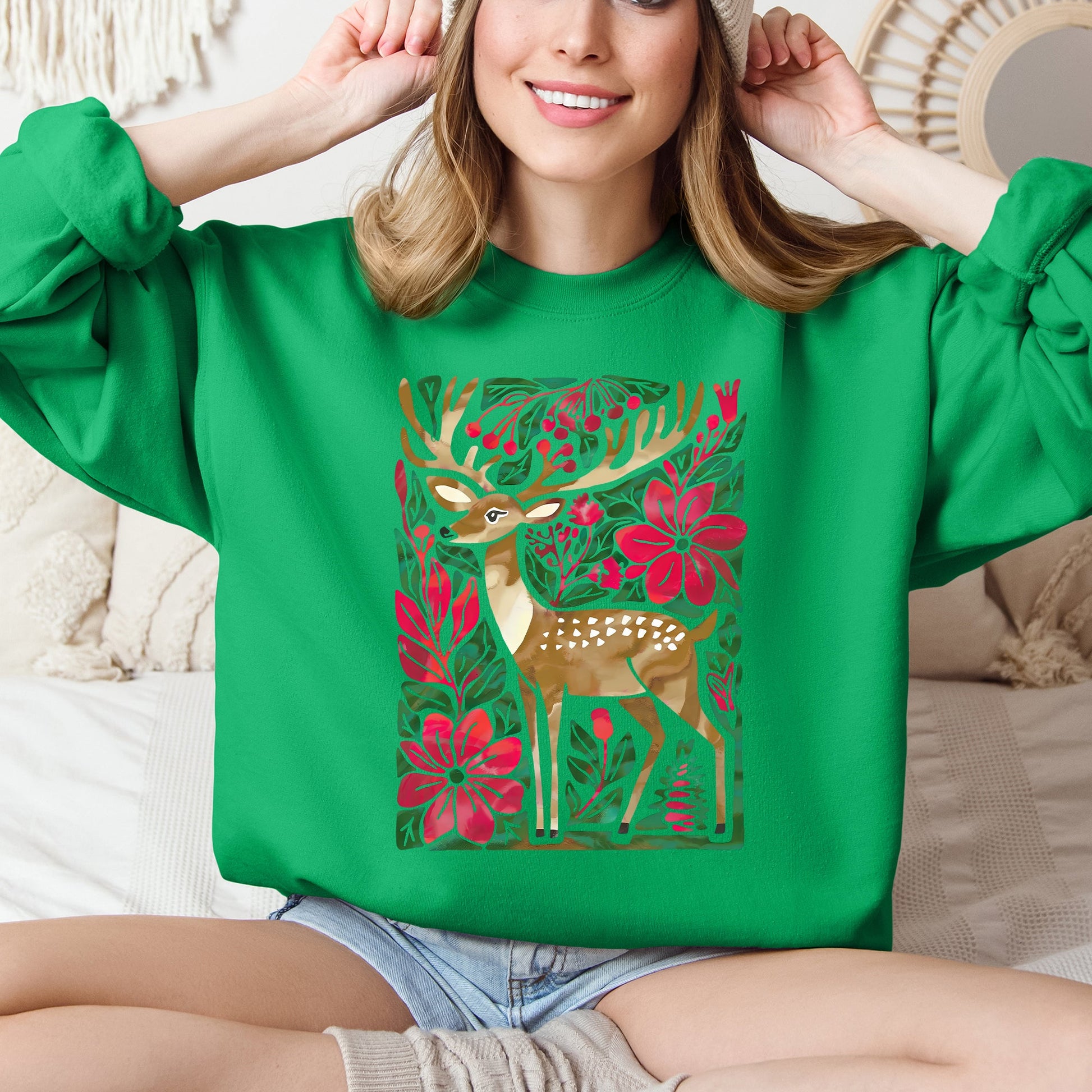 Celebrate the season in cozy, retro charm with our Christmas Deer, Colorful, Flowers, Santa, Snow Sweatshirt. Built on the trusted Gildan 18000 Graphic Sweatshirt silhouette, this festive piece blends a soft fleece interior with a durable cotton/polyester blend to keep you warm, comfortable, and effortlessly stylish all winter long. Featuring a vibrant retro Christmas graphic, it’s the perfect way to wear your holiday spirit with confidence.