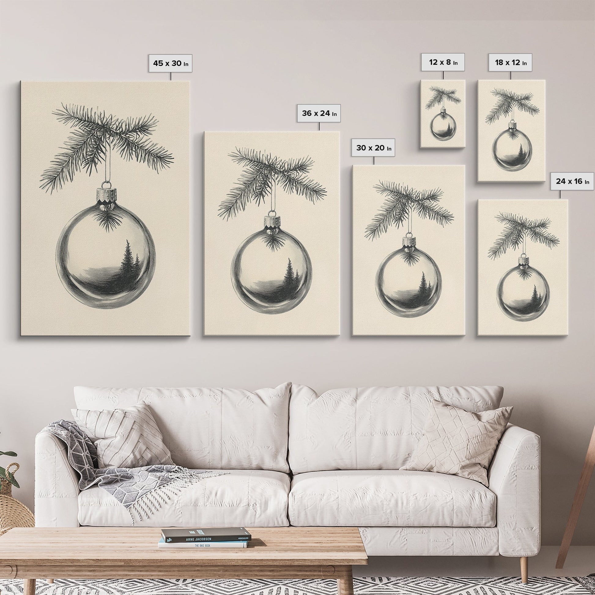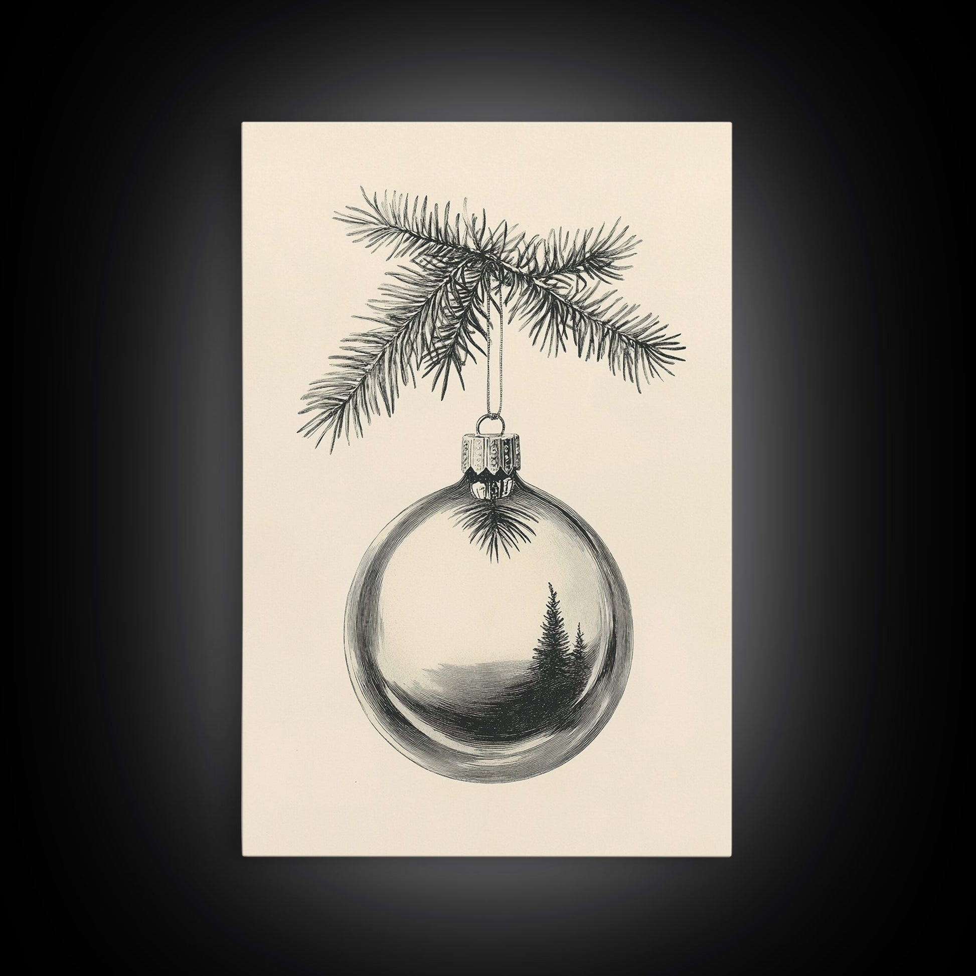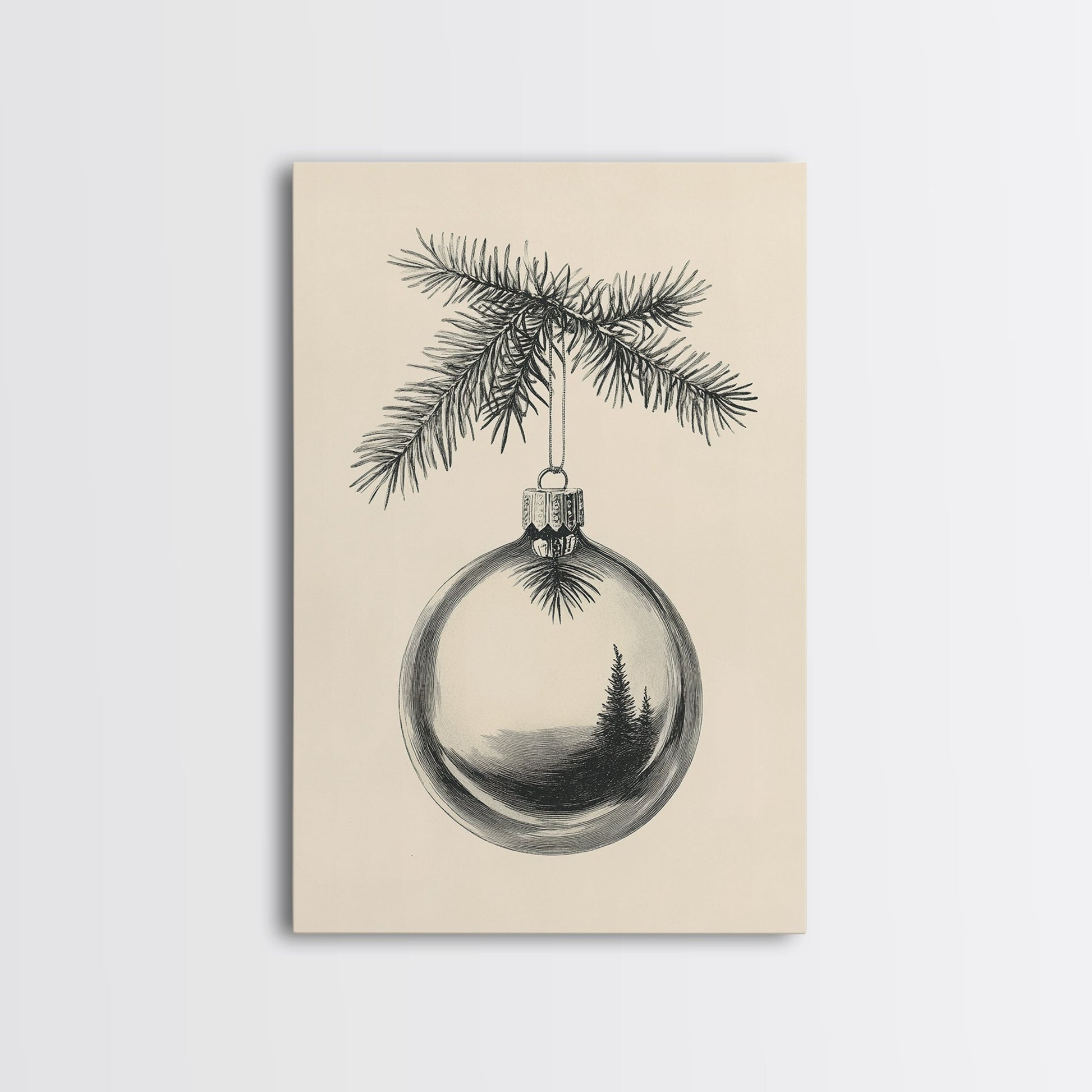 Christmas Tree Ornament Canvas Print, Retro Home Decor, Boho Christmas