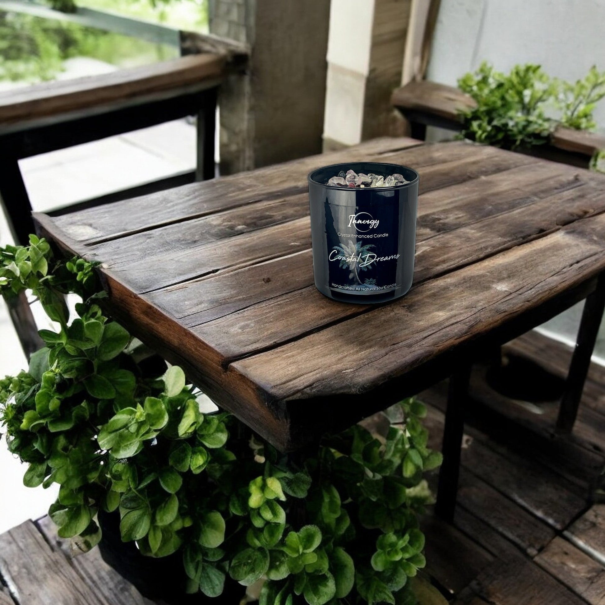 Coastal Dreams Crystal Candle with Garnet, Quartz, & Rose Quartz | Coconut-Soy Wax Candle, 9oz