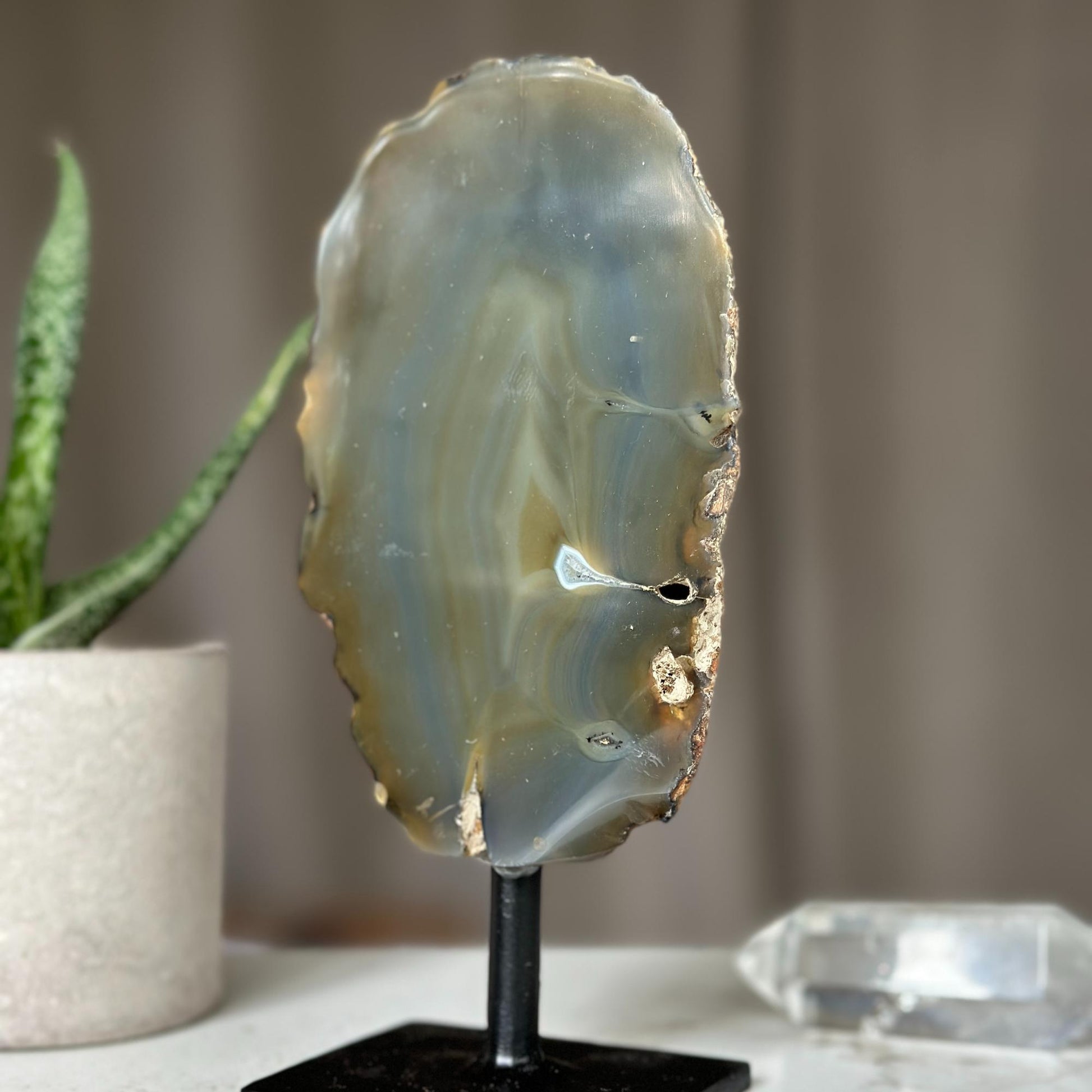 Colorful Agate Crystal Piece with Metal Base, Stunning Decor Stone 100% natural, Uruguayan Geode