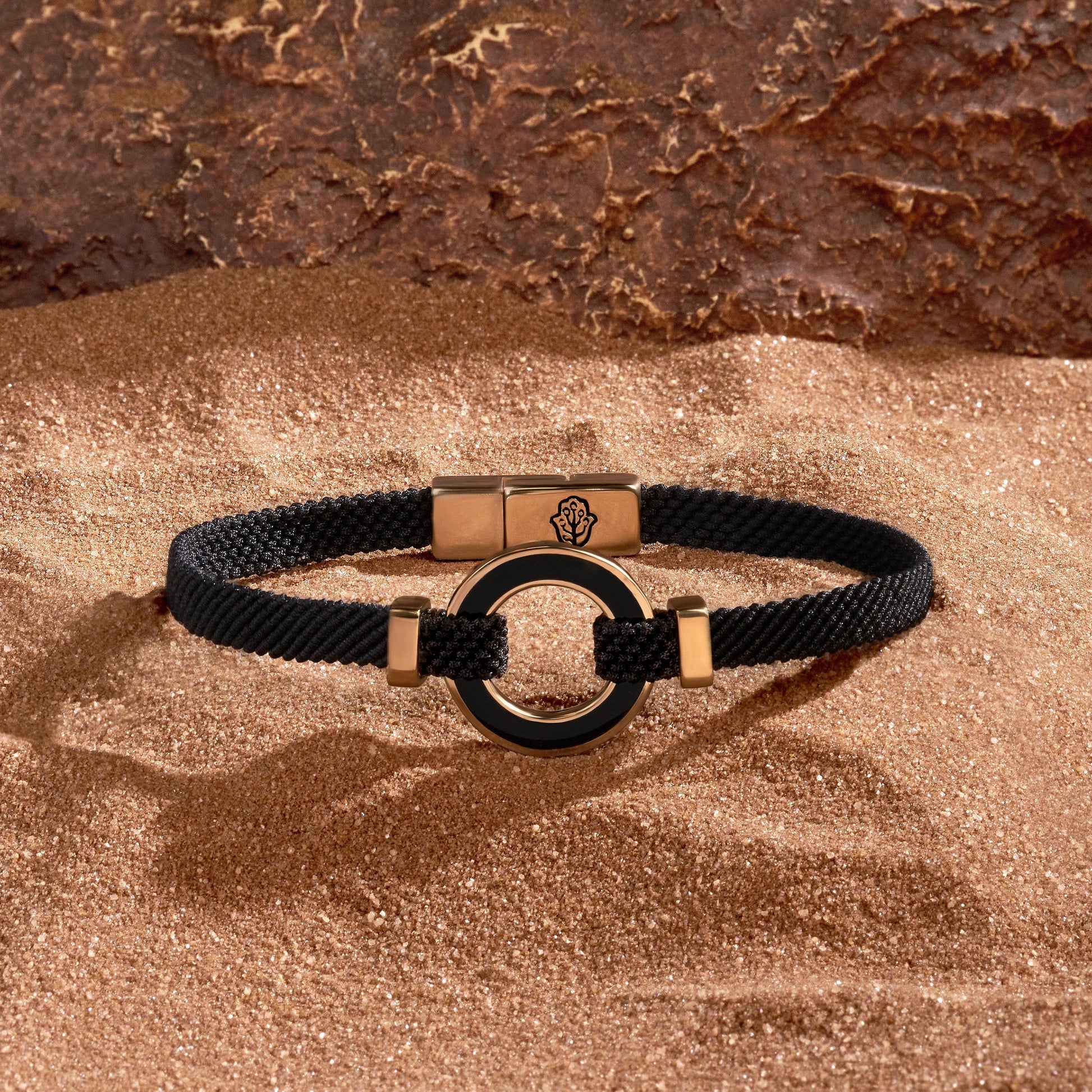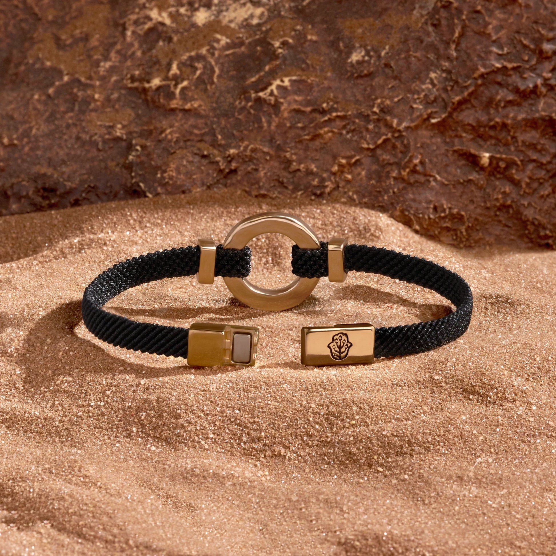 In our constant transformation in life, we meet many versions of ourselves. With the protective energy of Black Onyx, this Karma Circle bracelet gives a balancing effect through the changing seasons of your life. With an 18K Gold-Plated Brass Karma Circle adorned with Black Onyx, this “Constant Protection Black Onyx Karma Circle Men’s Black String Bracelet” has a classic style. With the added protective powers of the Hamsa symbol, wear this bracelet for peace and stability.