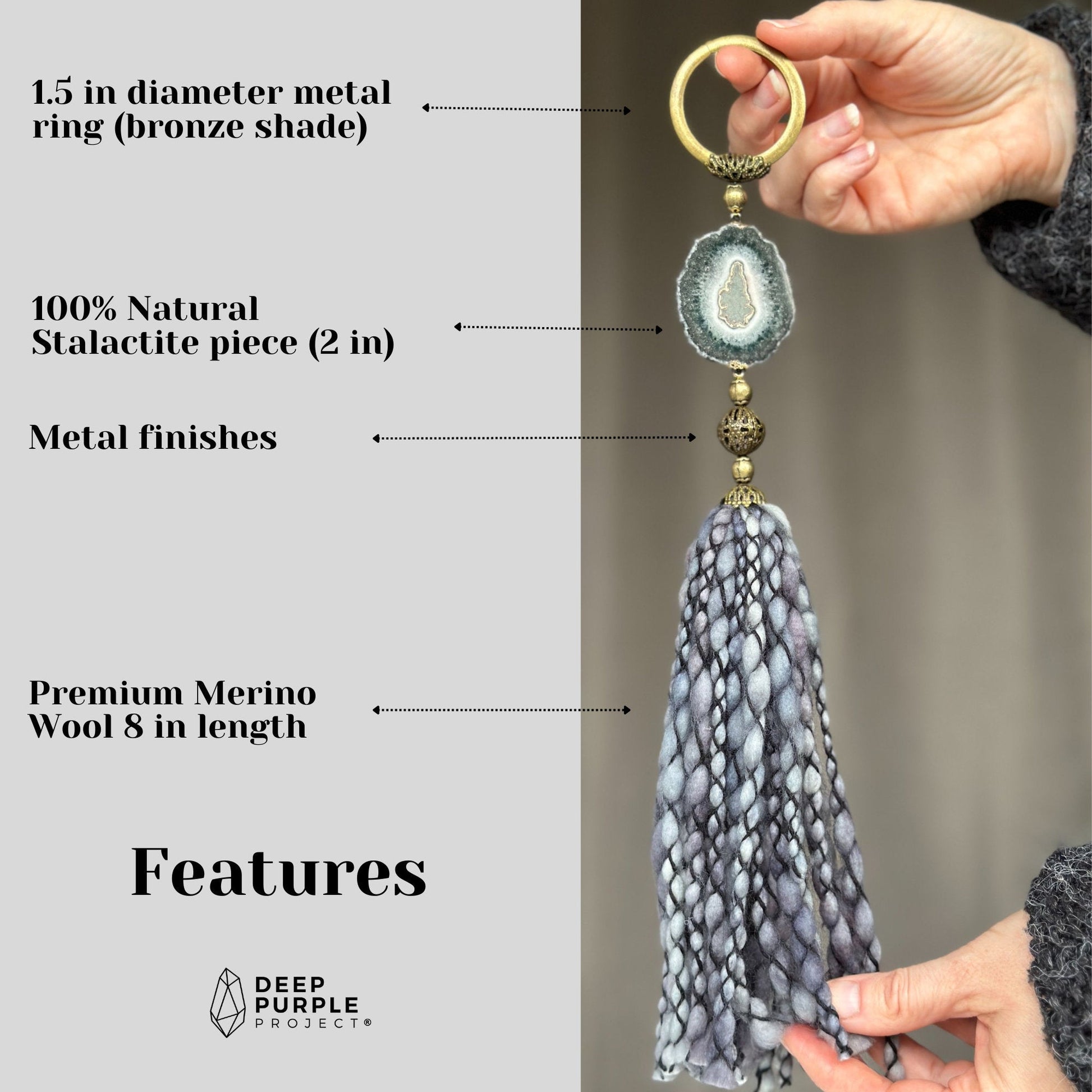 Crystal Garland with Stalactite Stone and Merino Wool Tassels, One of a kind decor piece, Natural Wall Hanging, multiple uses Jasper Gift
