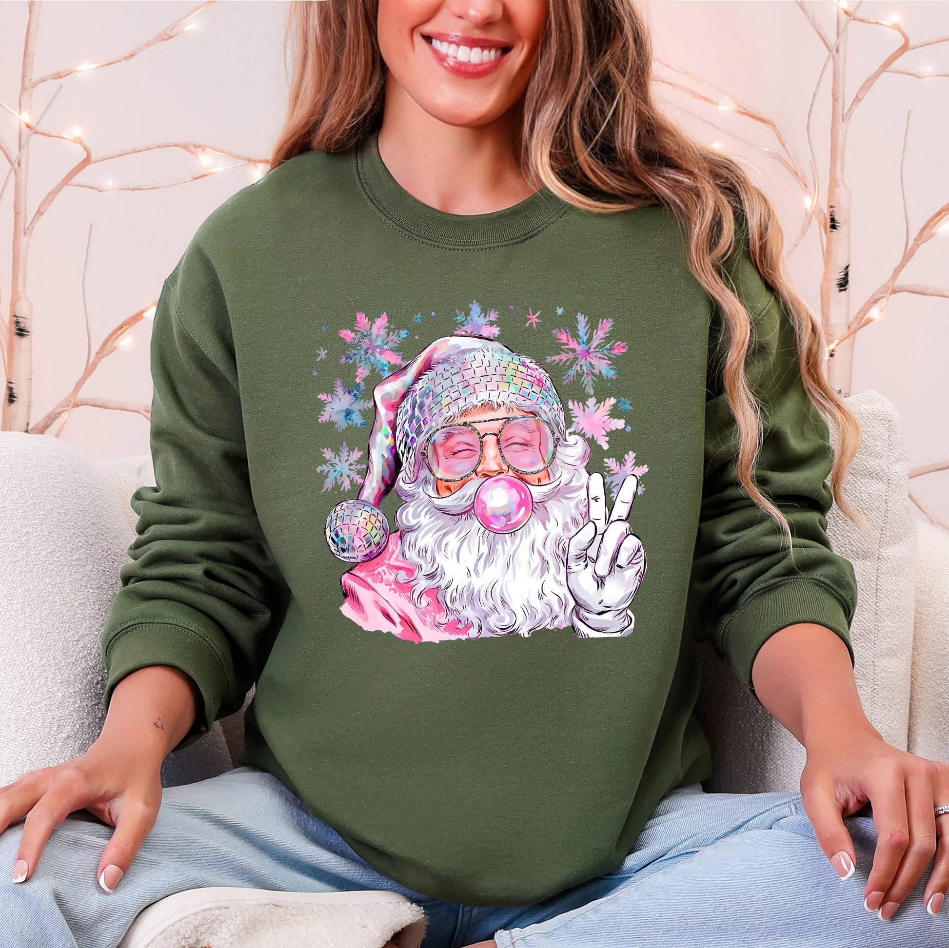 Disco Santa, Bubble Gum, Christmas, Pink, Snowflakes, Cute Sweatshirt
