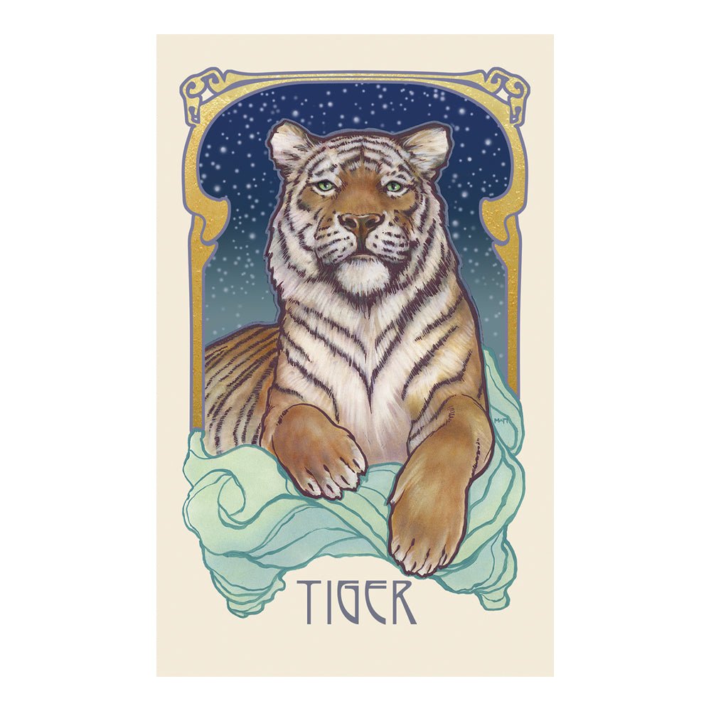 Dreamscape Oracle presents 32 guides, some animal messengers, some mythological archetypes, to help us explore the liminal spaces in our lives. Together this oracle deck and 80-page guidebook allow us to interpret the messages we receive from our higher selves. This deluxe deck has gold foil stamping on the cards and box. The Dreamscape Oracle can be used as a stand-alone divination deck, or as a companion to the Ethereal Visions Tarot.