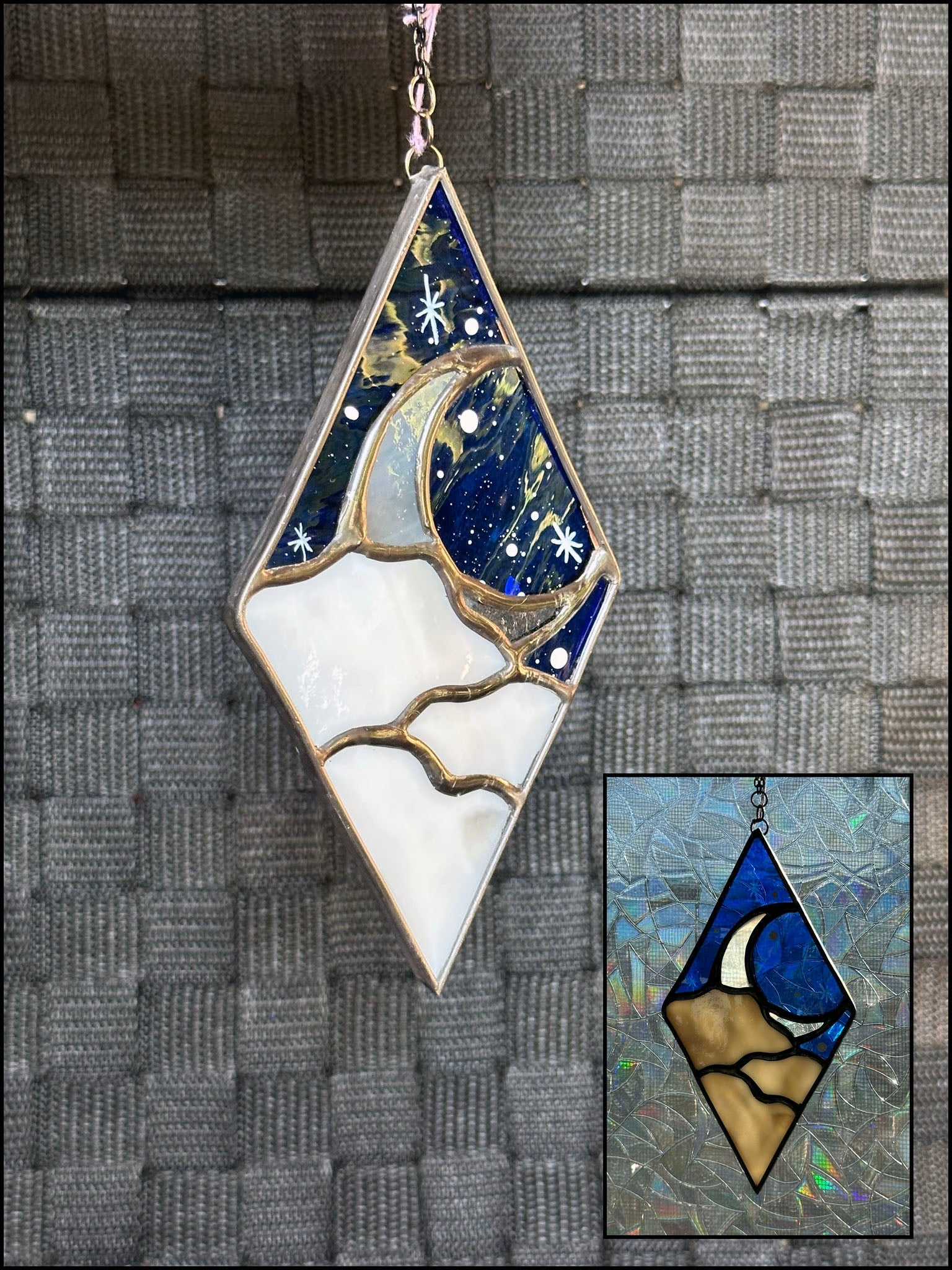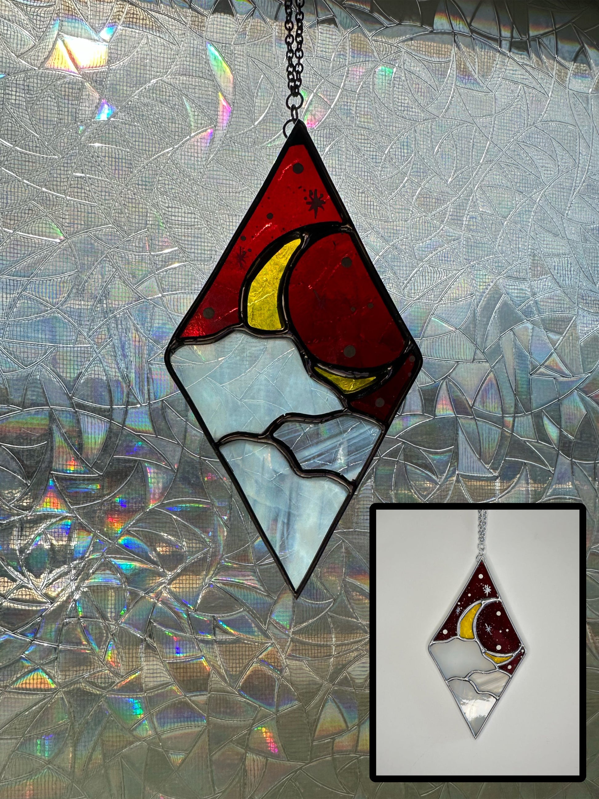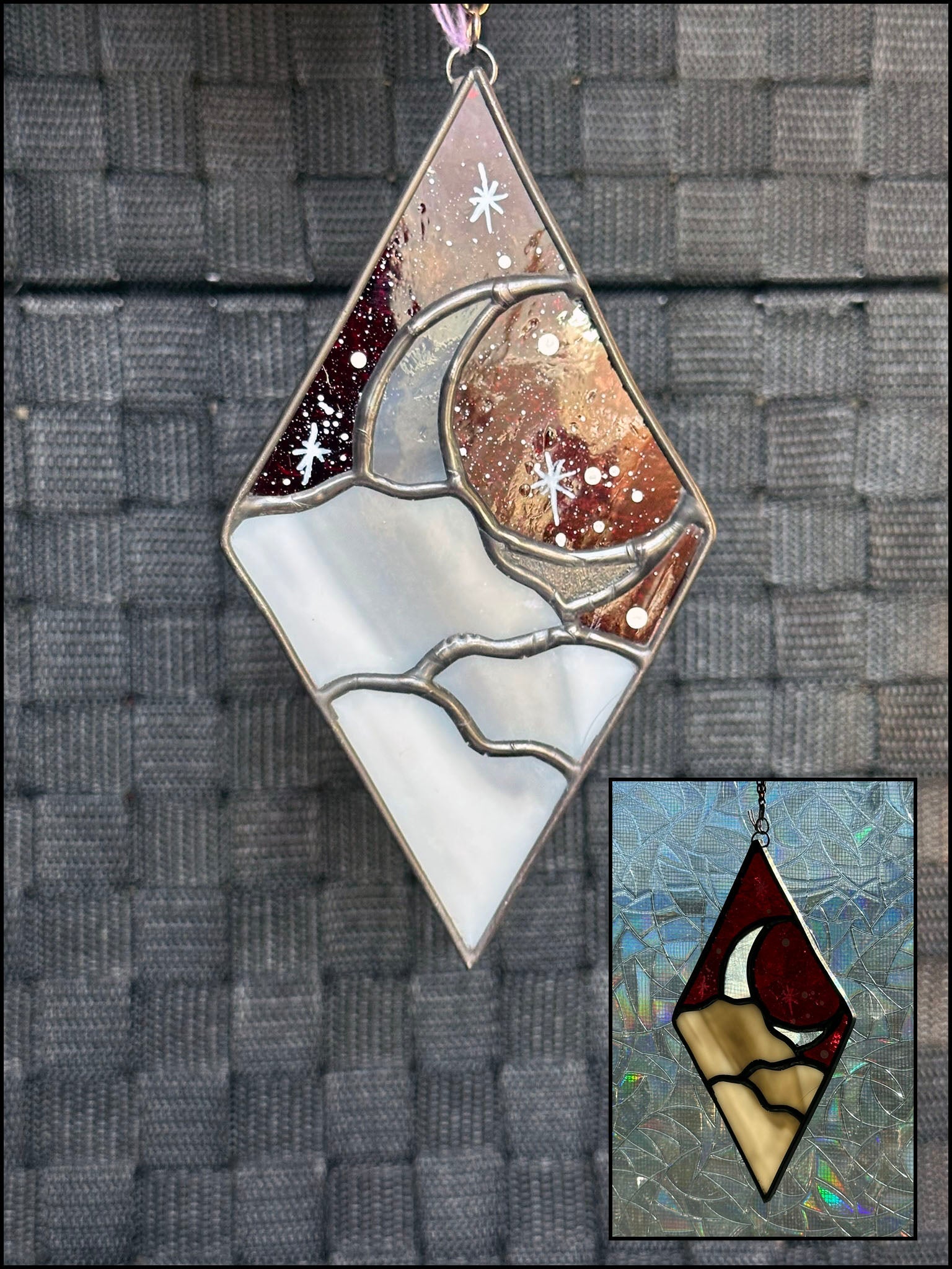 Bring the mysterious charm of a foggy night into your home with our "Foggy Night" stained glass suncatcher. Featuring hand painted intricate details, this suncatcher is sure to add an enchanting touch to any room. (Moon shines bright, no matter the weather!)
