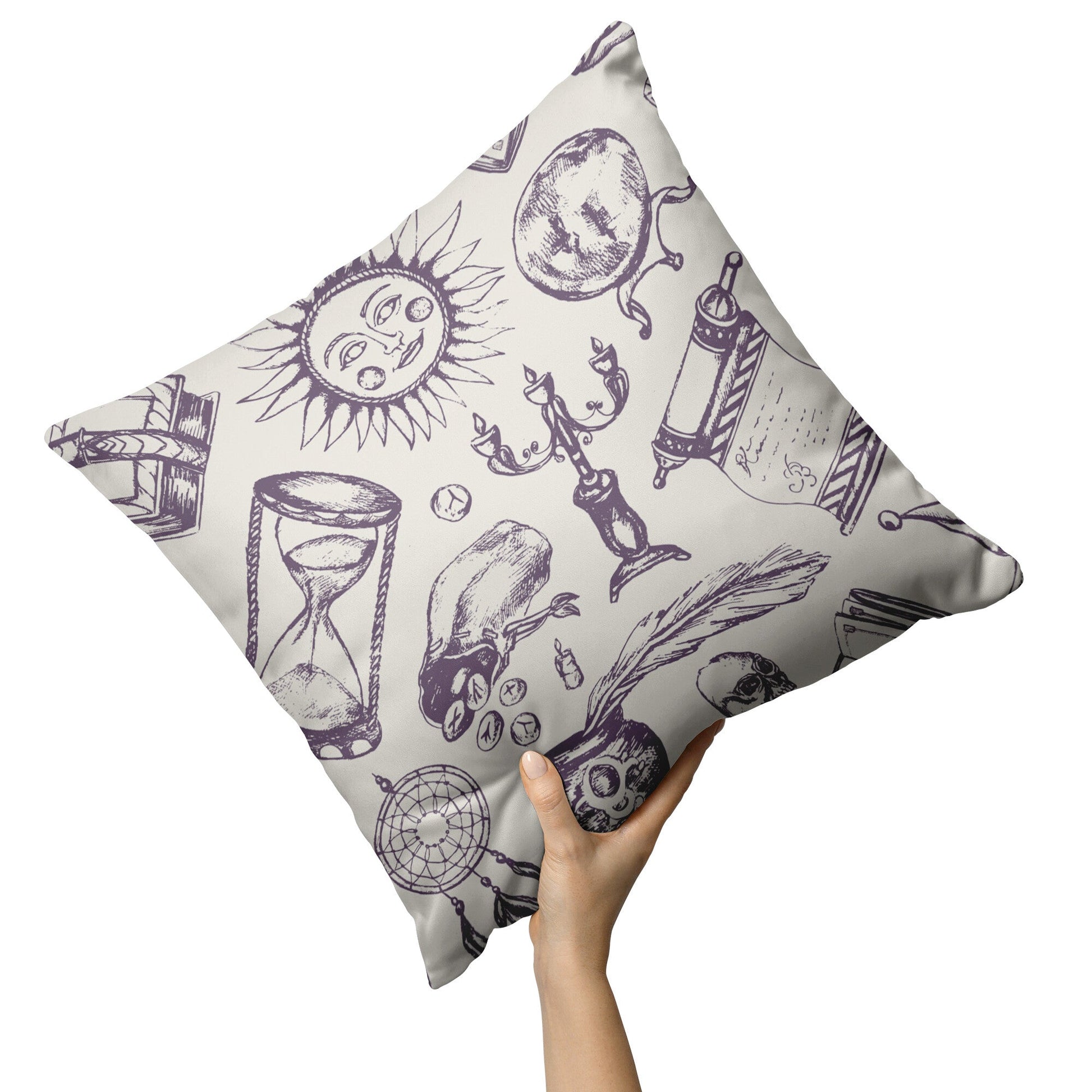 This enchanting pattern in purple against an off white background blends the arcane with the aesthetic, making it perfect for astrology and divination enthusiasts, dark academia decor, and whimsical goth or witch decor lovers. Crafted with quality materials, this pillow is both durable and comfortable, adding a touch of everyday magic and timeless charm to any space.