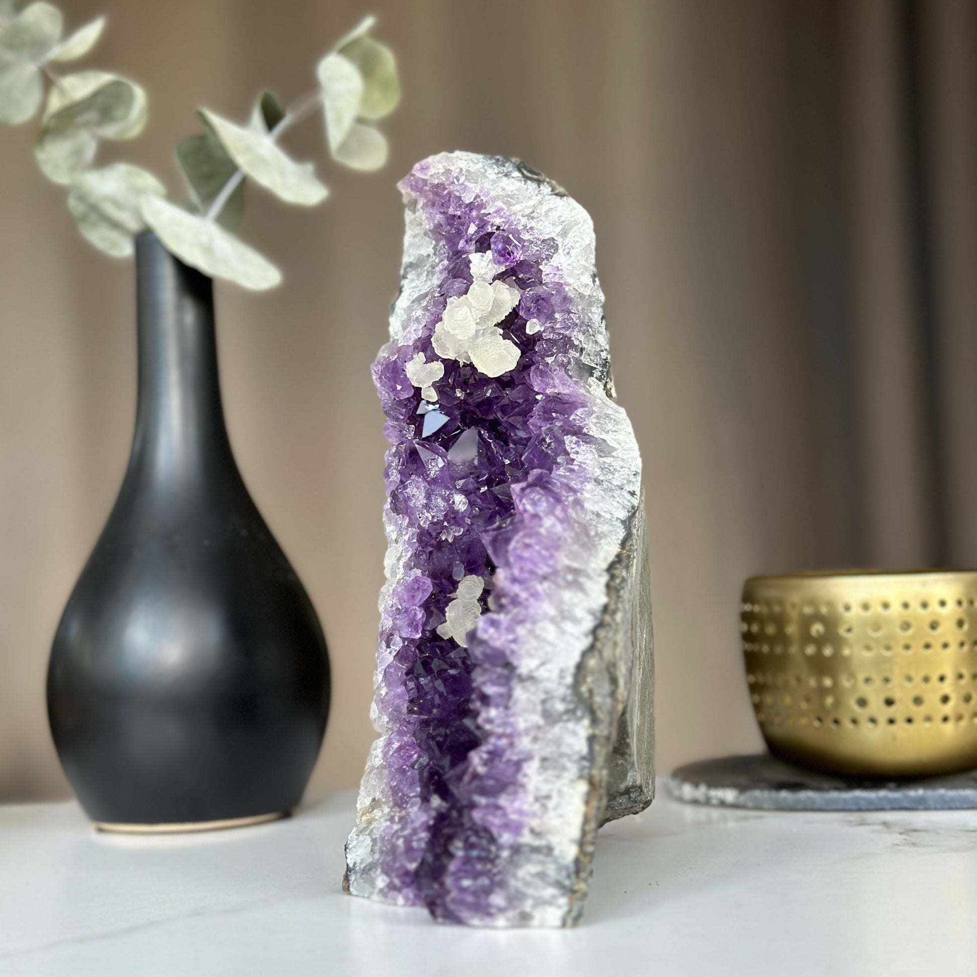 Galaxy amethyst geode, huge crystal decor (8 inches tall), Deep Purple natural amethyst