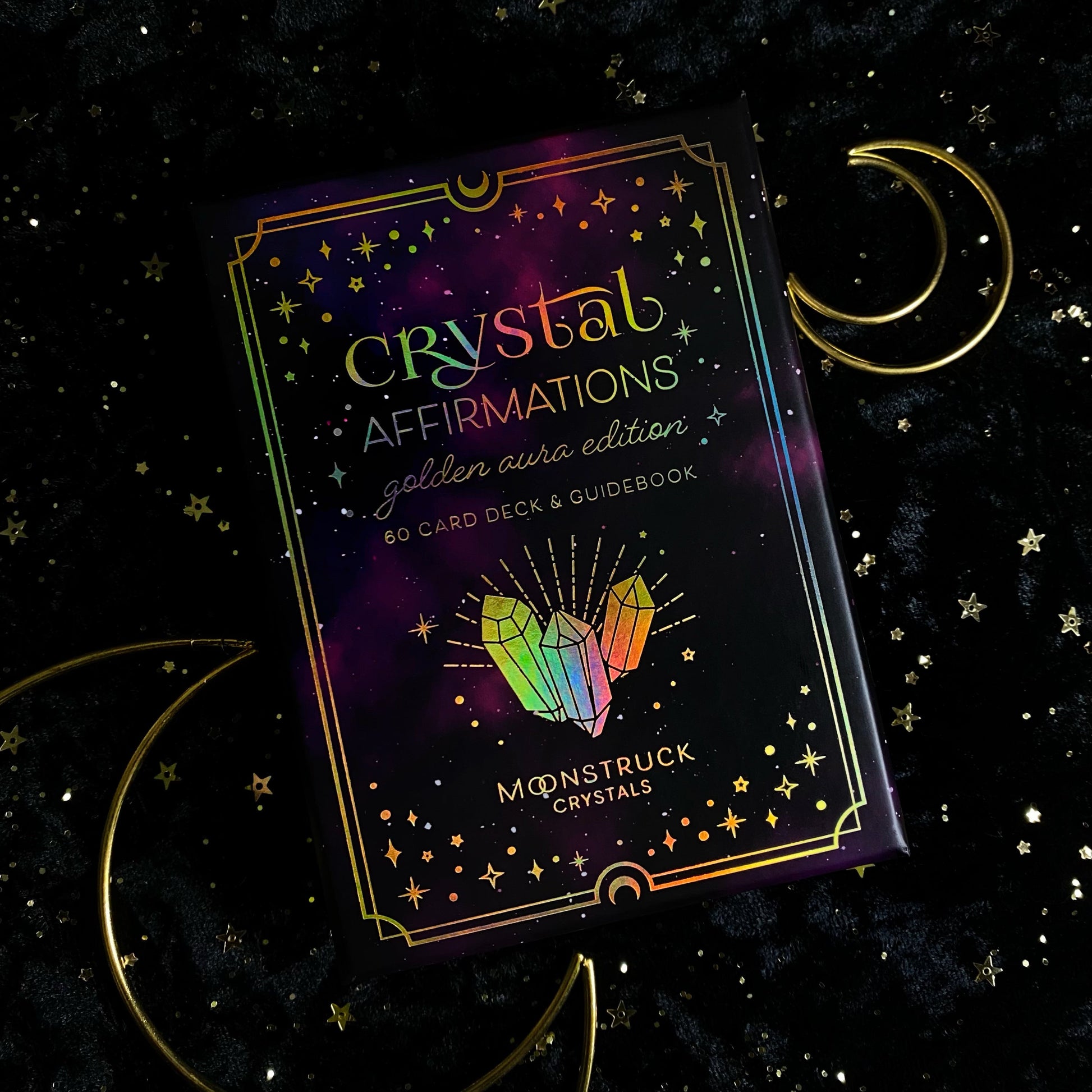 includes set of 60 crystal affirmation cards in a box + crystal properties booklet.