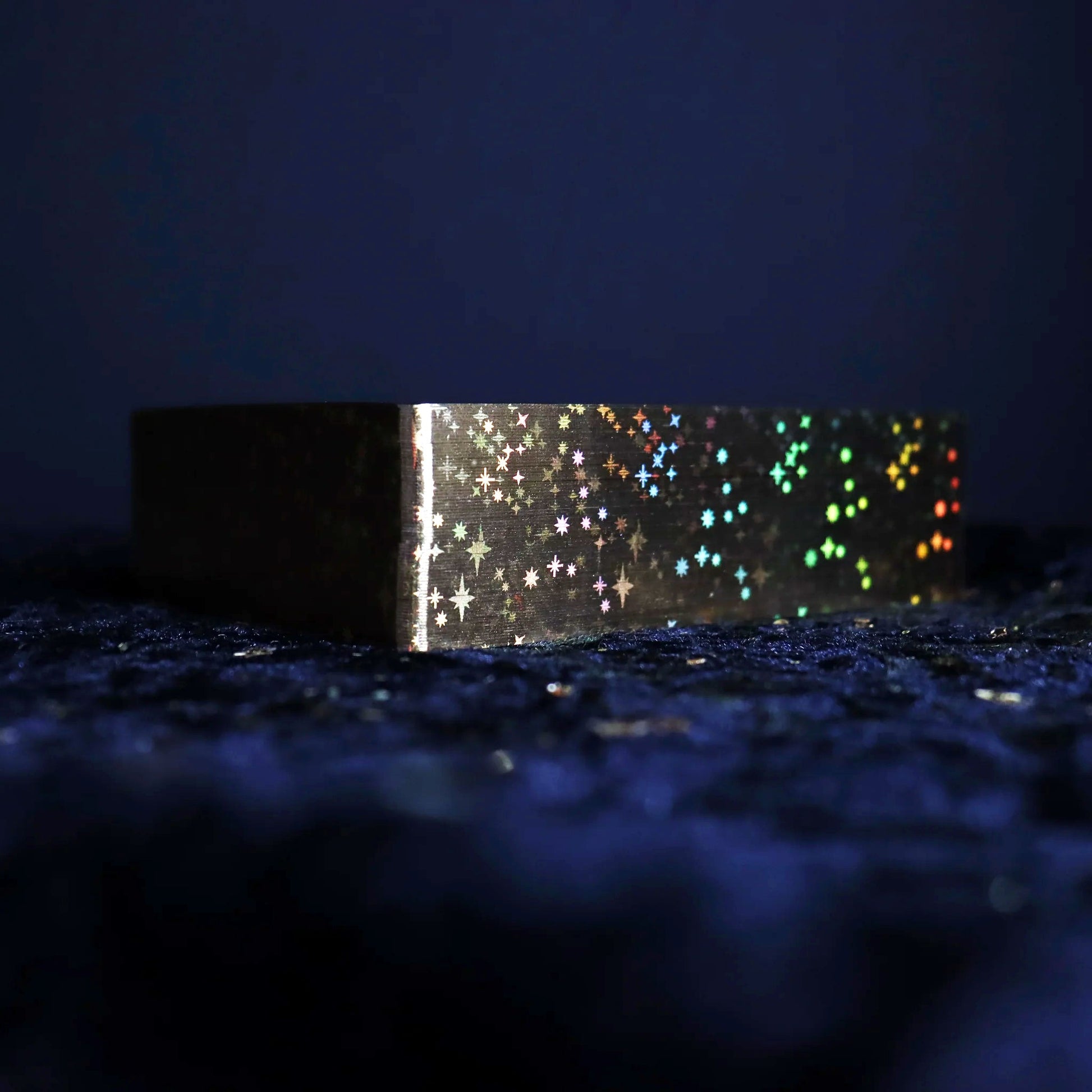 cards are matte finish with gold holographic rainbow foil print on both sides and a starry gold holographic rainbow edge*