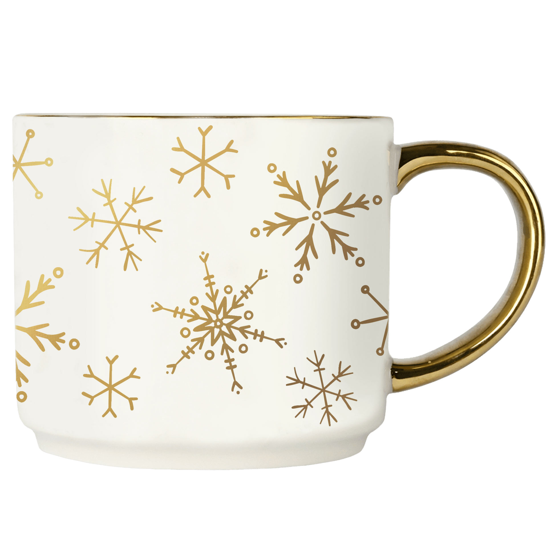 Gold Snowflakes 14oz. Gold Handle Coffee Mug