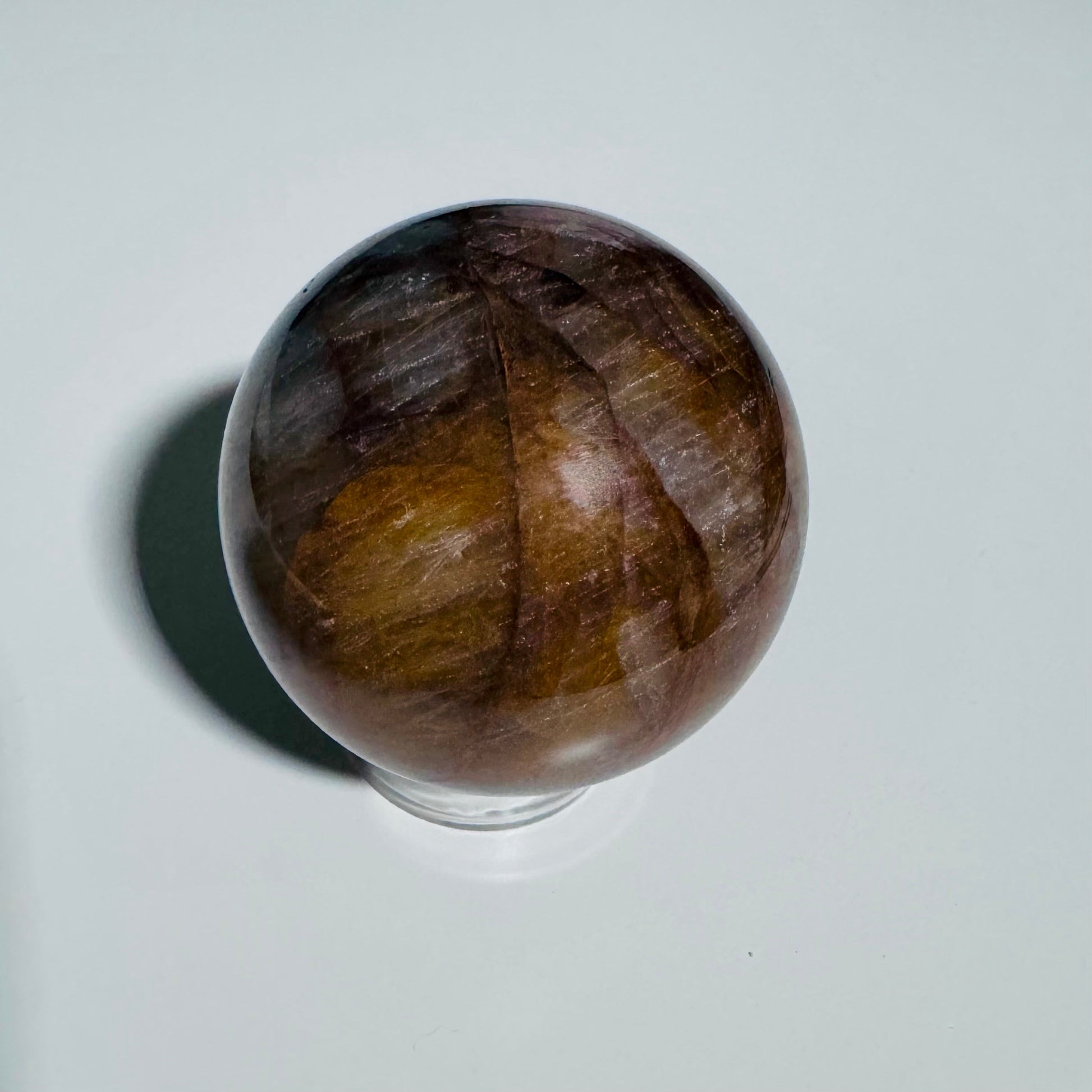 Golden Healer quartz sphere, known as a powerful emotional healer. This crystal soothes negative thoughts, amplifies positive energy and intention, and supports spiritual growth for overall emotional well-being.