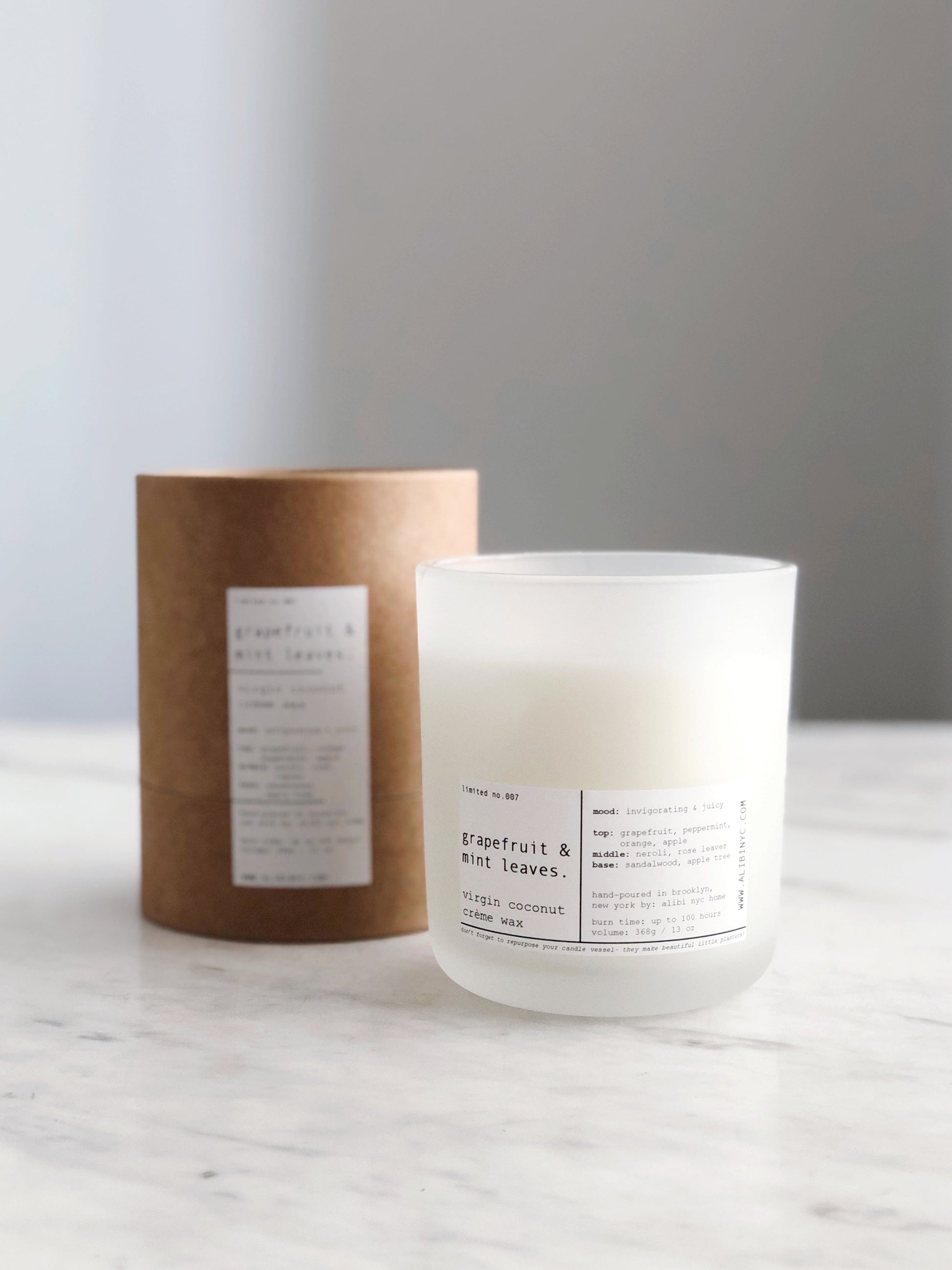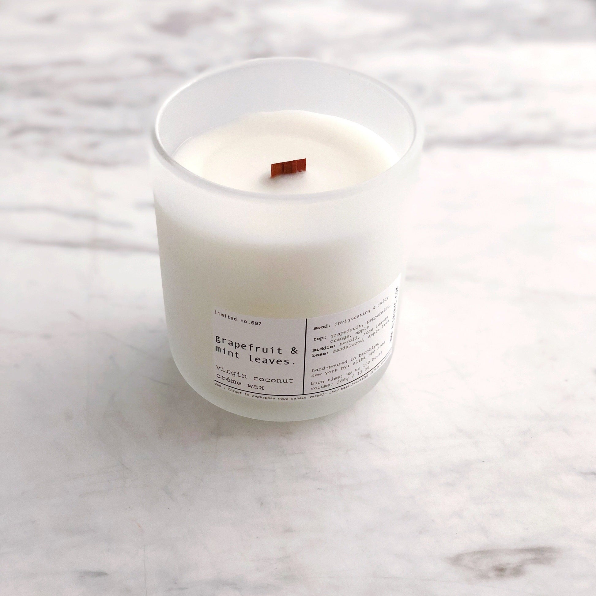 GRAPEFRUIT & MINT LEAVES | VIRGIN COCONUT CRÈME WAX & WOODEN WICK CANDLE