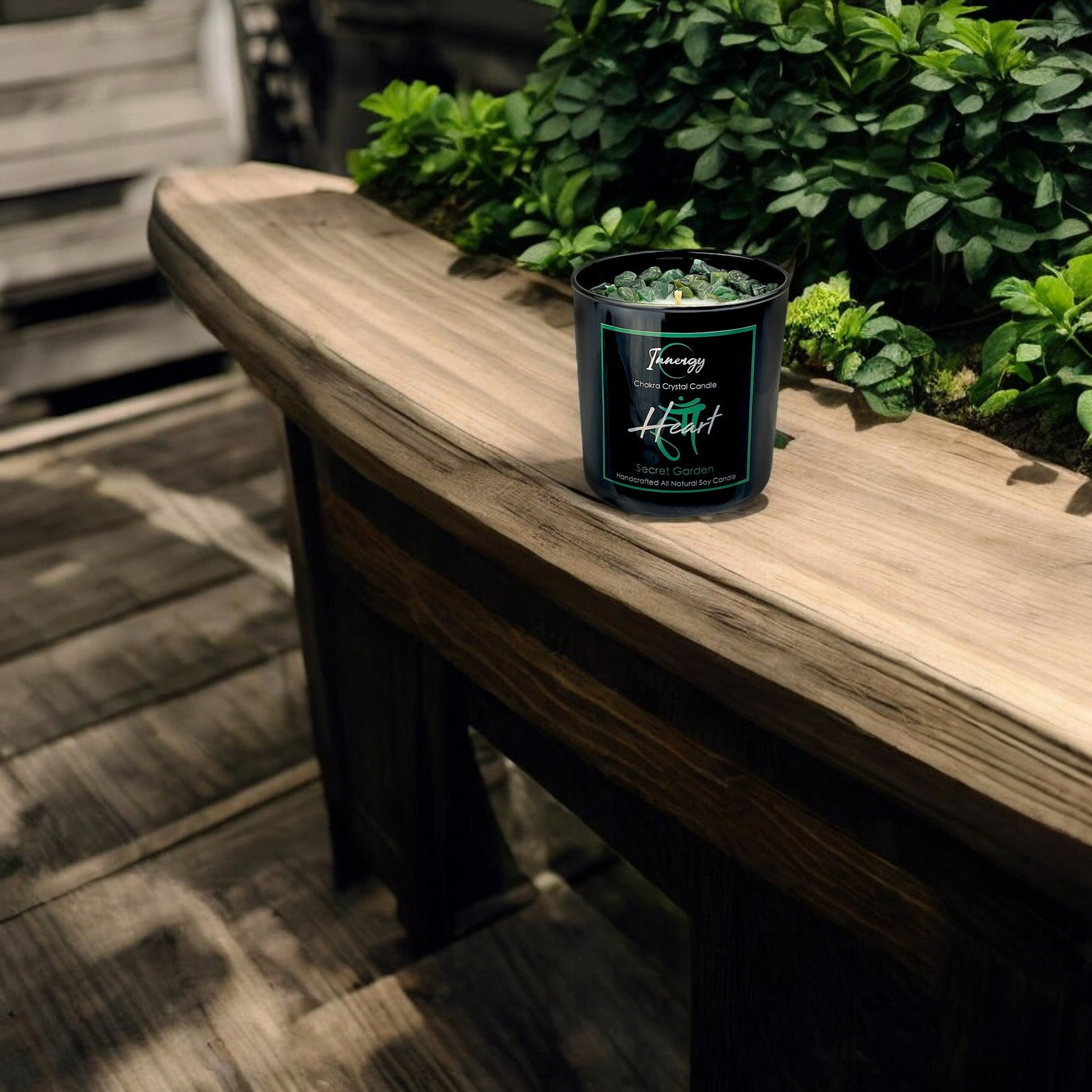 Nurture your heart and soothe your senses with the Heart Chakra Crystal Candle by Innergy. Immerse yourself in our "Secret Garden" scent, an enchanting fusion of aromatic herbs, warm amber, and delicate florals. This mesmerizing blend is perfectly attuned to the Heart Chakra, fostering an environment of love, compassion, and emotional well-being.