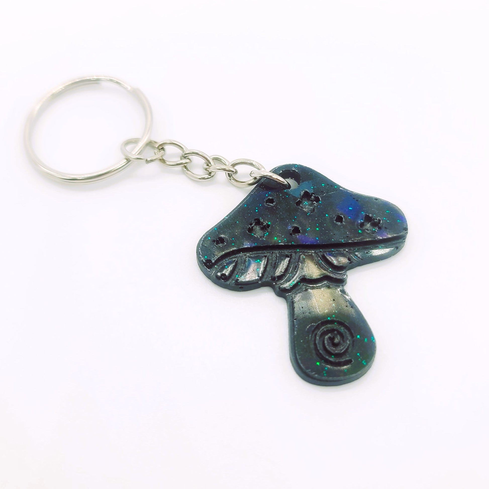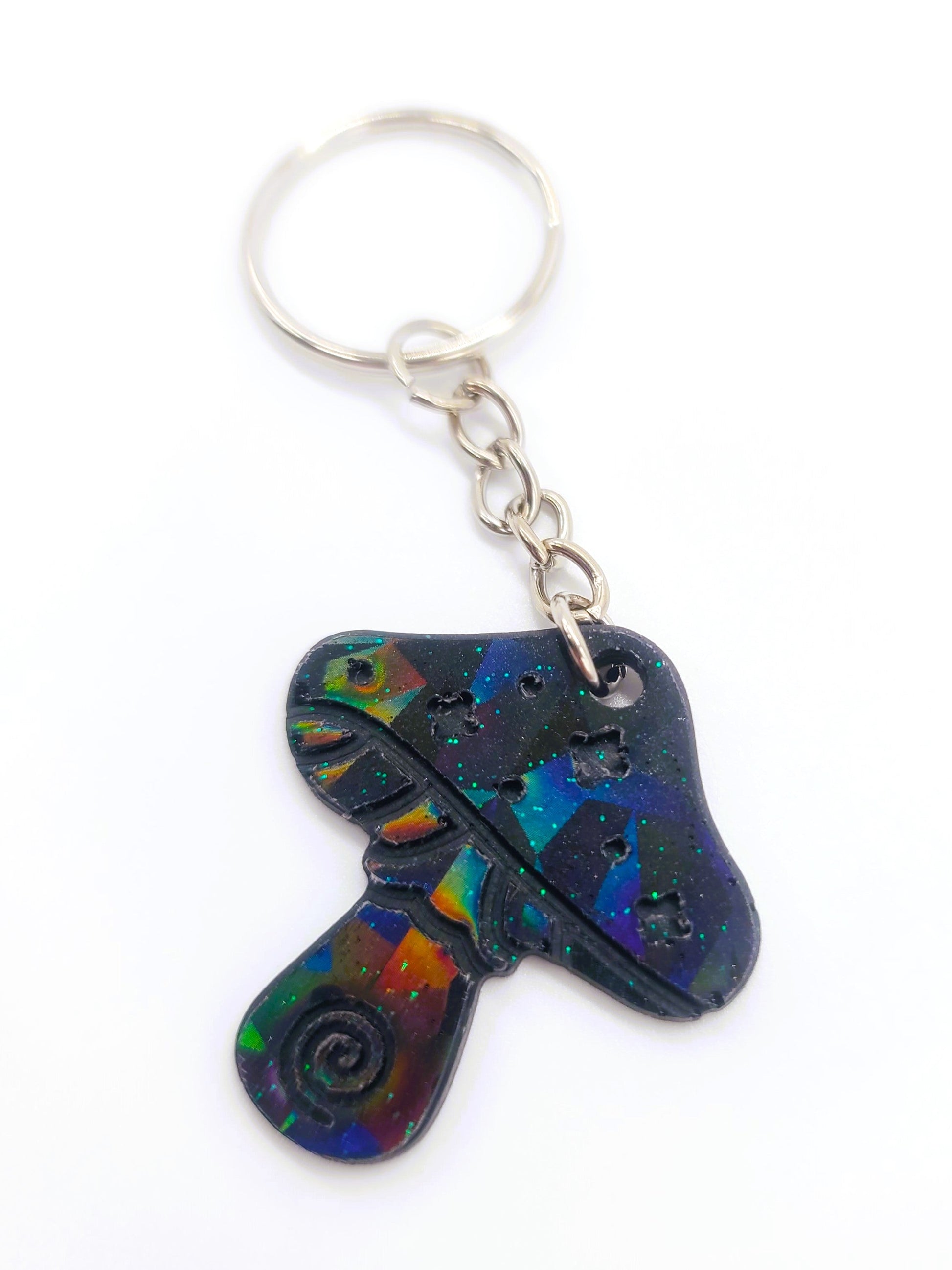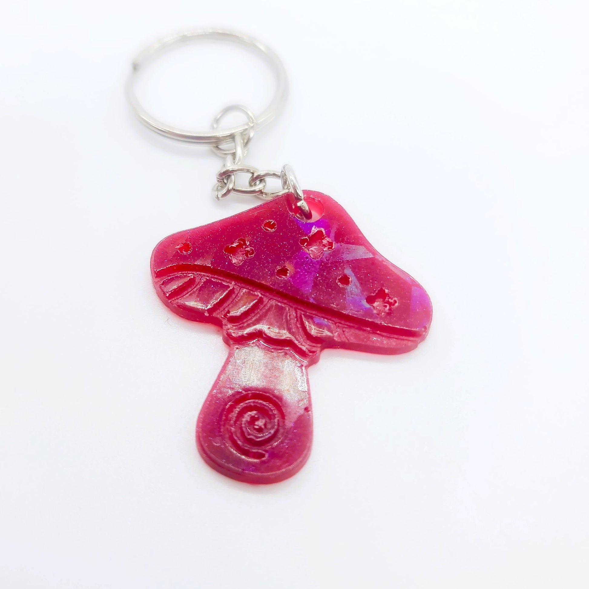 Holographic Mushroom Shaped Key Chain - Made with Eco-Friendly Resin.