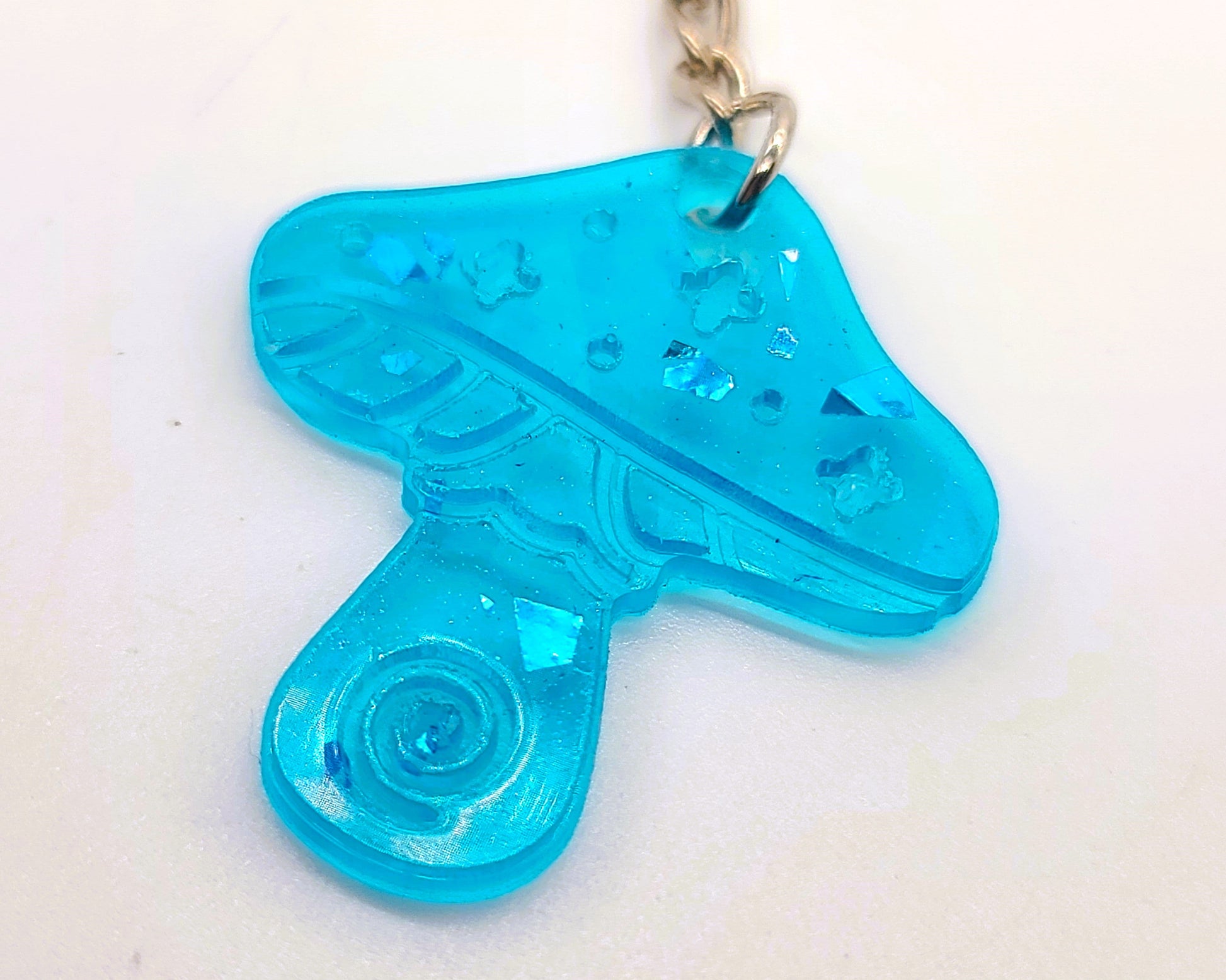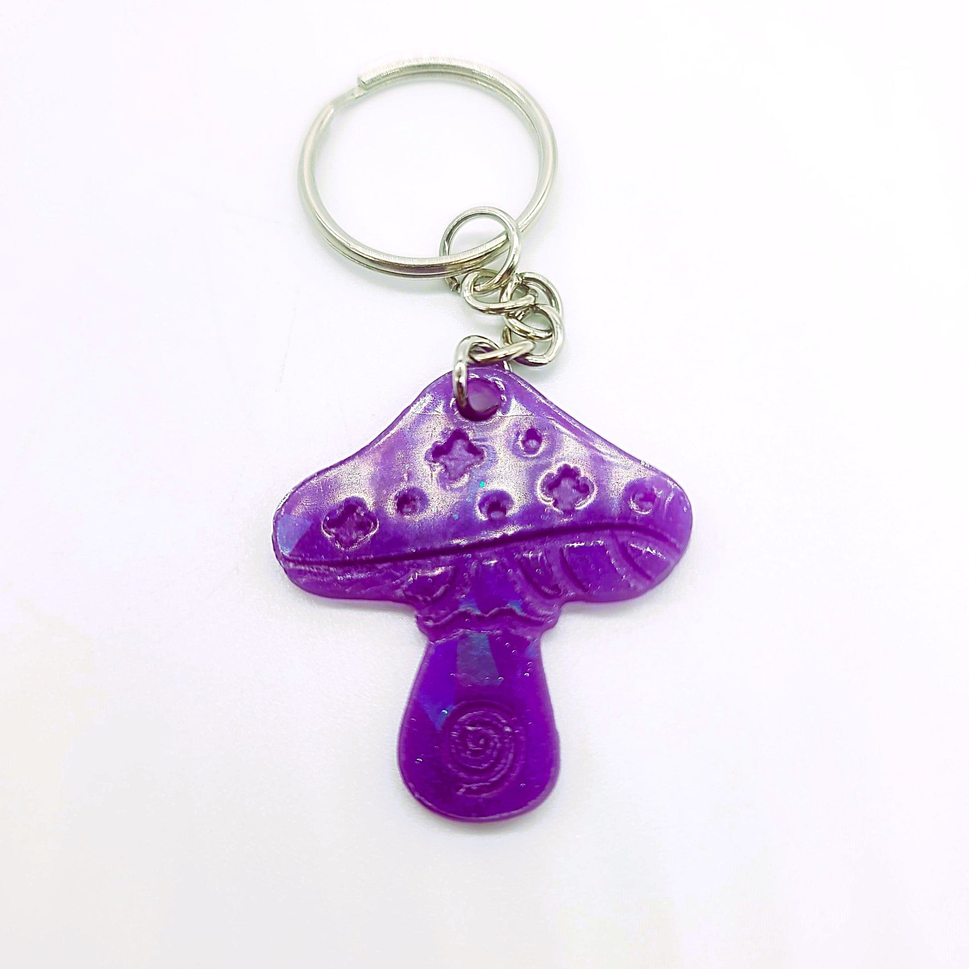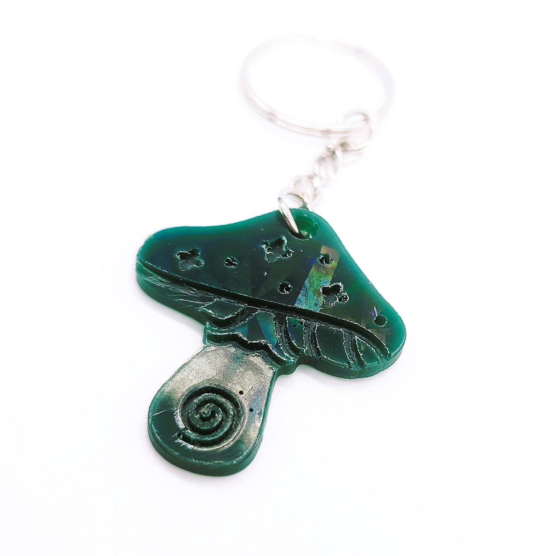 Holographic Mushroom Shaped Key Chain - Made with Eco-Friendly Resin.