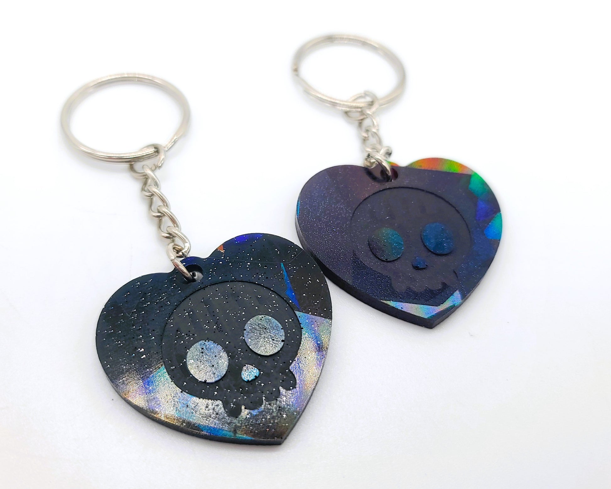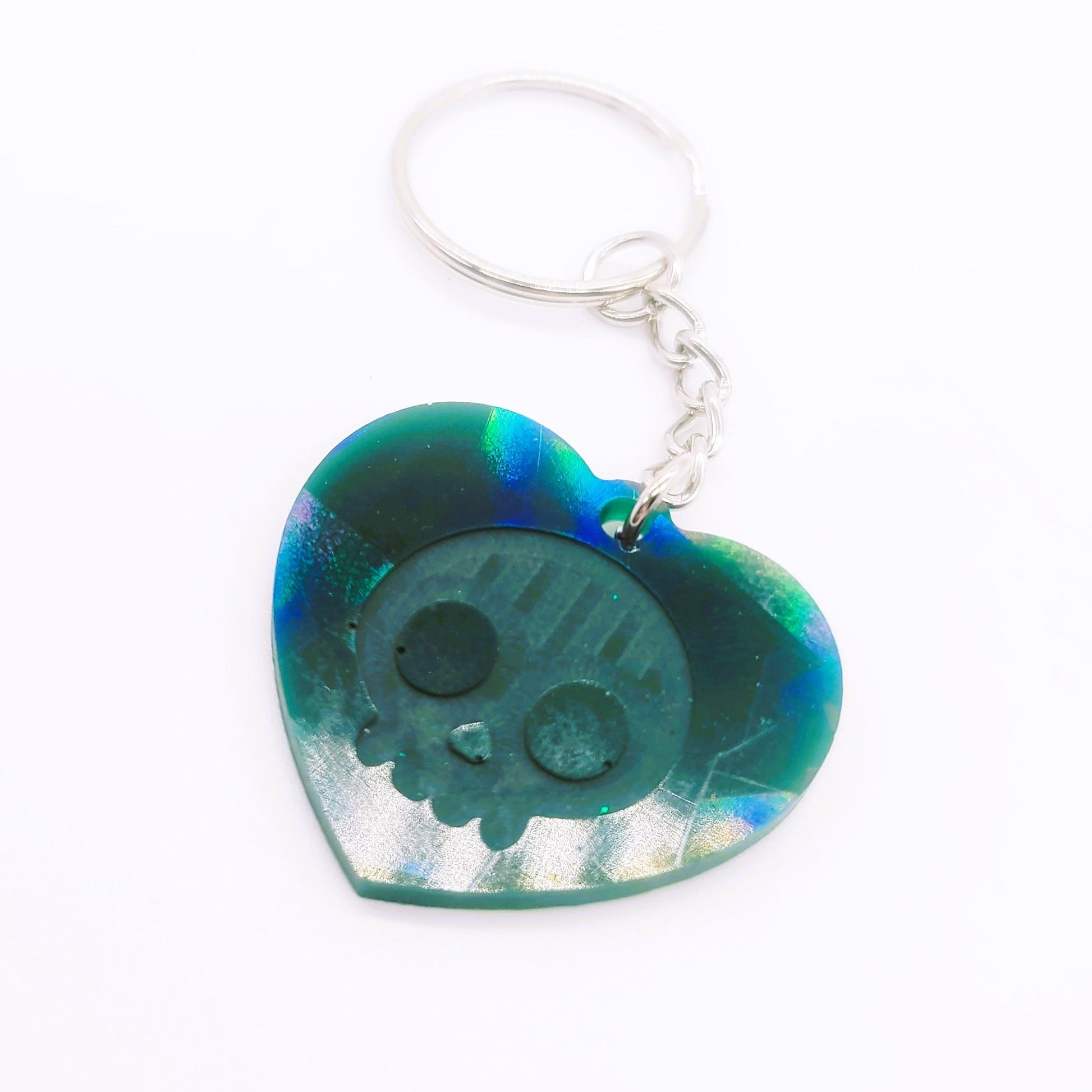 Holographic Skull Heart Key Chain - Made with Eco-Friendly Resin.