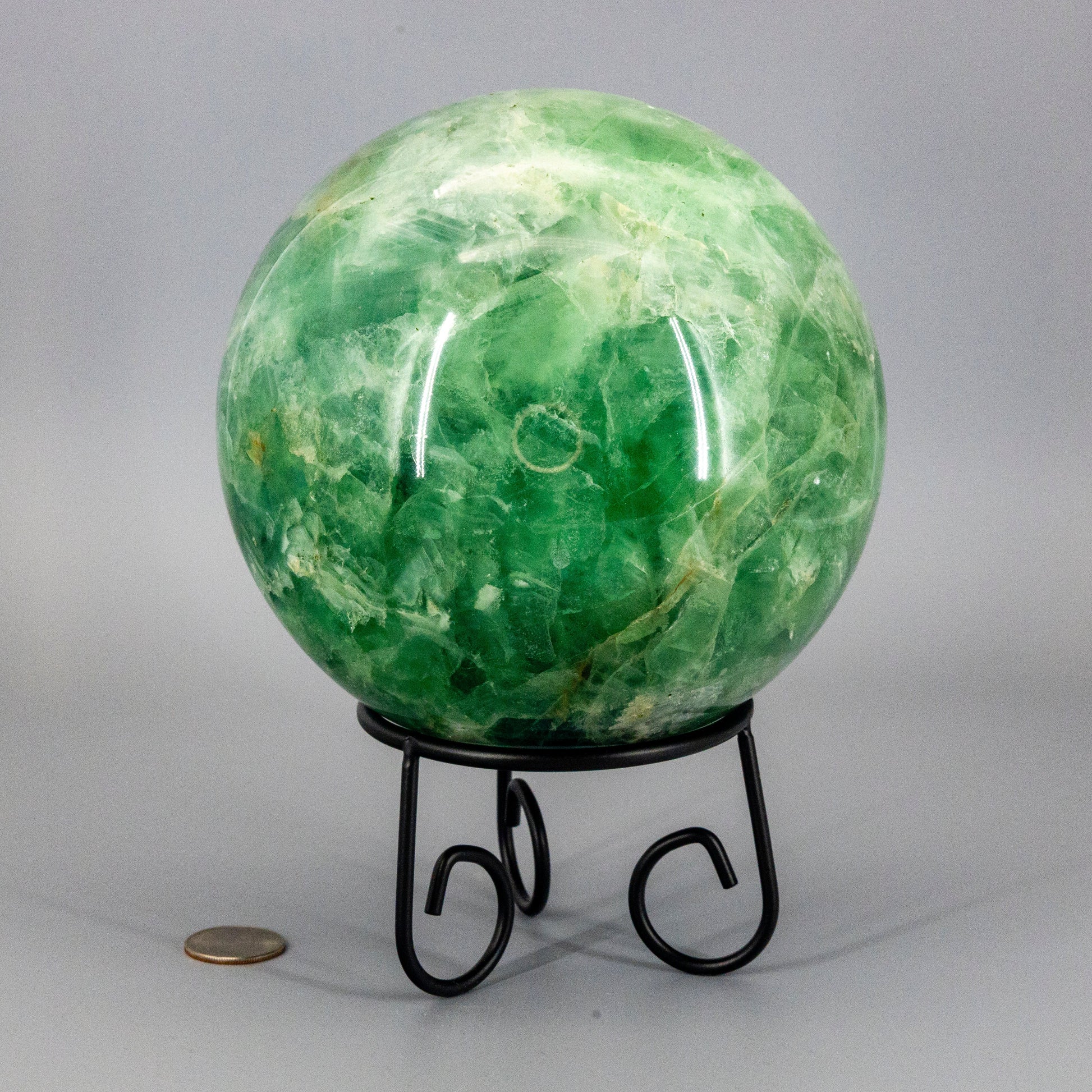 Huge Green Fluorite "Canon Ball" Sphere w/t Stand 153mm
