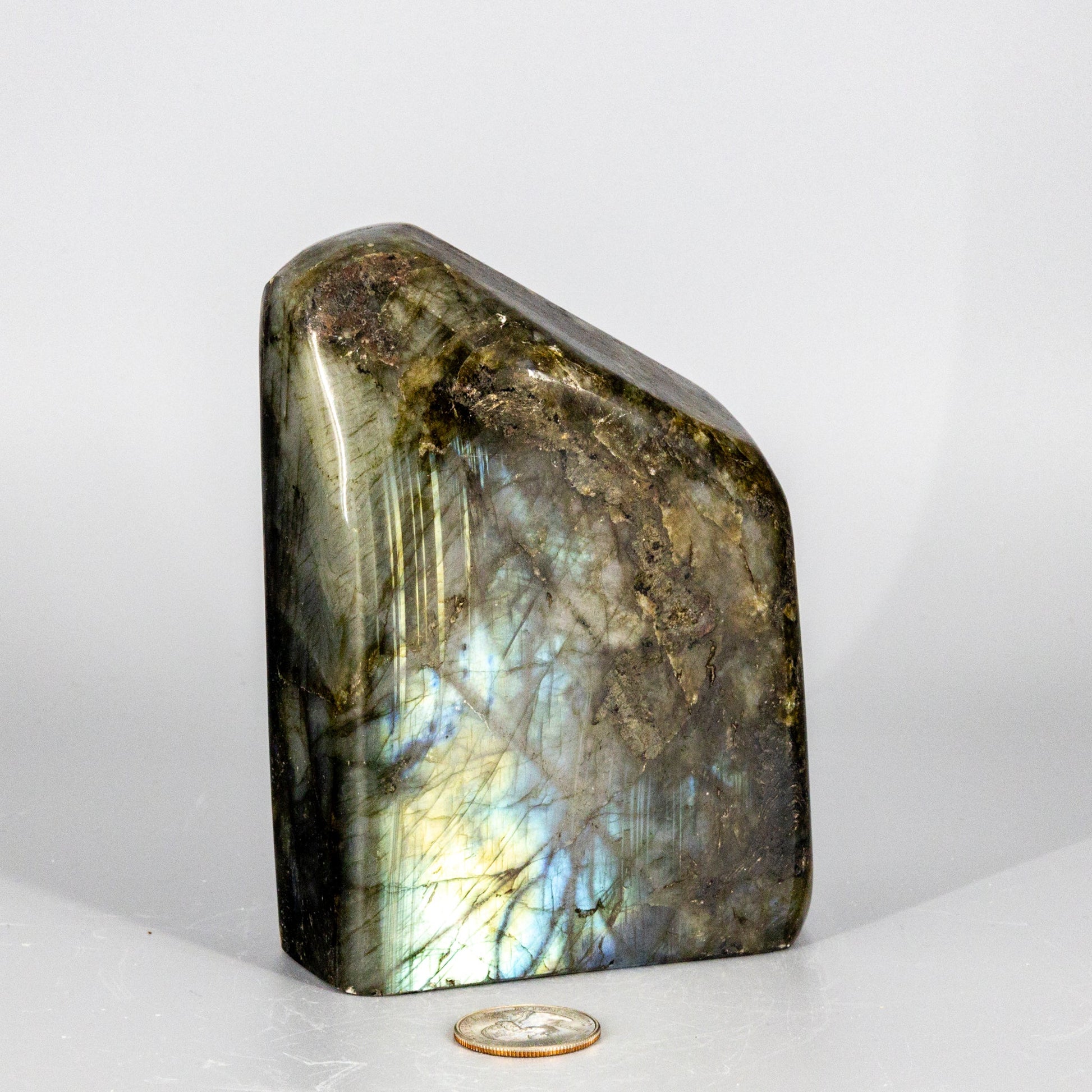 Labradorite "XL" Freestanding Freeform showcases the stone’s dynamic play of colors on a large, naturally shaped surface, ideal for both display and energy work. Its substantial size emphasizes the crystal’s iridescence, making it a striking centerpiece that invites introspection and enhances intuitive clarity. Perfect for collectors or practitioners seeking an impressive specimen that combines natural beauty with metaphysical benefits.