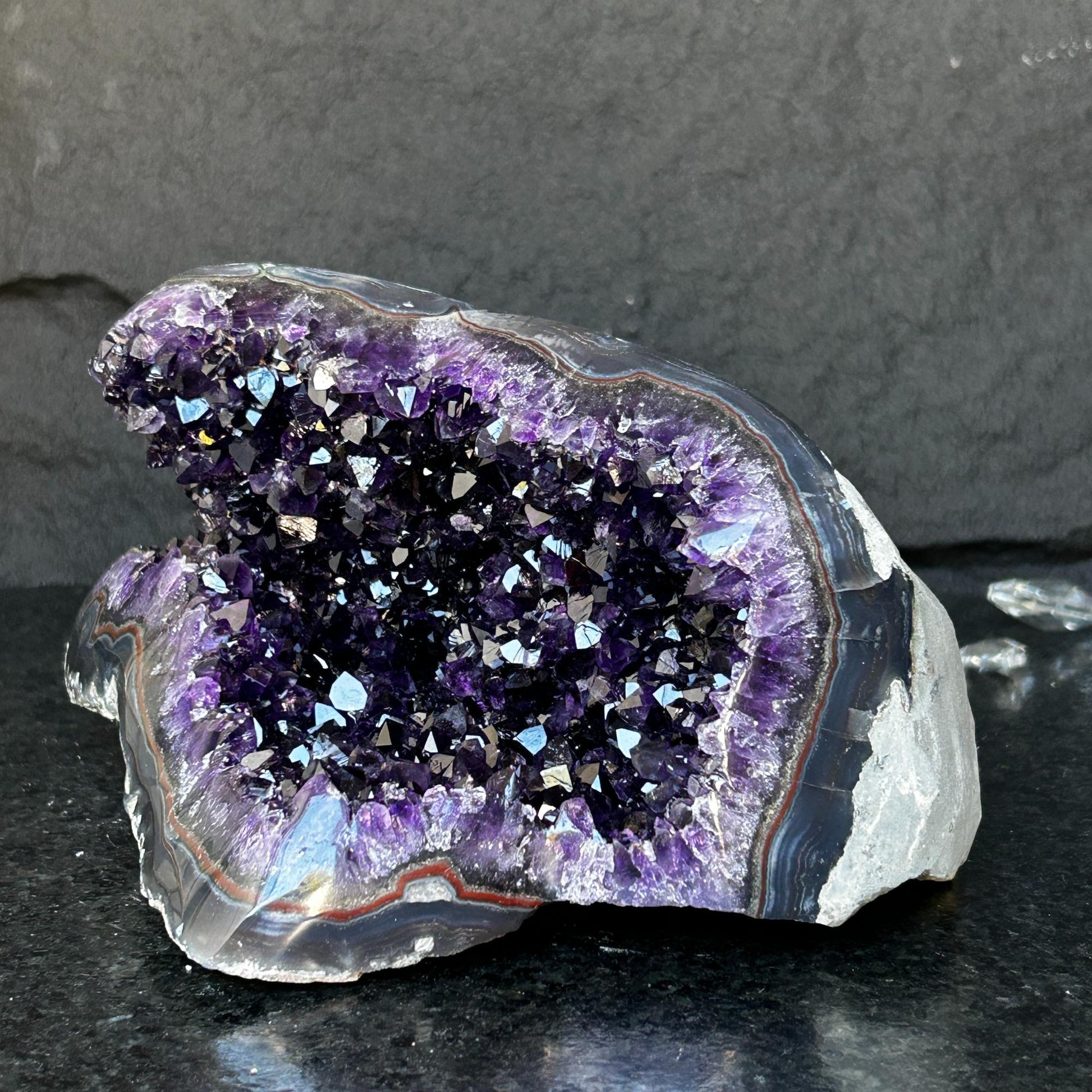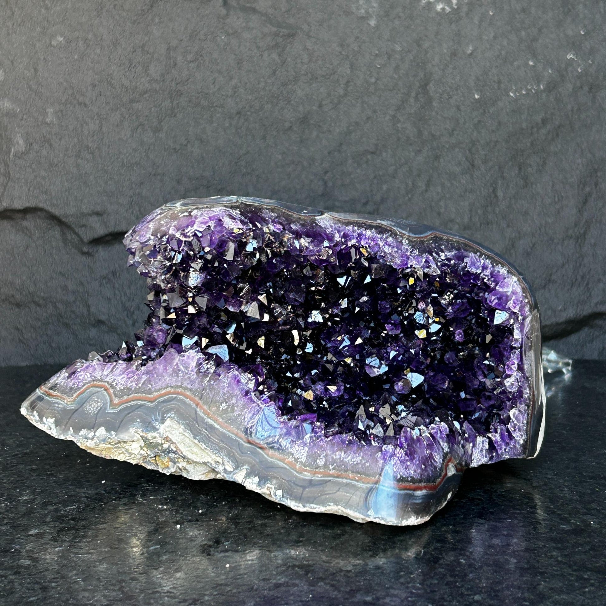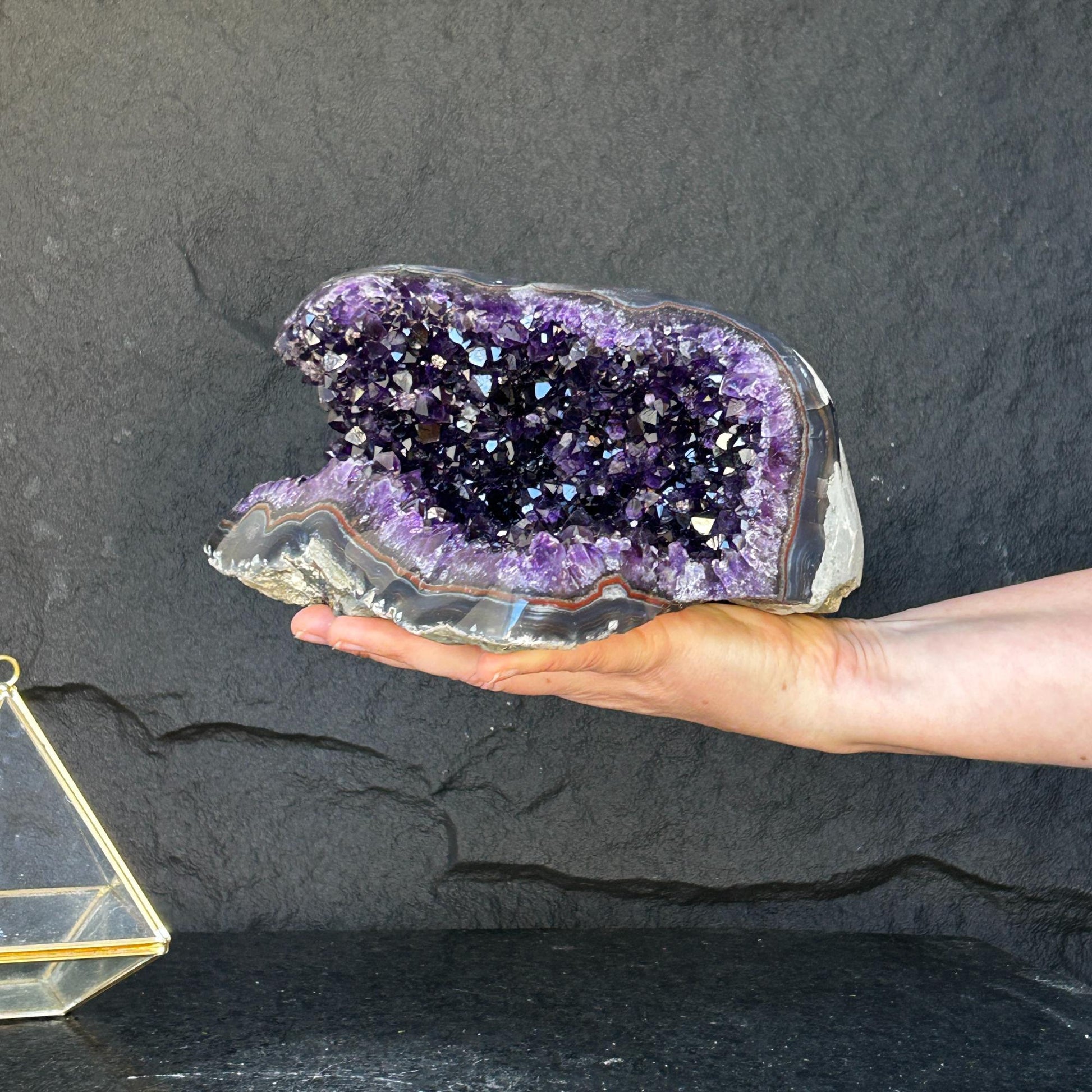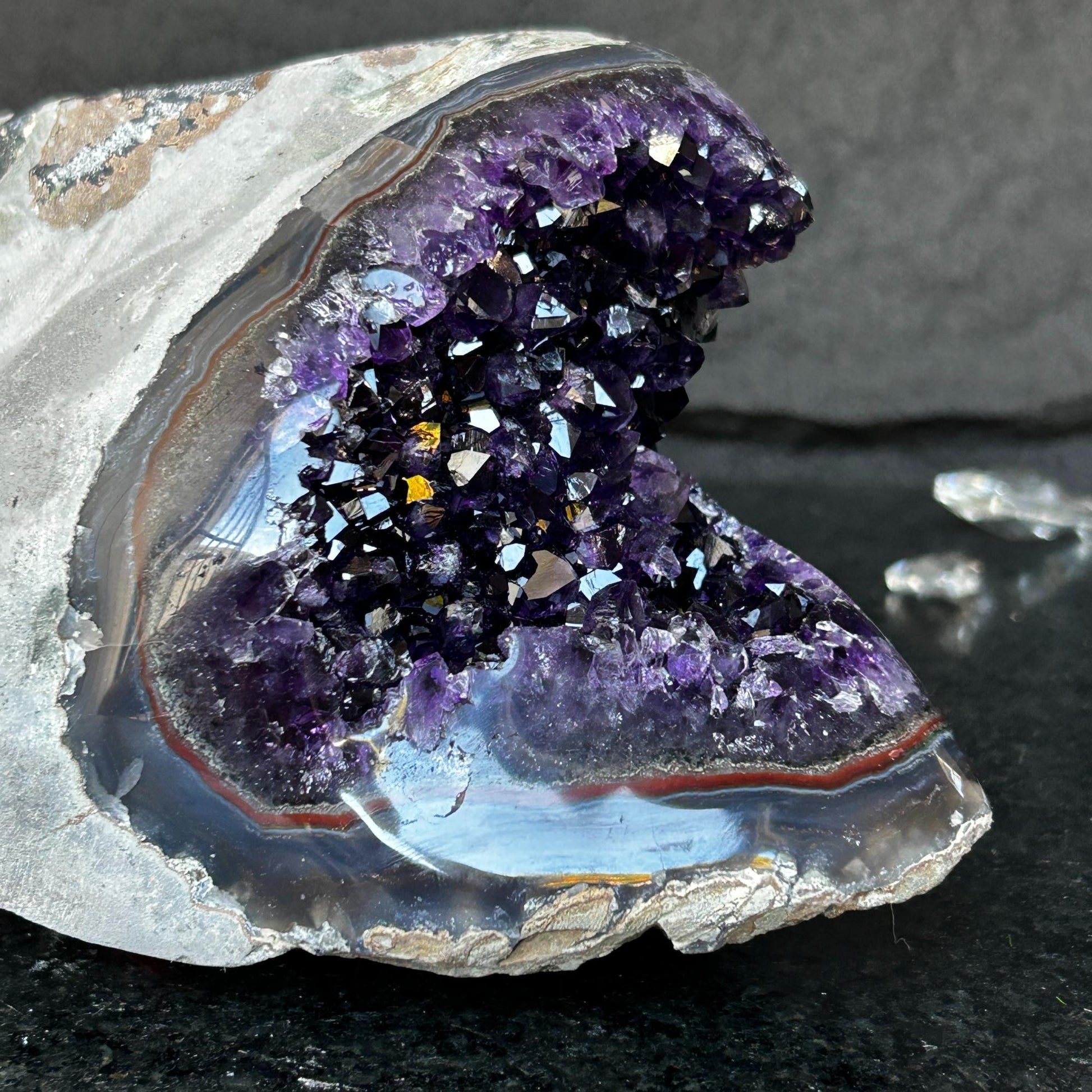 Deep Amethyst Geode Cave with Agate edges, 8+ lbs!!