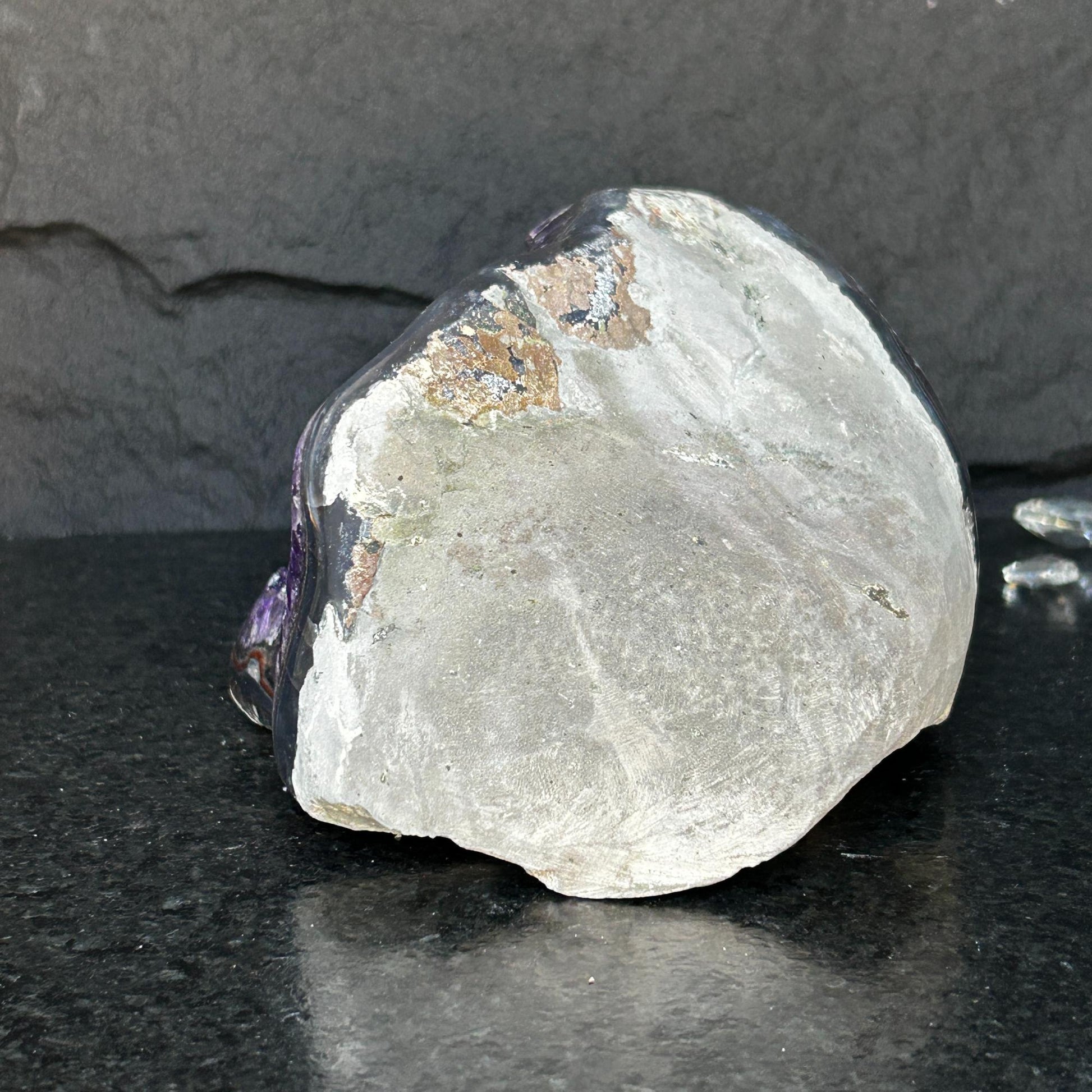 Its vibrant color is characteristic of the geodes extracted from URUGUAY, one of the few places in the world where you can find them. It was extracted respecting the strict standards of open-pit mining in our country that ensure the safe work.