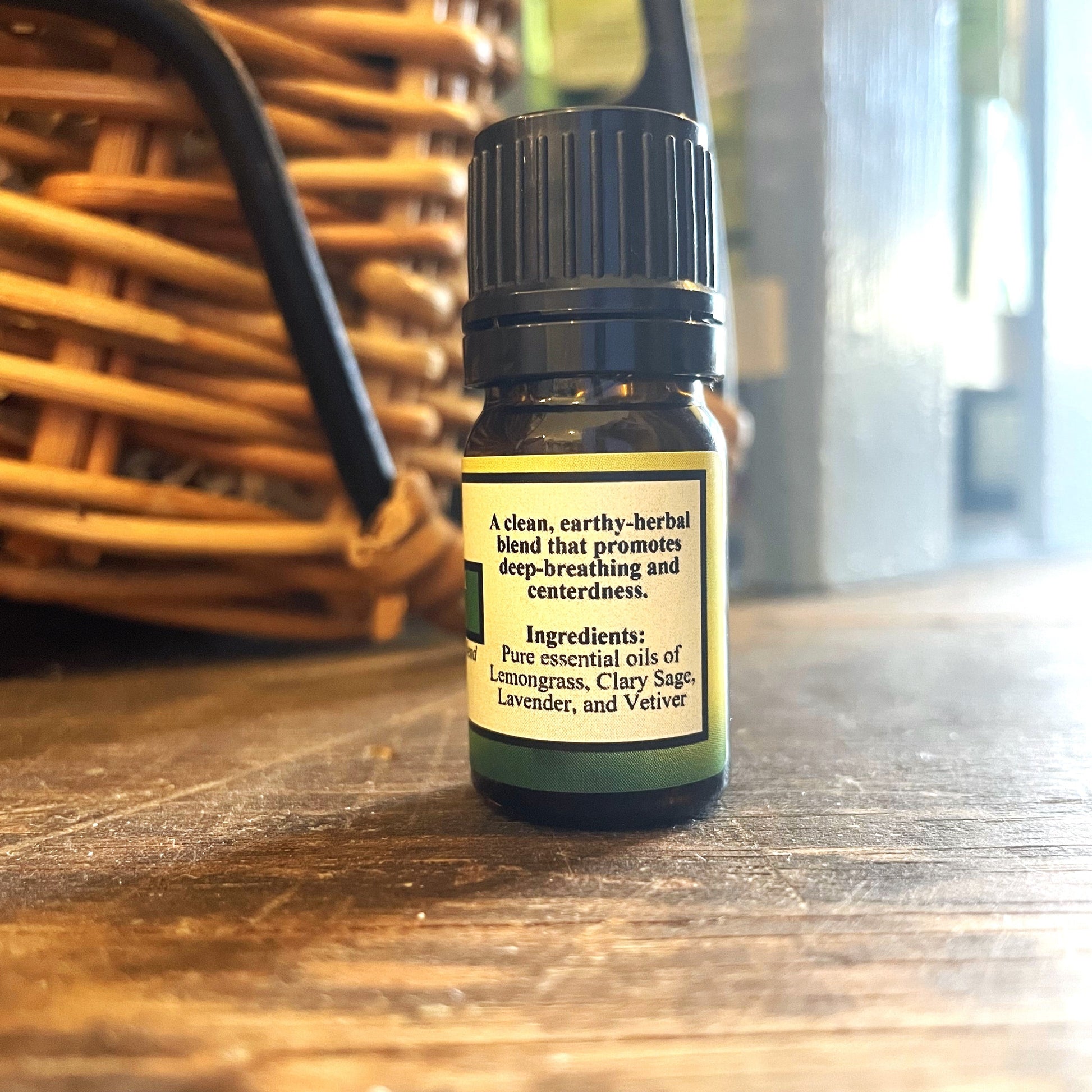 Lemongrass & Sage Essential Oil Blend has key notes of lemongrass, sage, and lavender for a clean, earthy-herbal scent that promotes deep breathing and centeredness.