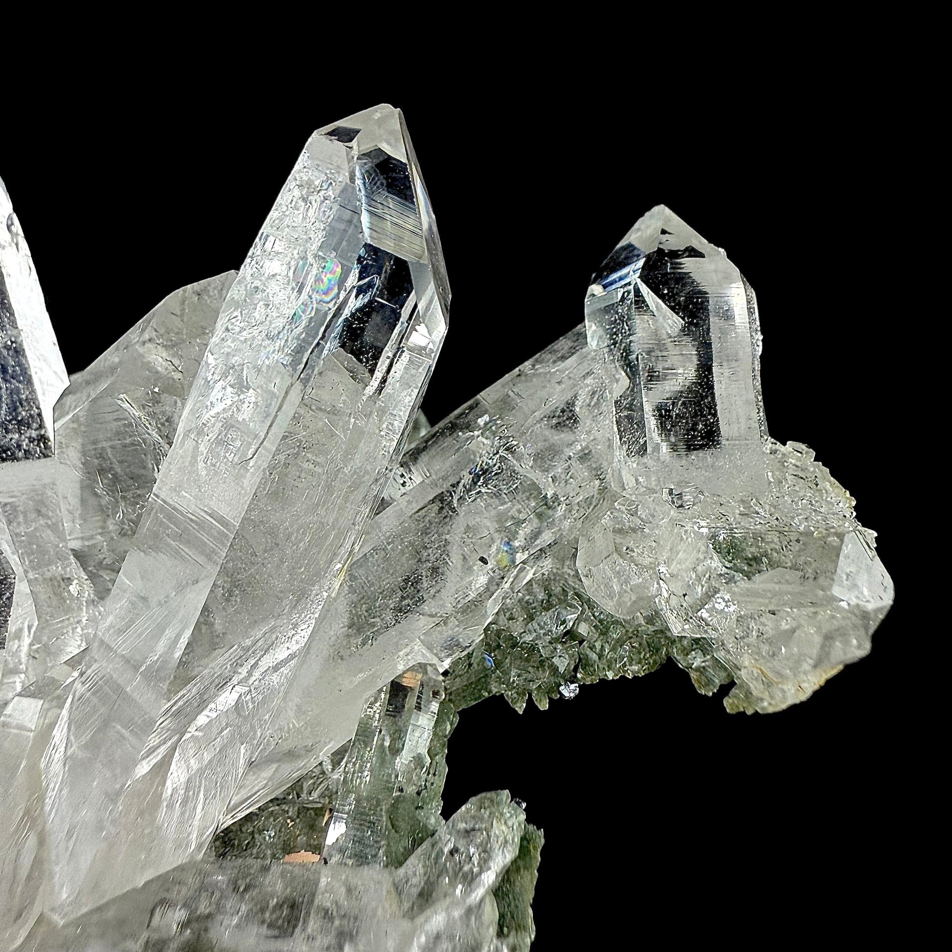 Clear Lemurian Quartz on a green Chlorite base matrix.