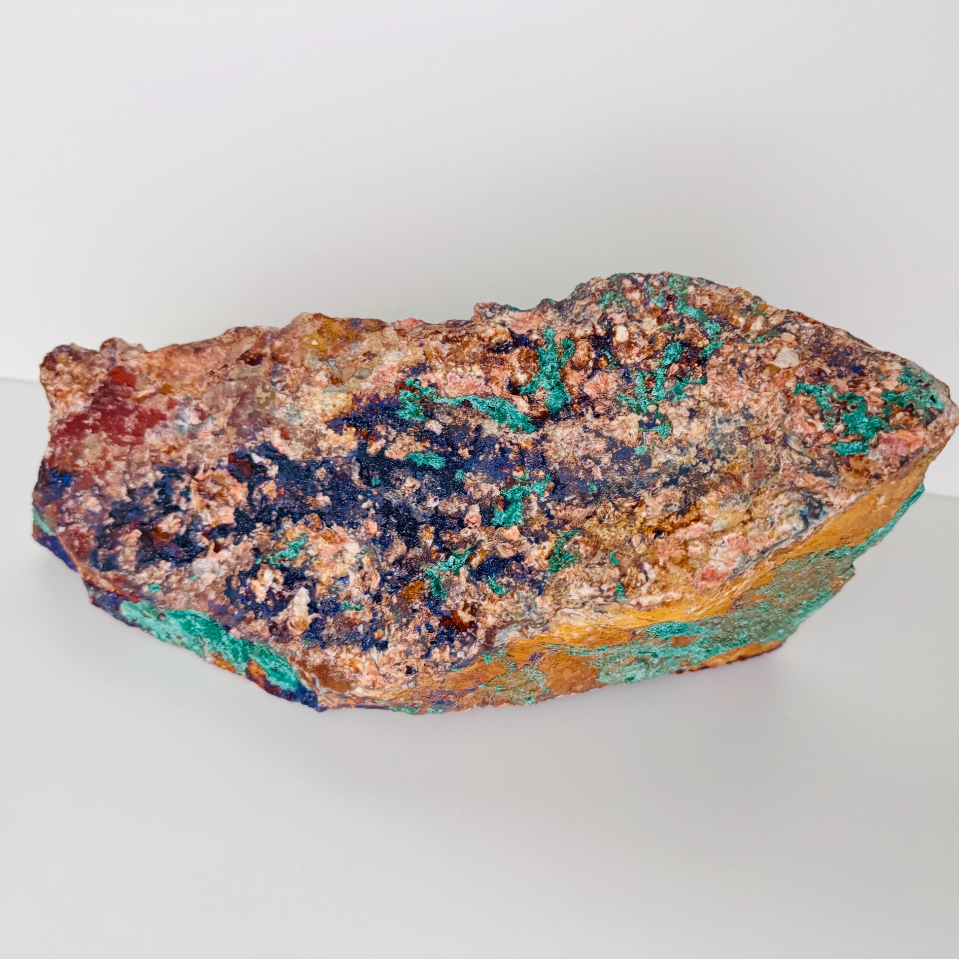 These are rough, unpolished specimens which may include Malachite, Azurite, Quartz and Dolomite on matrix. Sizes vary, see description.