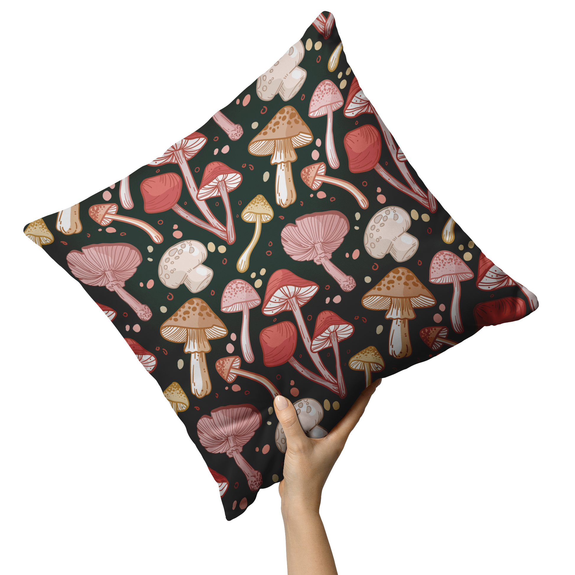 Illuminate your space with our “Many Mushrooms” Throw Pillow, featuring a design of multi-colored mushrooms on a dark forest green background. Crafted from 100% polyester microfiber, the fabric is soft, durable, and wrinkle-resistant. The hidden zipper closure ensures easy insertion and removal of the pillow insert. Perfect for nature lovers and those who appreciate whimsical design, this pillow brings the enchanting beauty of the forest into your home.