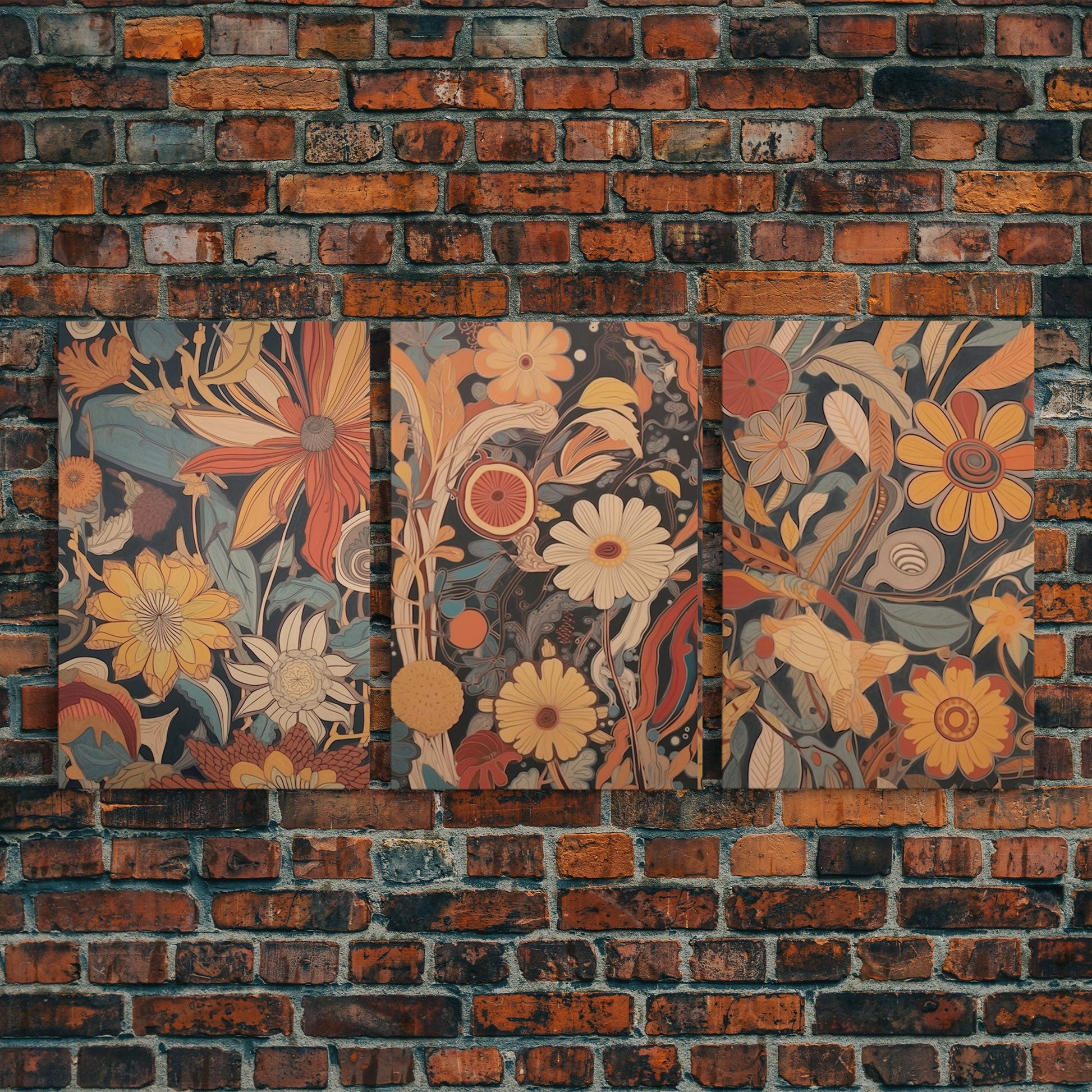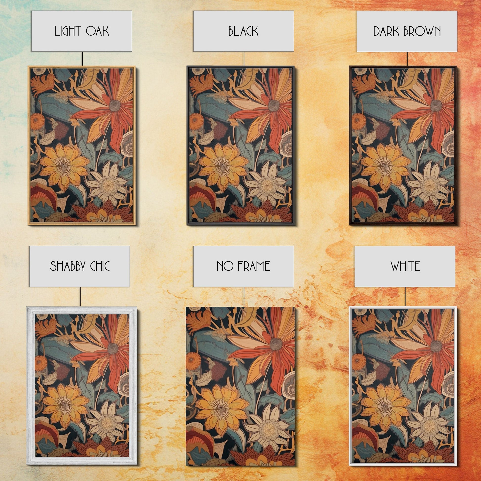 Midcentury Modern Framed Canvas Wall Art Set Flowers Bouquet Floral Botanical Prints Art Boho Wall Decor, Retro Wall Art, Minimalist Decor