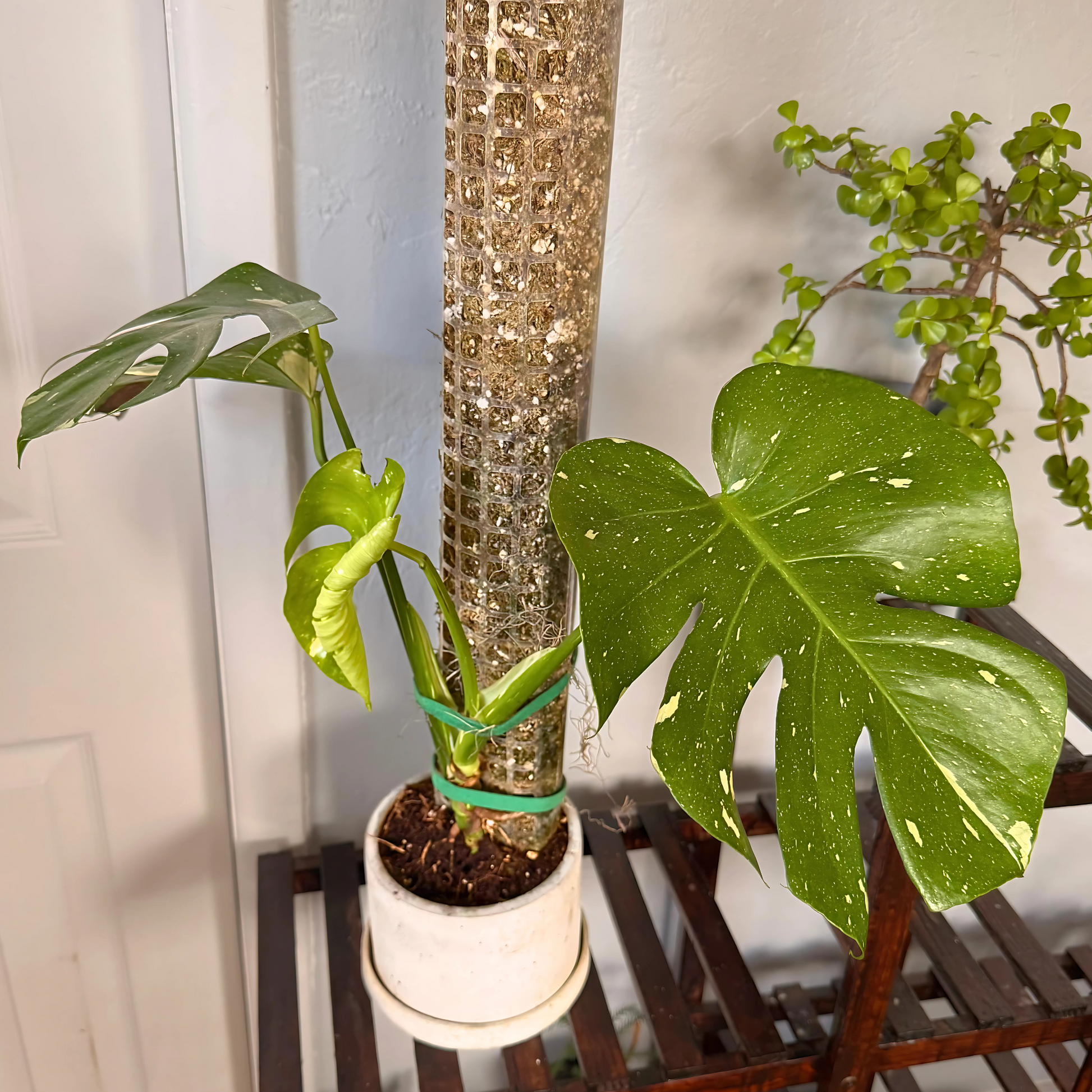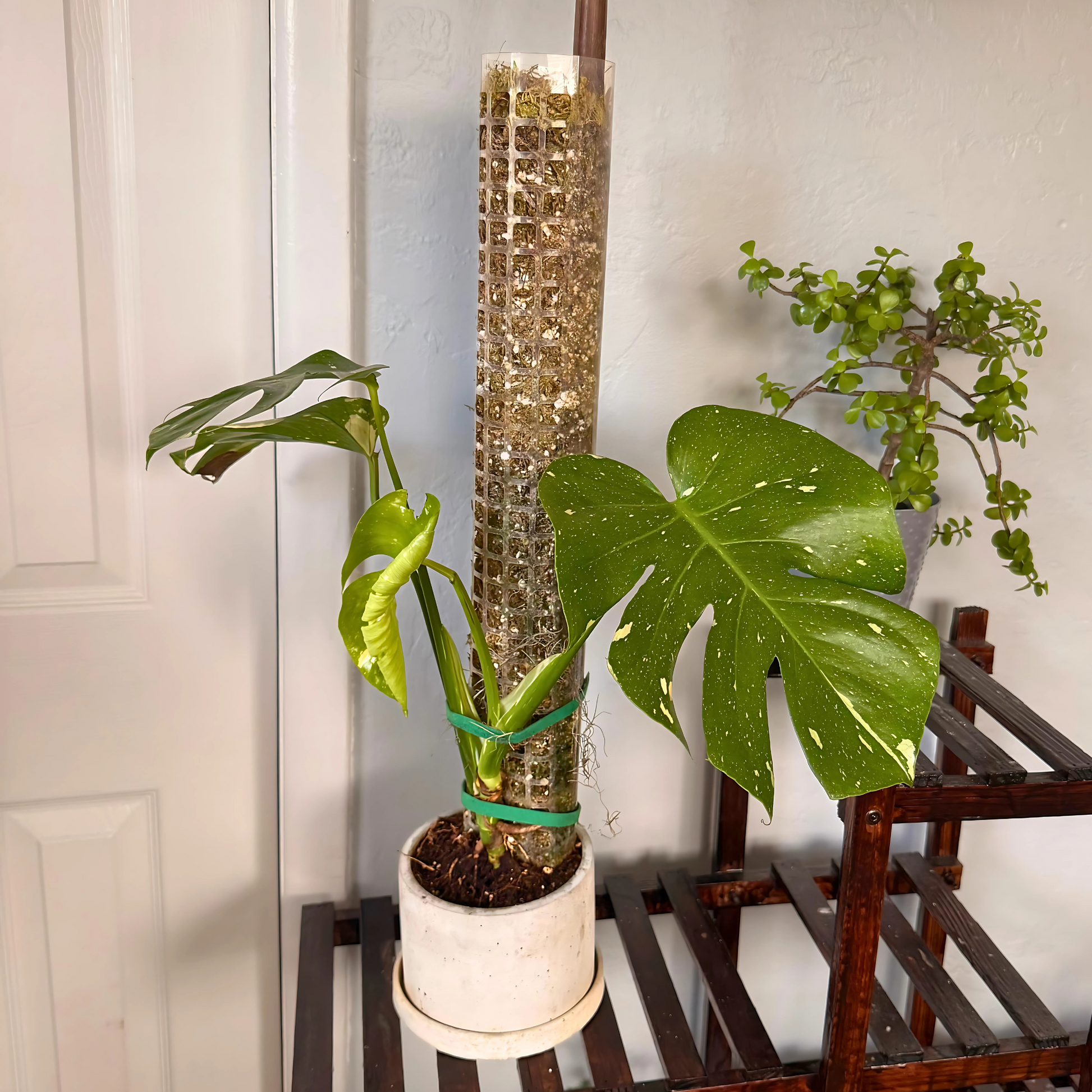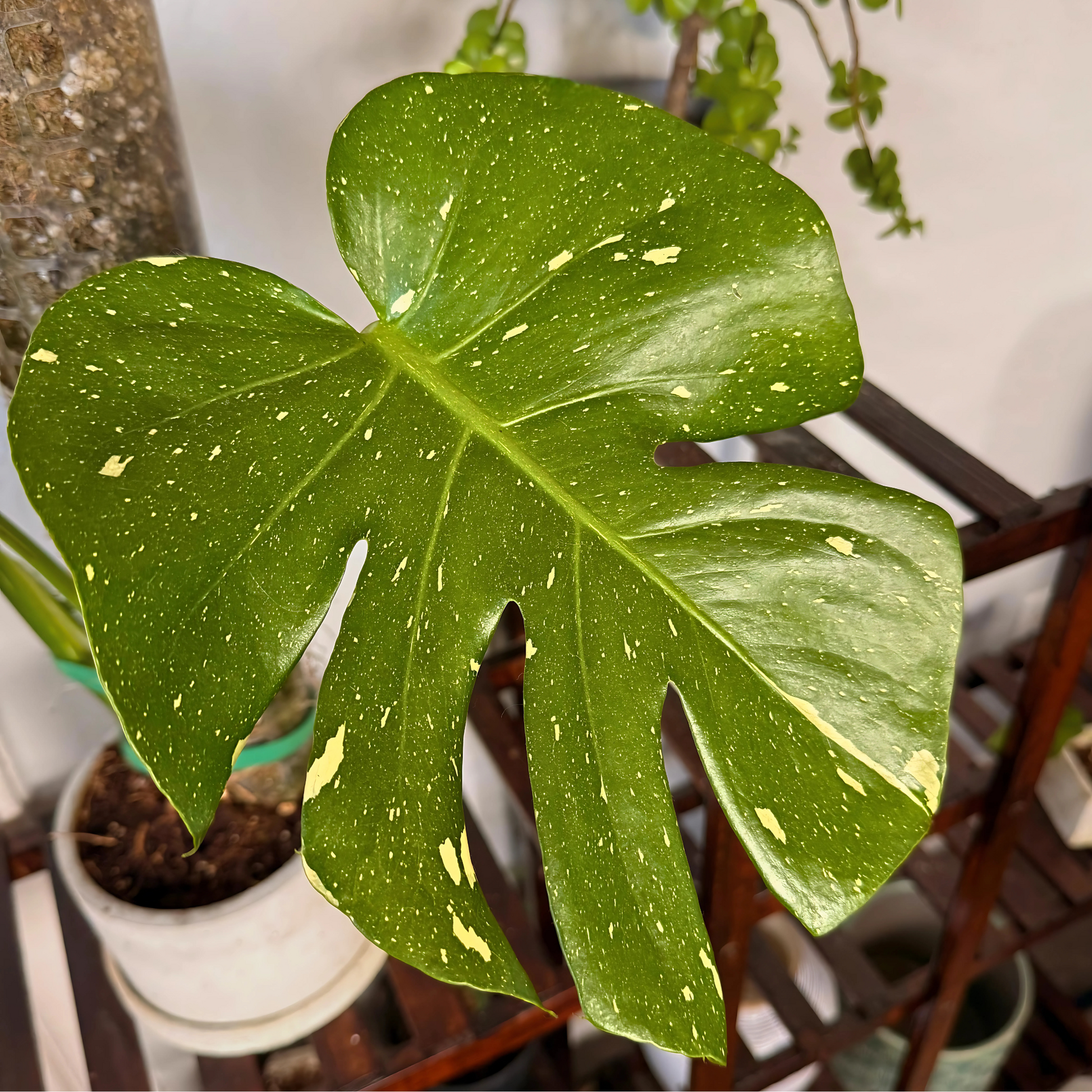 Monstera Thai Constellation – Rare Variegated Statement Plant in Charlie Pot with Grow Pole