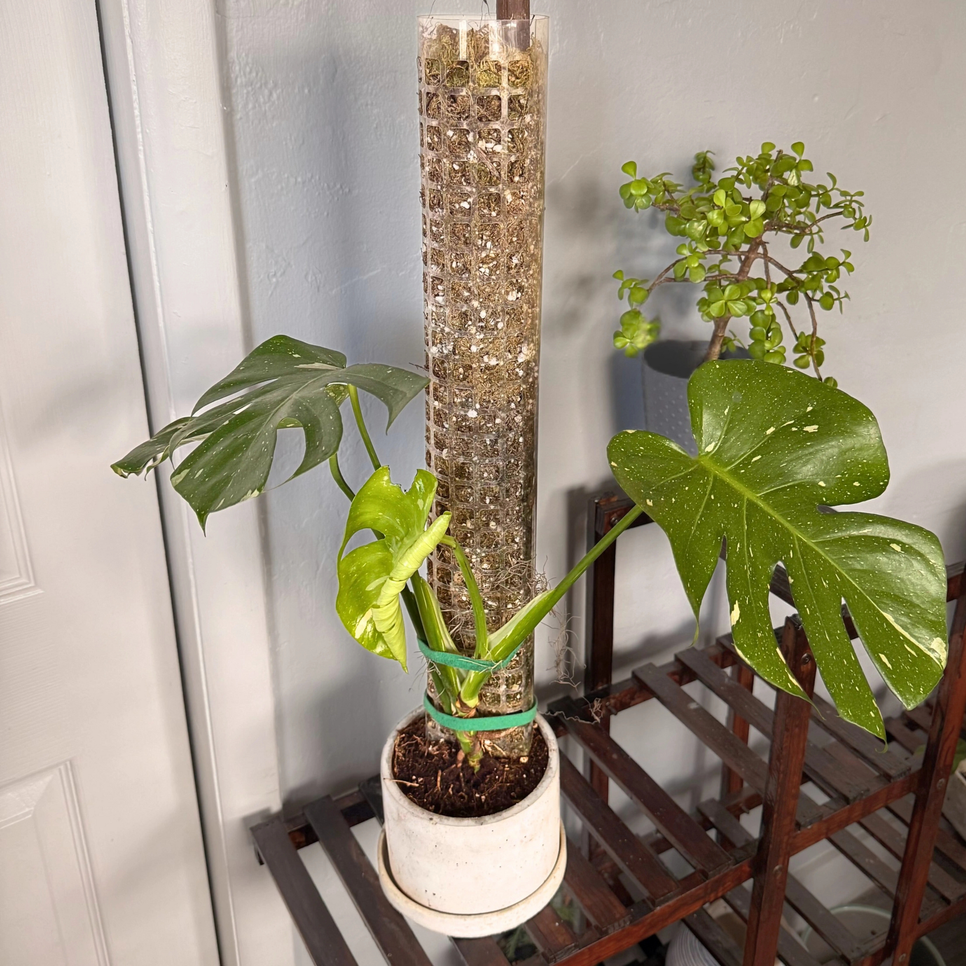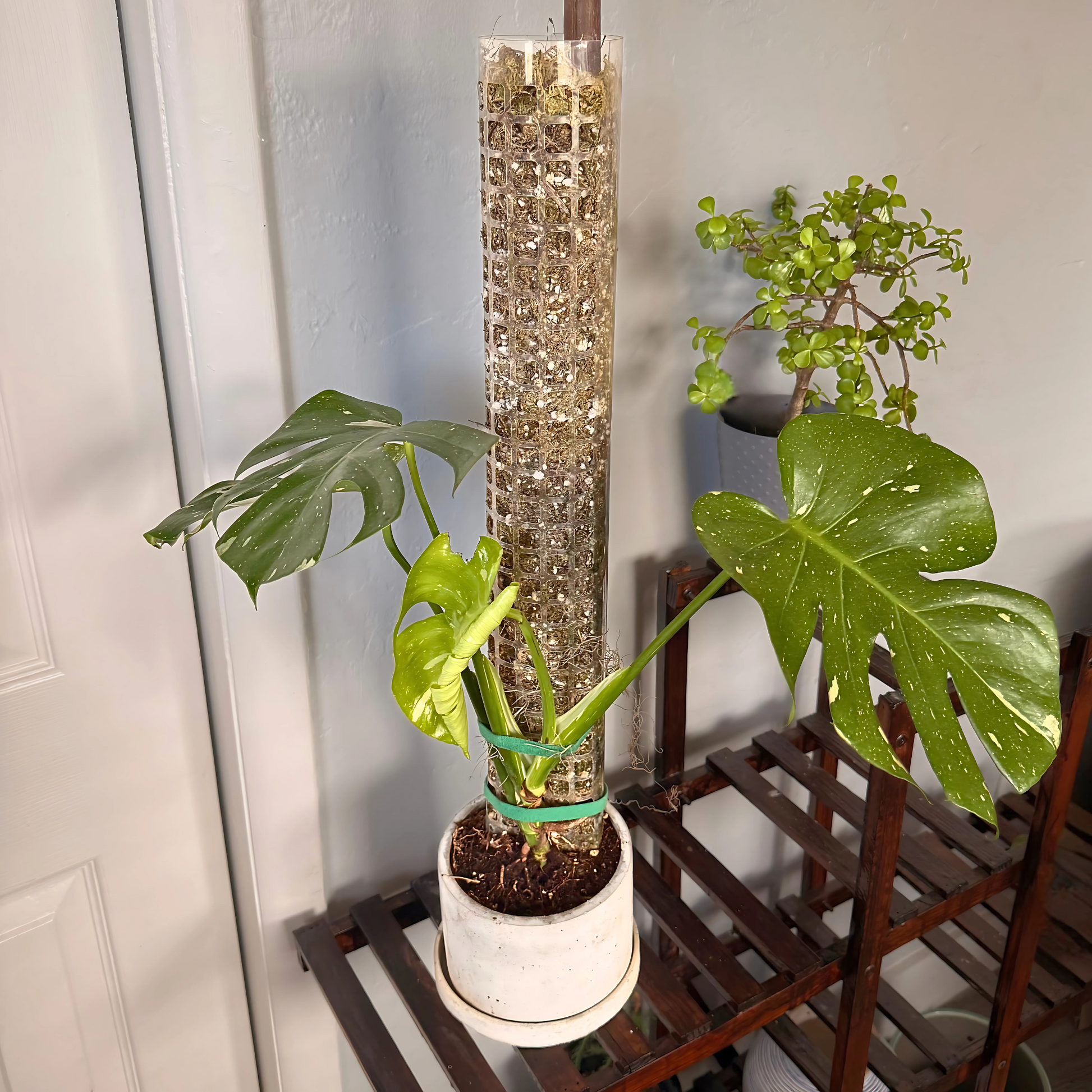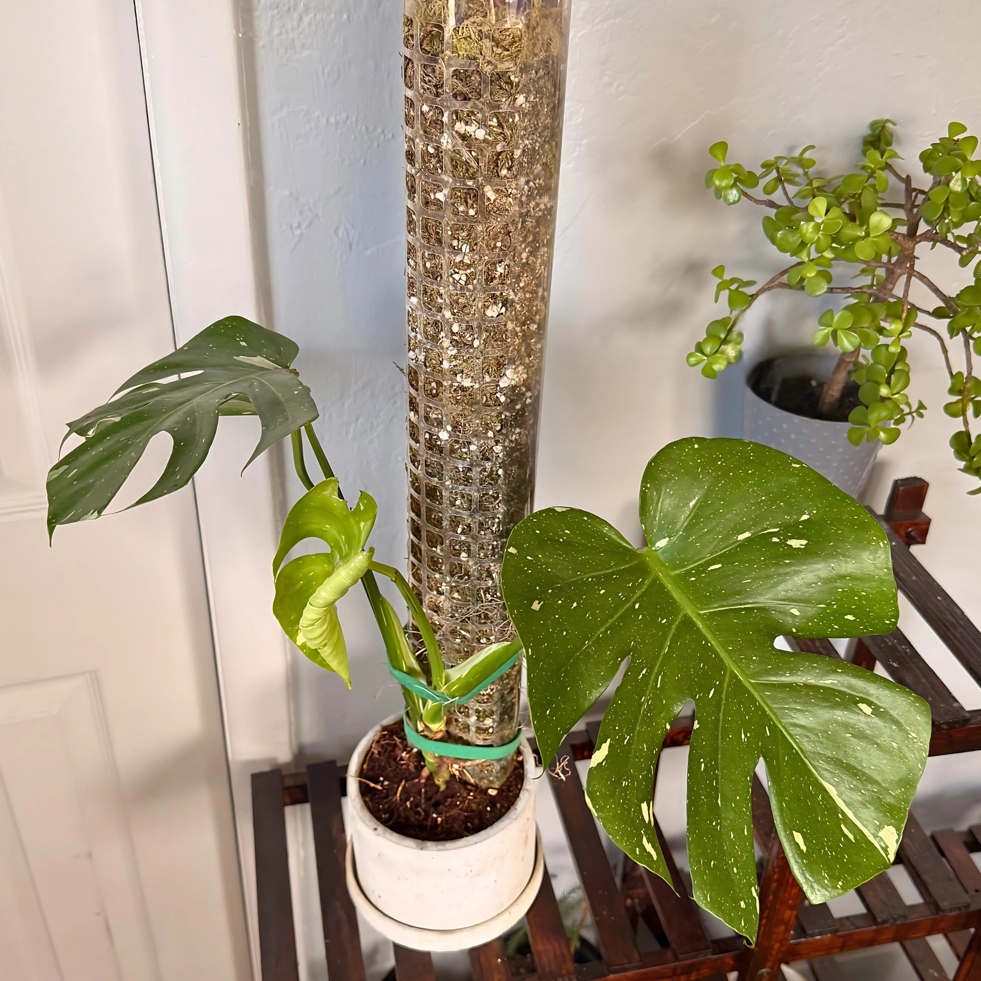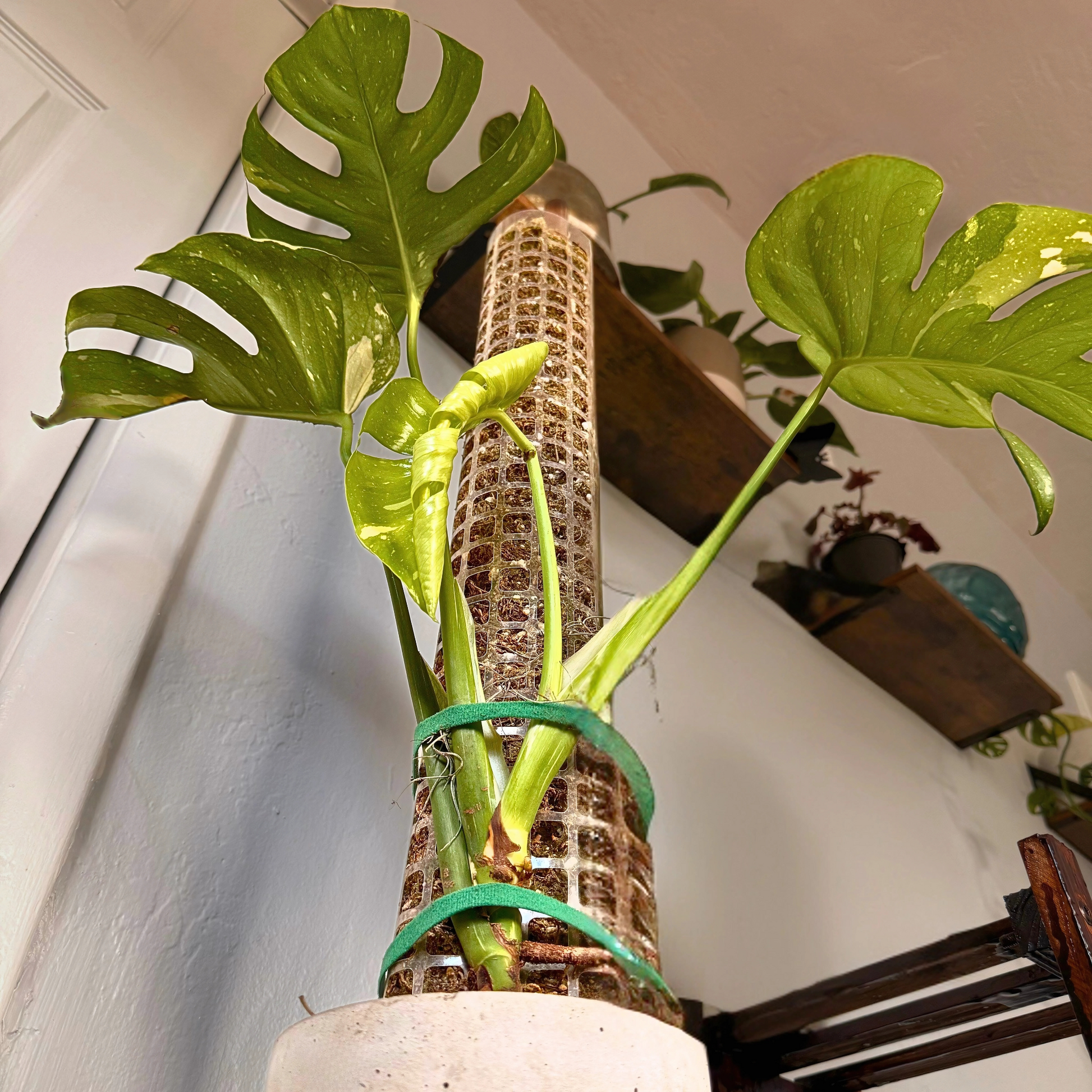 Monstera Thai Constellation – Rare Variegated Statement Plant in Charlie Pot with Grow Pole