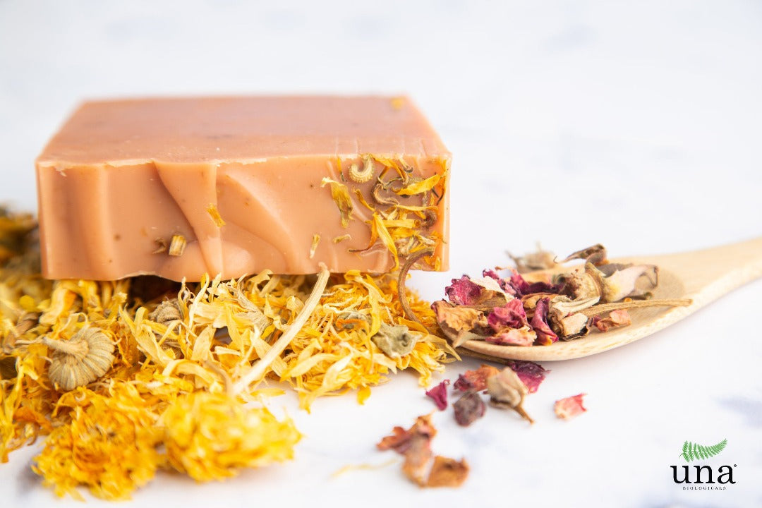 Traditionally made, our soaps provide a rich lather in a hydrating, cleansing bar. Made with organic coconut oil, shea butter and olive oil, Una Biologicals soaps help your skin maintain essential moisture, replenish fatty acids, and keep you soft & smooth.